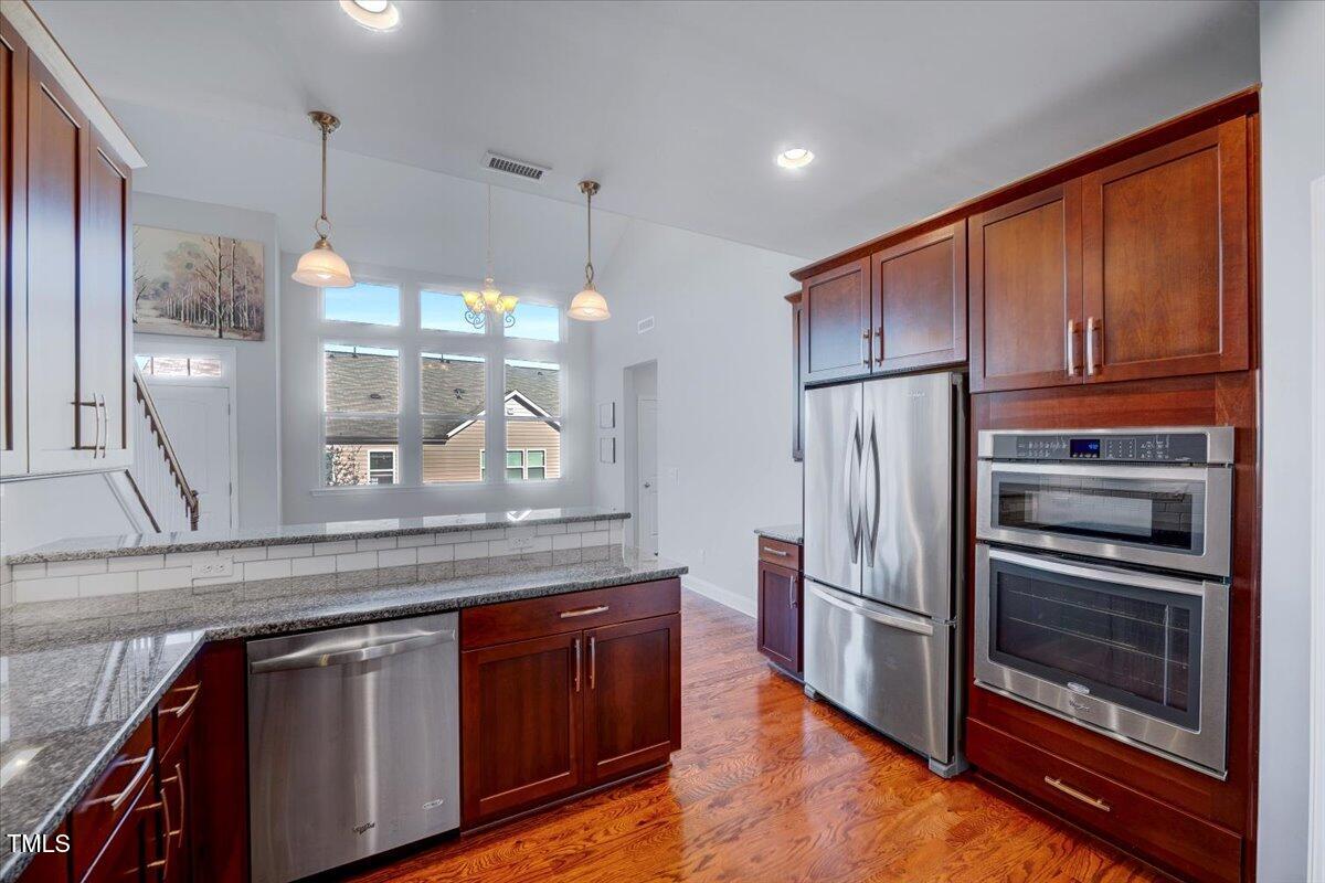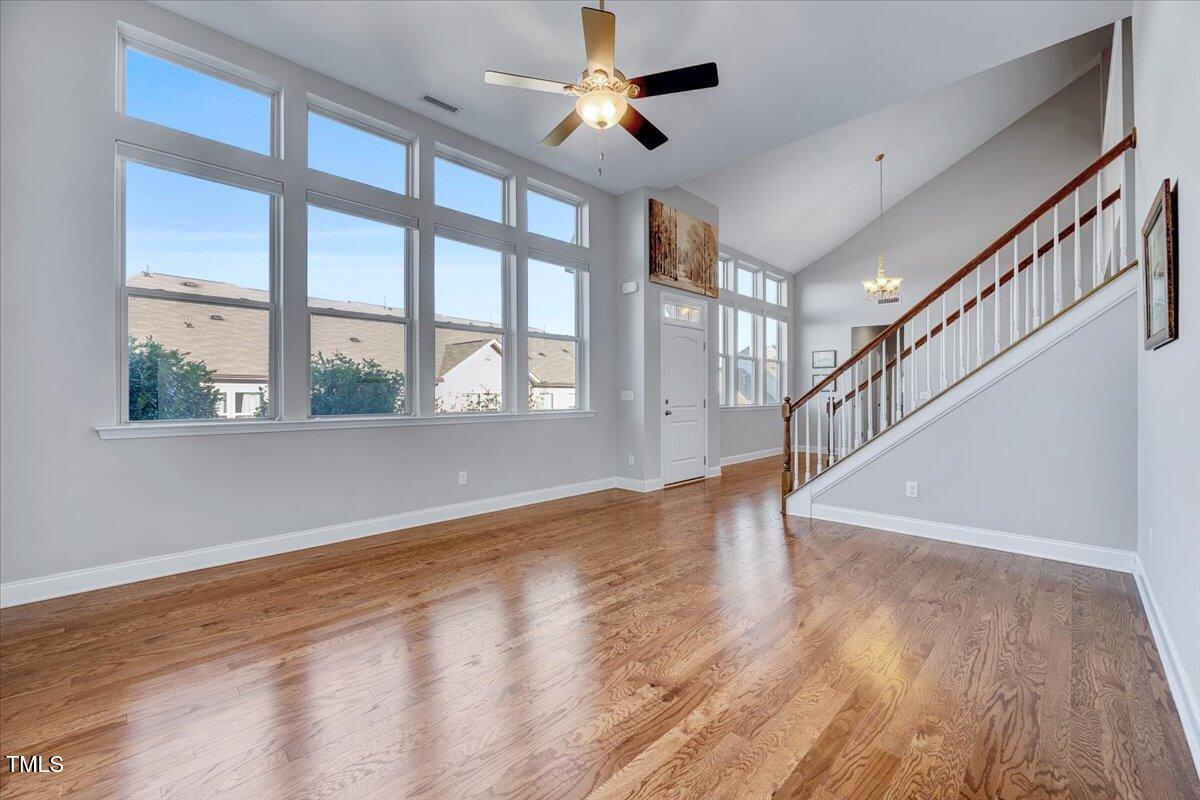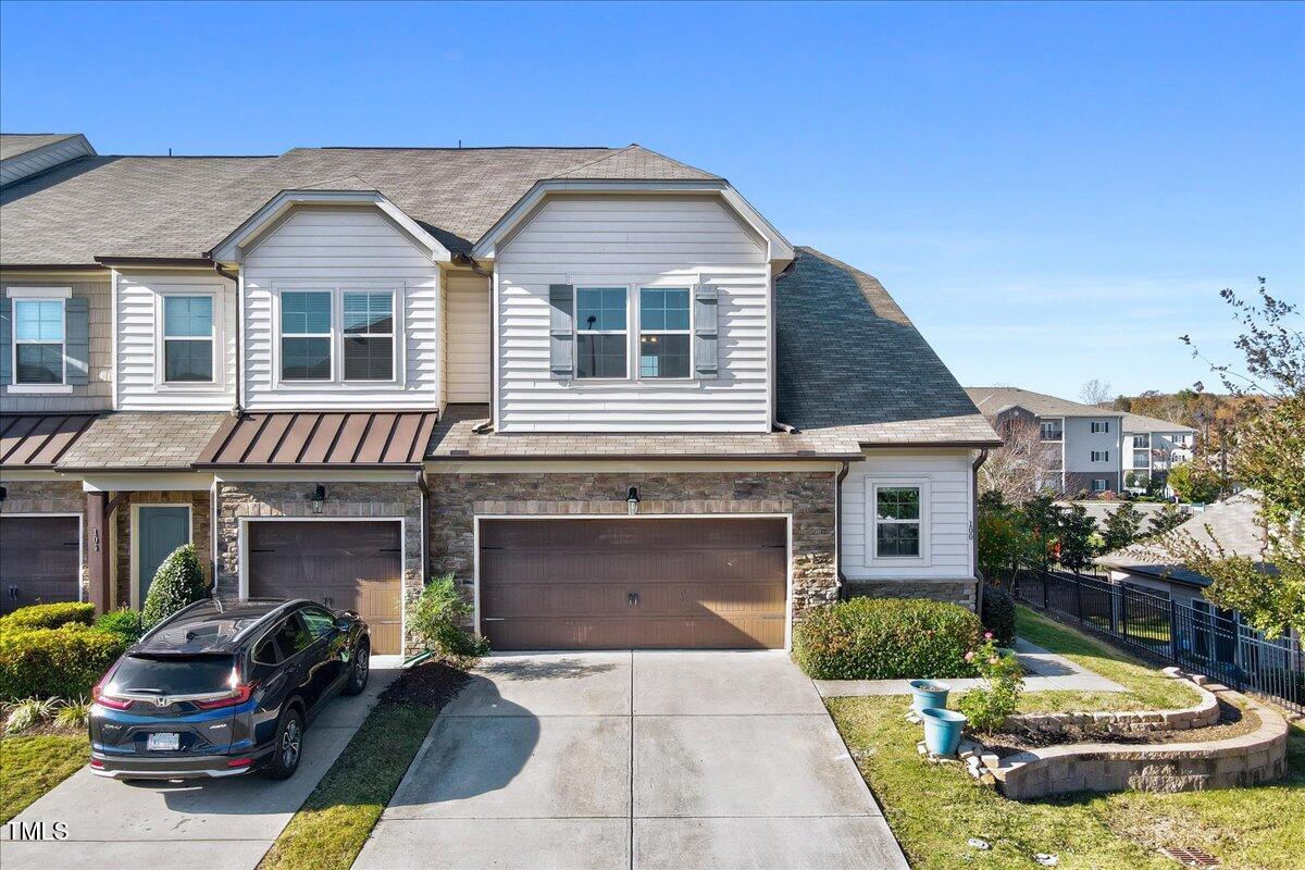 Discover the modern comfort and convenience of this stunning end-unit townhome in the coveted Waterstone Terraces community. The thoughtfully designed floor plan and private outdoor space provides an uplifting atmosphere year-round. Indulge in the ultimate convenience of a first-floor primary suite, featuring a spa-like bathroom with double vanities and walk-in shower, and a spacious walk-in closet. Upstairs boasts a versatile bonus loft and two additional ensuite bedrooms, perfect for guests, a home office, or a cozy retreat. The vaulted ceilings and expansive windows in the family and dining rooms create an airy, open atmosphere, flooded with natural light. The gourmet kitchen is a chef's dream, equipped with a gas range, stainless steel appliances, granite countertops, fully tiled backsplash, and walk-in pantry. You'll appreciate the efficiency of the upgraded first-floor laundry room, attached two-car garage, and CAT6 ethernet throughout. Venture outside and enjoy your morning coffee on the rear covered porch, or immerse yourself in the vibrant community that buzzes with social gatherings and offers an abundance of amenities including an outdoor swimming pool, clubhouse, soccer field, skate park, picnic pavilion, and trails.