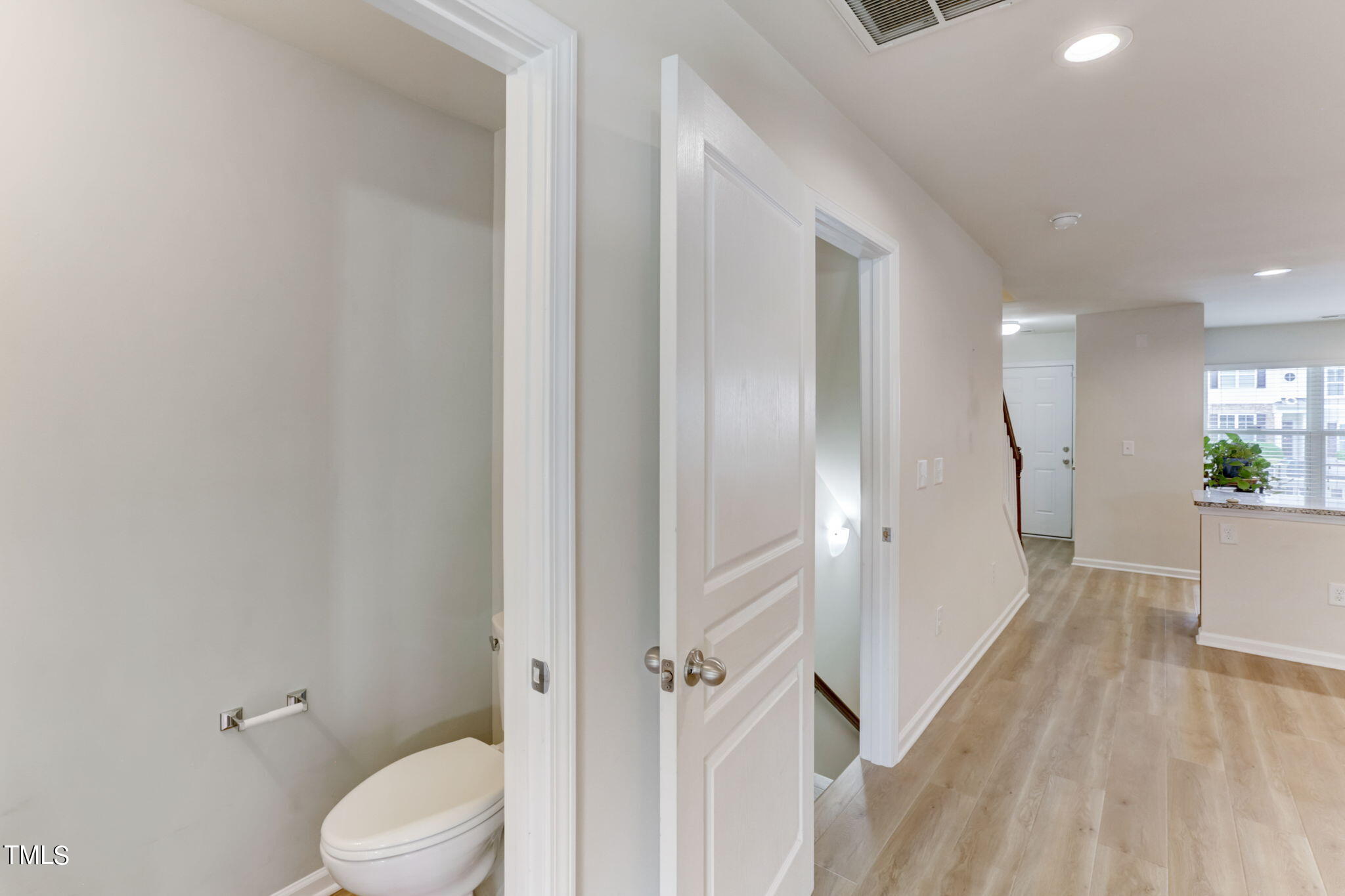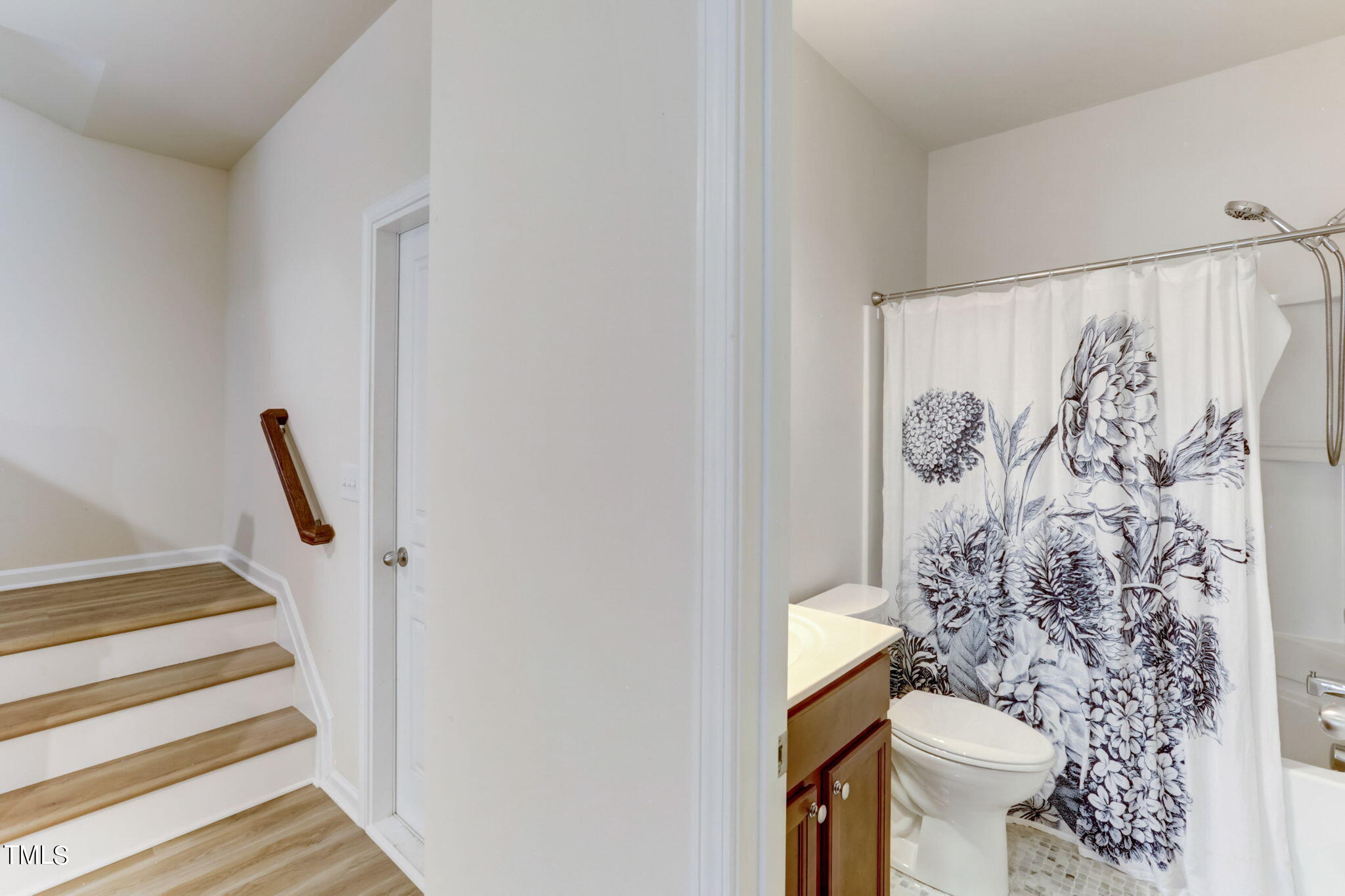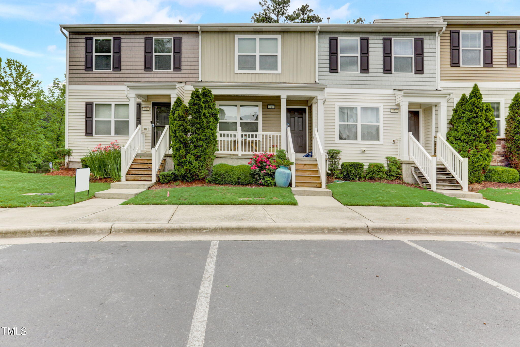 Nestled in the serene subdivision of Stratford Lakes, this townhome offers the perfect blend of comfort and convenience. Just 11 minutes away from Duke University, enjoy easy access to campus life while residing in a tranquil neighborhood. Step inside to discover the allure of hardwood floors that span each of the 3 floors. The main floor welcomes you with an inviting kitchen adorned with granite countertops, seamlessly flowing into the spacious living room and dining area. Relax in the beauty of nature from your private patio, overlooking a picturesque pond and walking trail. Upstairs, two spacious bedrooms await, each boasting its own ensuite bathroom for added convenience and privacy. Flooded with natural light, these bedrooms provide a serene retreat after a long day. But that's not all--this townhome also features a basement with a full bathroom, offering additional living space or a guest suite for visitors. With its desirable location, modern amenities, and picturesque surroundings, this townhome in Stratford Lakes is the epitome of comfortable living.