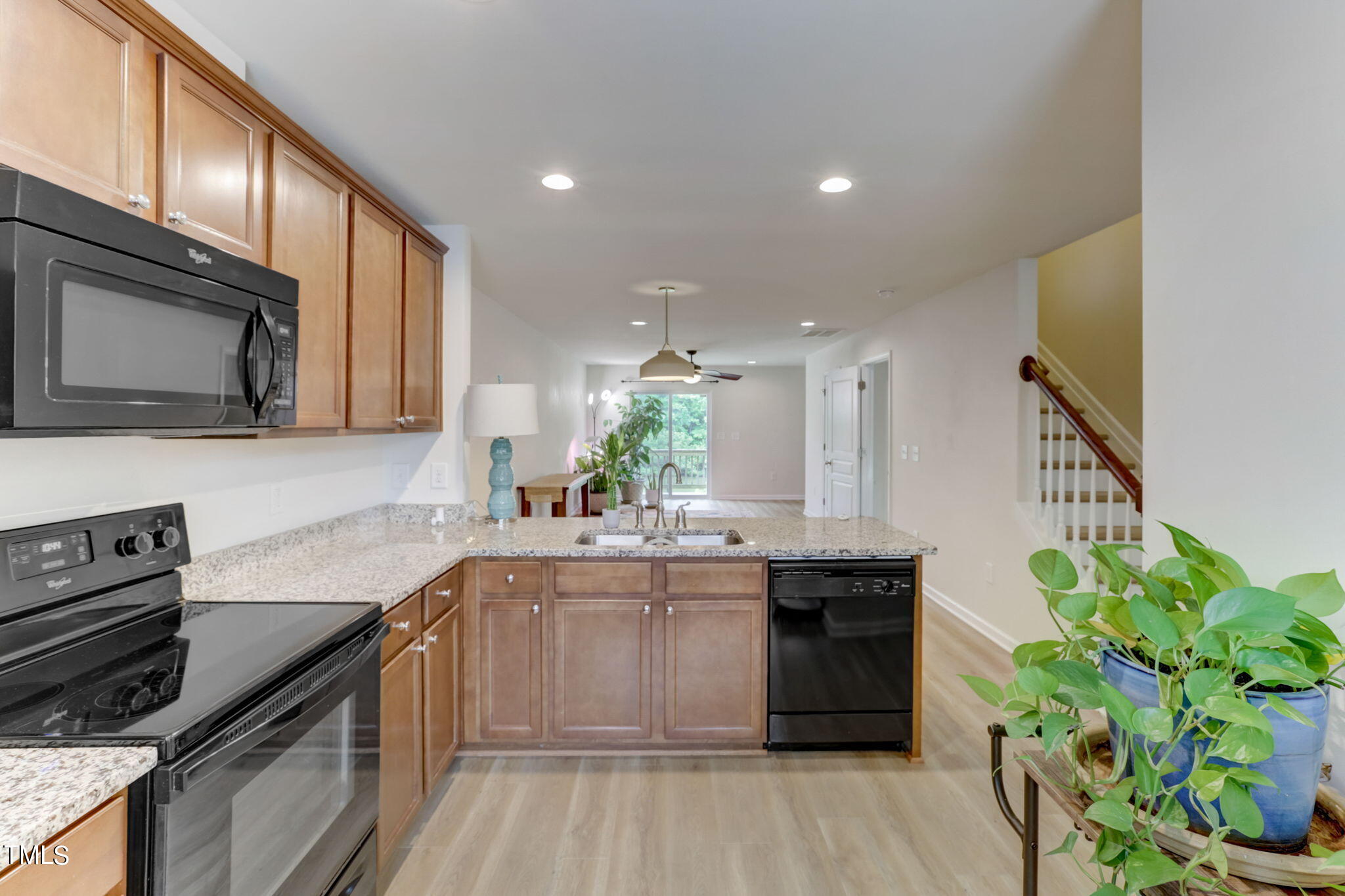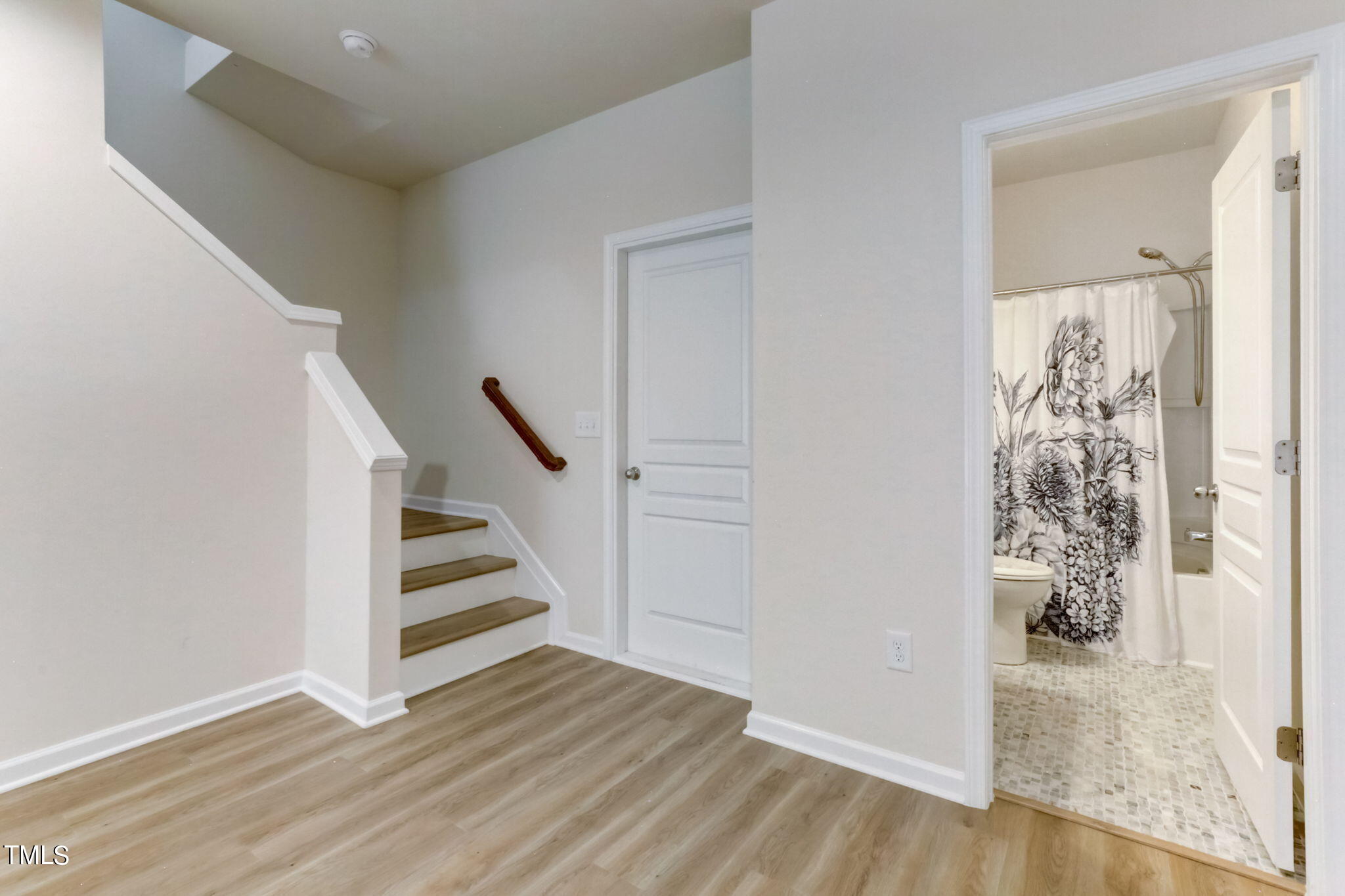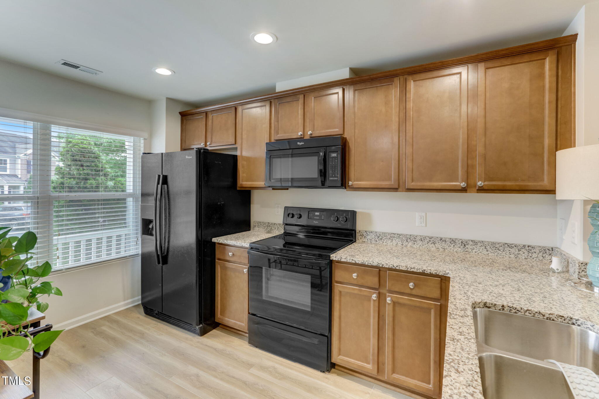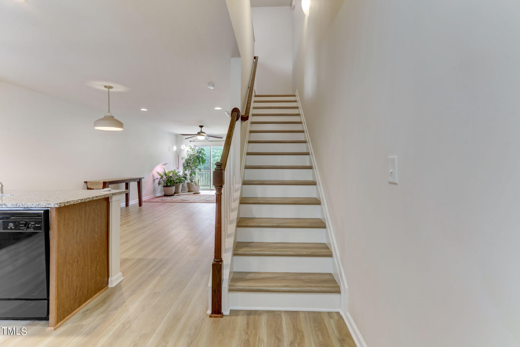 Nestled in the serene subdivision of Stratford Lakes, this townhome offers the perfect blend of comfort and convenience. Just 11 minutes away from Duke University, enjoy easy access to campus life while residing in a tranquil neighborhood. Step inside to discover the allure of hardwood floors that span each of the 3 floors. The main floor welcomes you with an inviting kitchen adorned with granite countertops, seamlessly flowing into the spacious living room and dining area. Relax in the beauty of nature from your private patio, overlooking a picturesque pond and walking trail. Upstairs, two spacious bedrooms await, each boasting its own ensuite bathroom for added convenience and privacy. Flooded with natural light, these bedrooms provide a serene retreat after a long day. But that's not all--this townhome also features a basement with a full bathroom, offering additional living space or a guest suite for visitors. With its desirable location, modern amenities, and picturesque surroundings, this townhome in Stratford Lakes is the epitome of comfortable living.