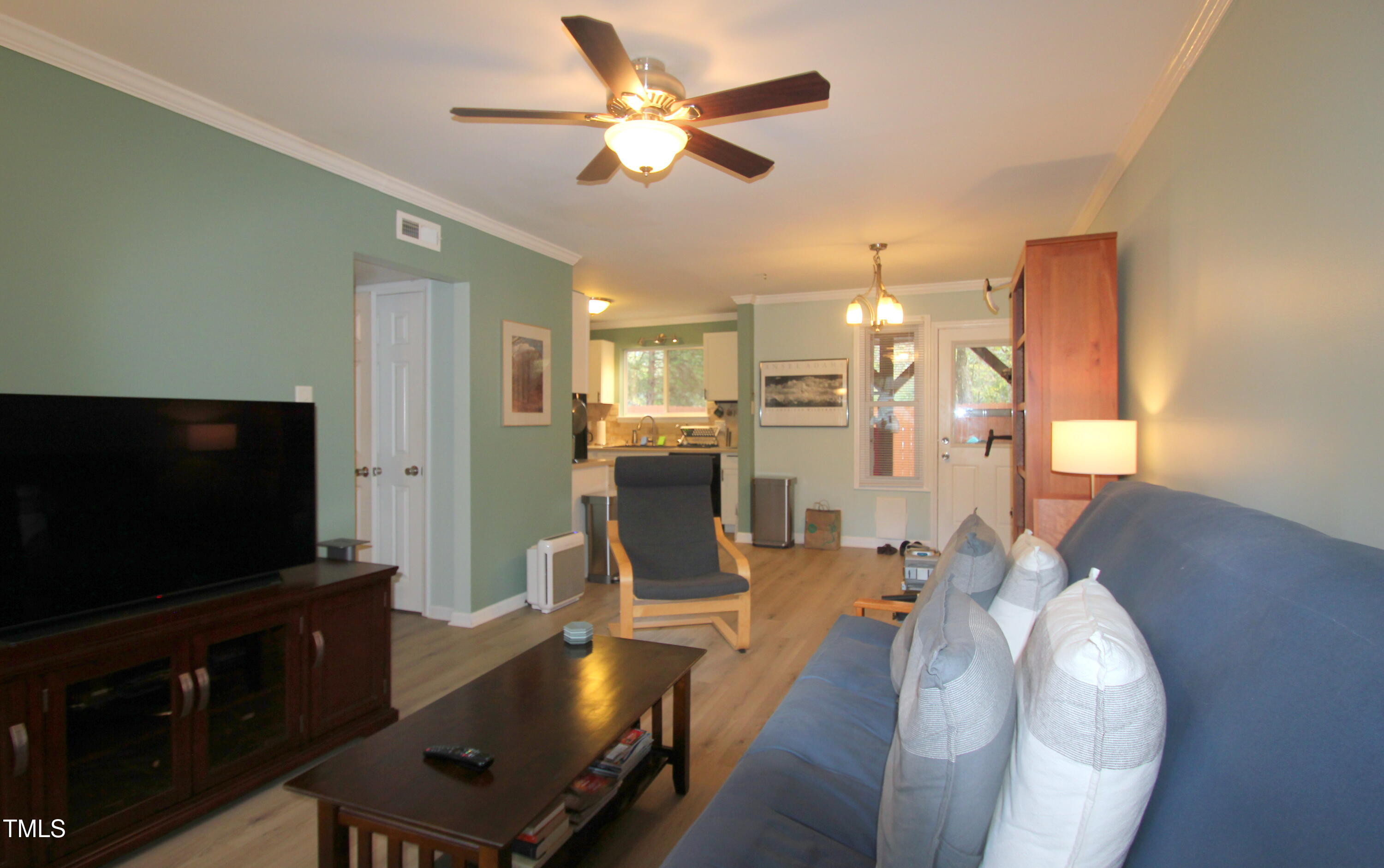 Light filled condo in sought after location of Carrboro. Bike/walk to Weaver Street and all that Carrboro has to offer! This cute property has 2 bedrooms and one full bath. Second bedroom provides options, use as office, yoga room, etc. Renovated kitchen and bathroom. New flooring. Roof replaced in 2023. Great deck and yard space in back. Perfect for firepit and a few chairs to relax at the end of the day. Fridge, washer, dryer convey.