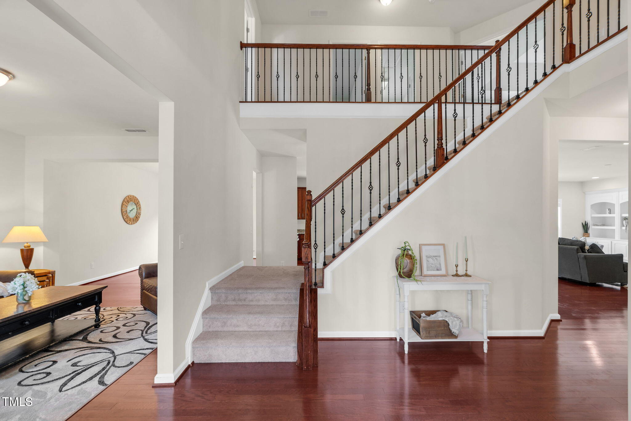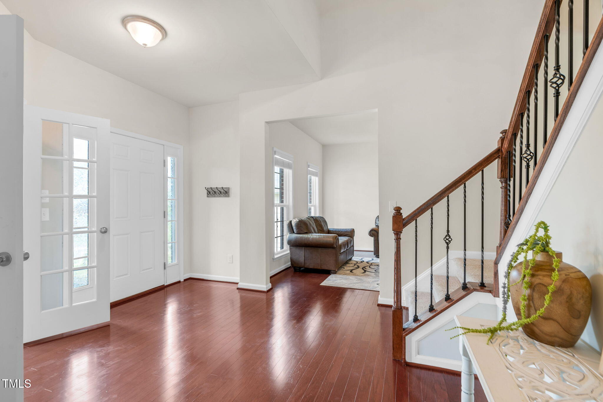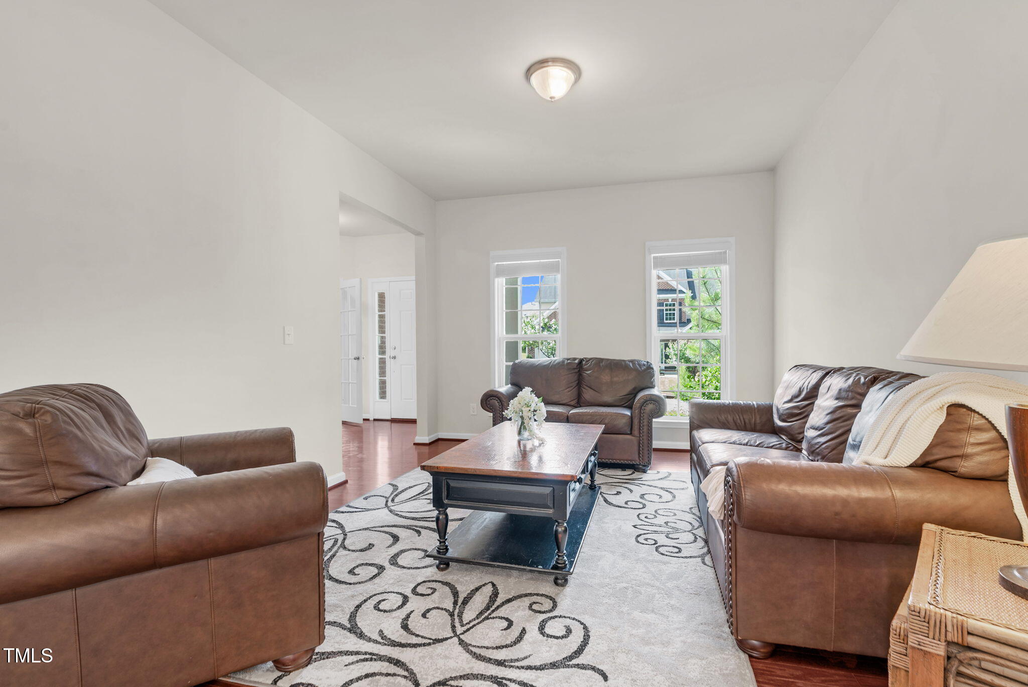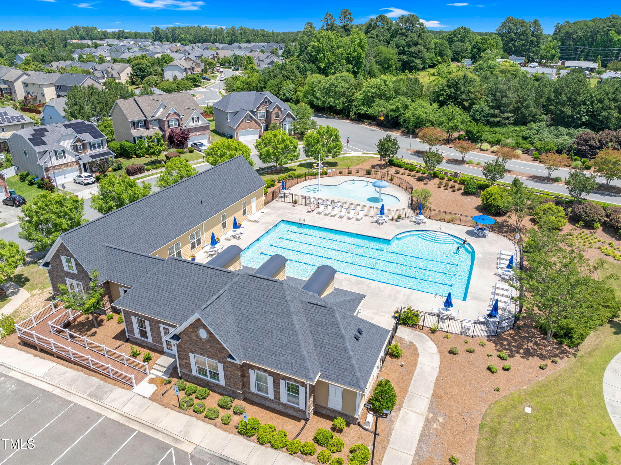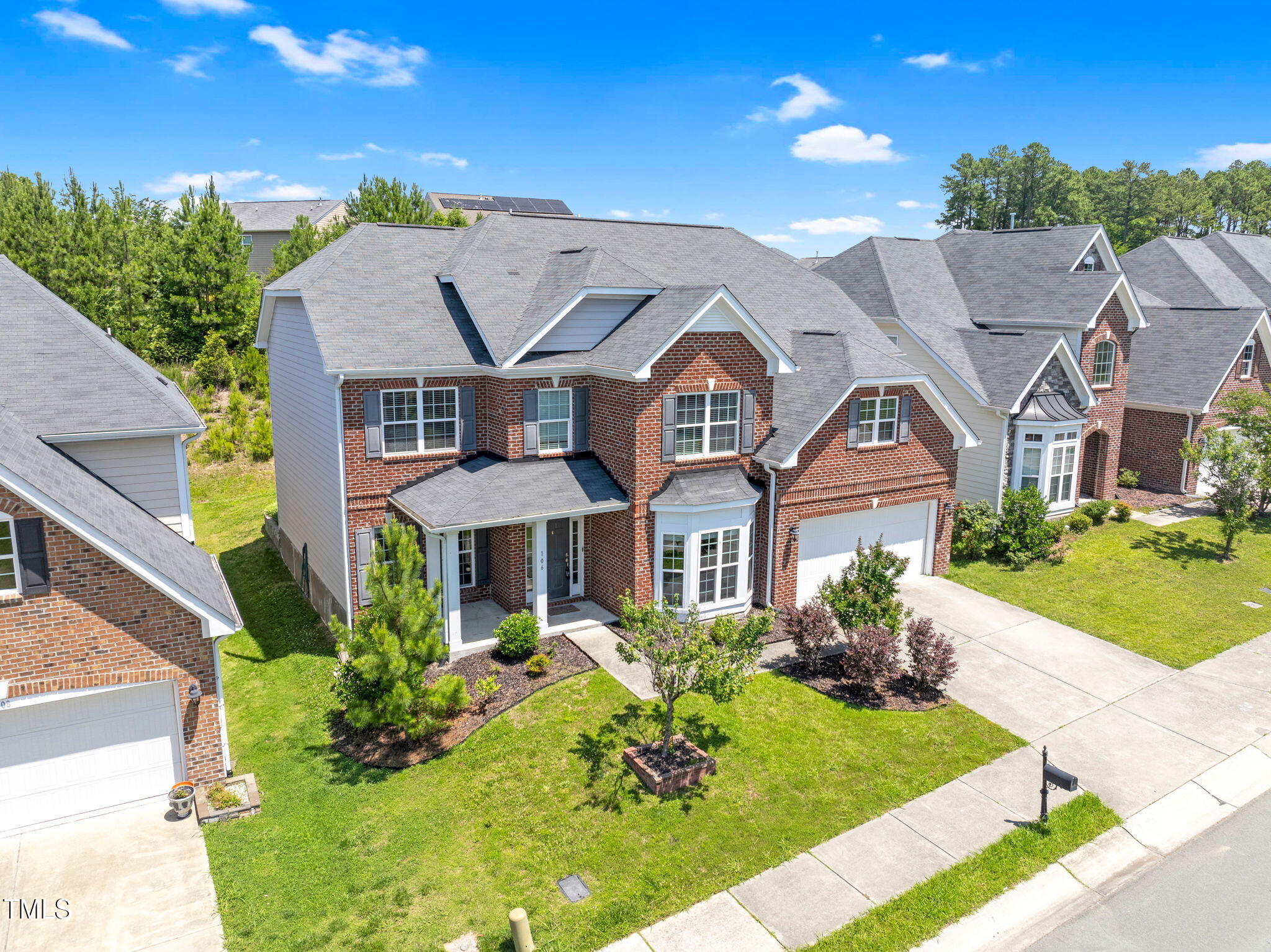 Welcome to this stunning 4-bedroom, 3.5-bath home in the sought-after Ashton Hall community, where comfort meets elegance and space abounds. With over 3,300 square feet of thoughtfully designed living space, this home offers the perfect blend of function and style for modern living. The first floor features a private office, ideal for remote work or study, along with formal living and dining rooms perfect for entertaining or holiday gatherings. The open-concept kitchen flows effortlessly into a cozy family room, and just beyond, step out onto a stamped concrete patio that's ready for backyard BBQs and quiet evenings under the stars. Upstairs, retreat to the luxurious primary suite, complete with a massive walk-in closet and spa-like en-suite bath. A guest suite with its own private bath offers comfort and privacy for visitors, while two additional bedrooms share a well-appointed full bath. Located in the vibrant Ashton Hall neighborhood, residents enjoy access to top-tier amenities including a community pool, tennis courts, playground, and an active social calendar that makes it easy to connect with neighbors. And with quick access to I-40, I-540, and Highway 70, you're just minutes from shopping, dining, RTP, and downtown Raleigh making this home as convenient as it is beautiful. Schedule your showing today!