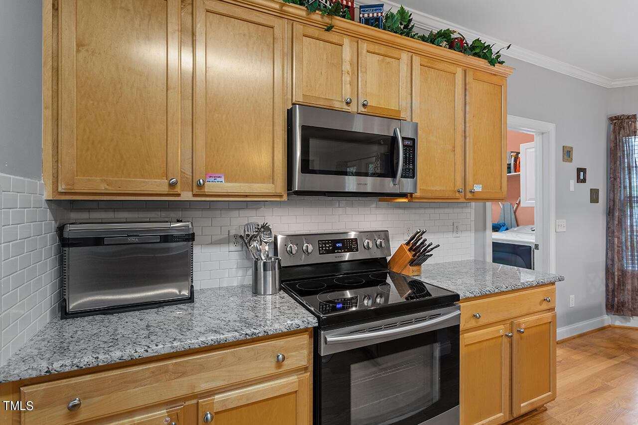 Appliances: Disposal, Electric Range, Gas Water Heater, Microwave, Stainless Steel Appliance(s)