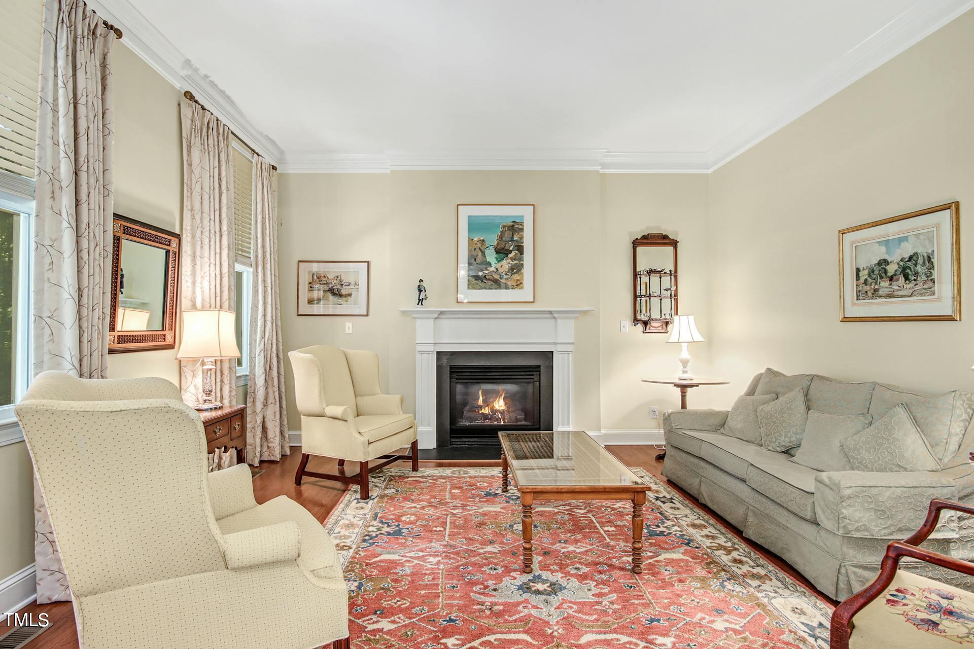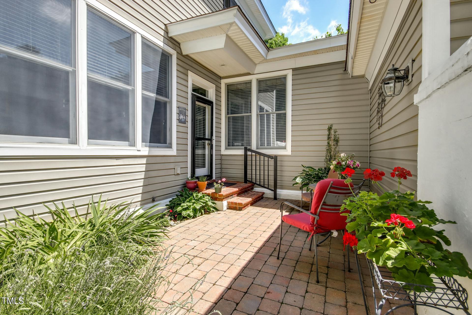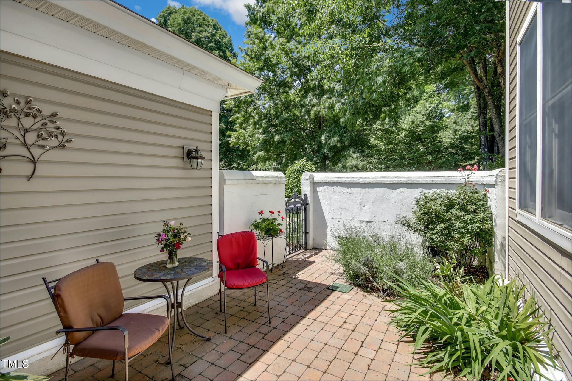 Originally the model home for this section of the village. Discover a delightful living experience in this MOVE-IN READY townhome that offers the comfort and space of a single-family house. Nestled on a picturesque corner lot, this home boasts the added charm of a GORGEOUS fully landscaped berm, providing a serene buffer from the road. The detail and moldings in the foyer provides for the classiest entry. The expansive Living Room with its cozy gas fireplace flows seamlessly into a separate Dining Room, perfect for entertaining. A warm and inviting Family Room, also featuring a gas fireplace, opens to a modern kitchen, creating a perfect hub for daily living. Step outside to a private brick patio that exudes charm and tranquility. The second floor features climate-controlled storage, a separate office, two spacious bedrooms, and a versatile Bonus Room. Located in the vibrant community of Fearrington Village, residents enjoy access to amenities including restaurants, a pool, tennis courts, and a Farmers Market.