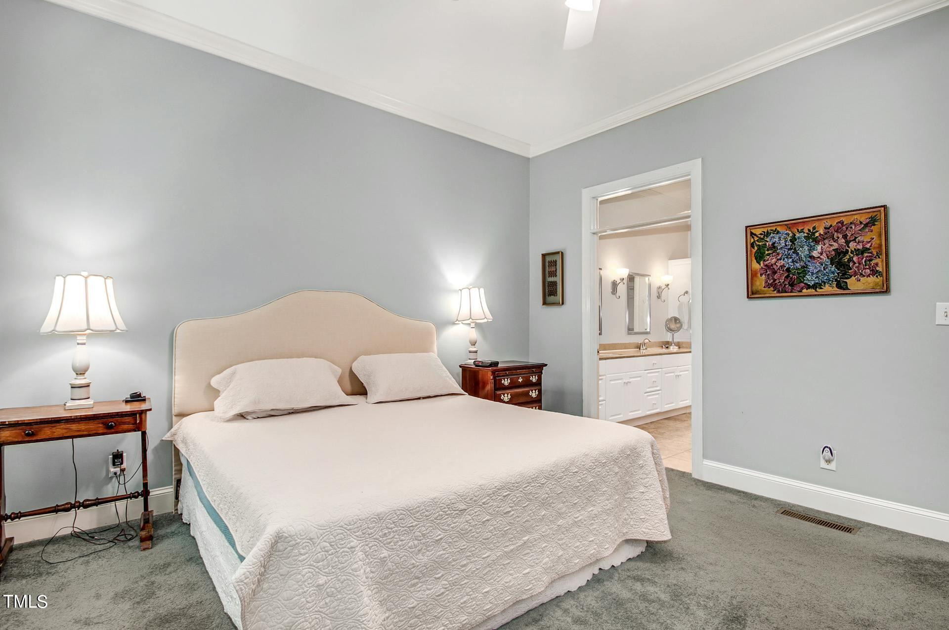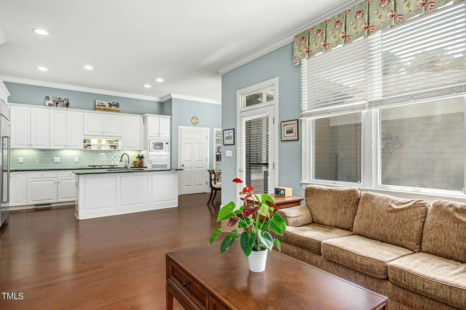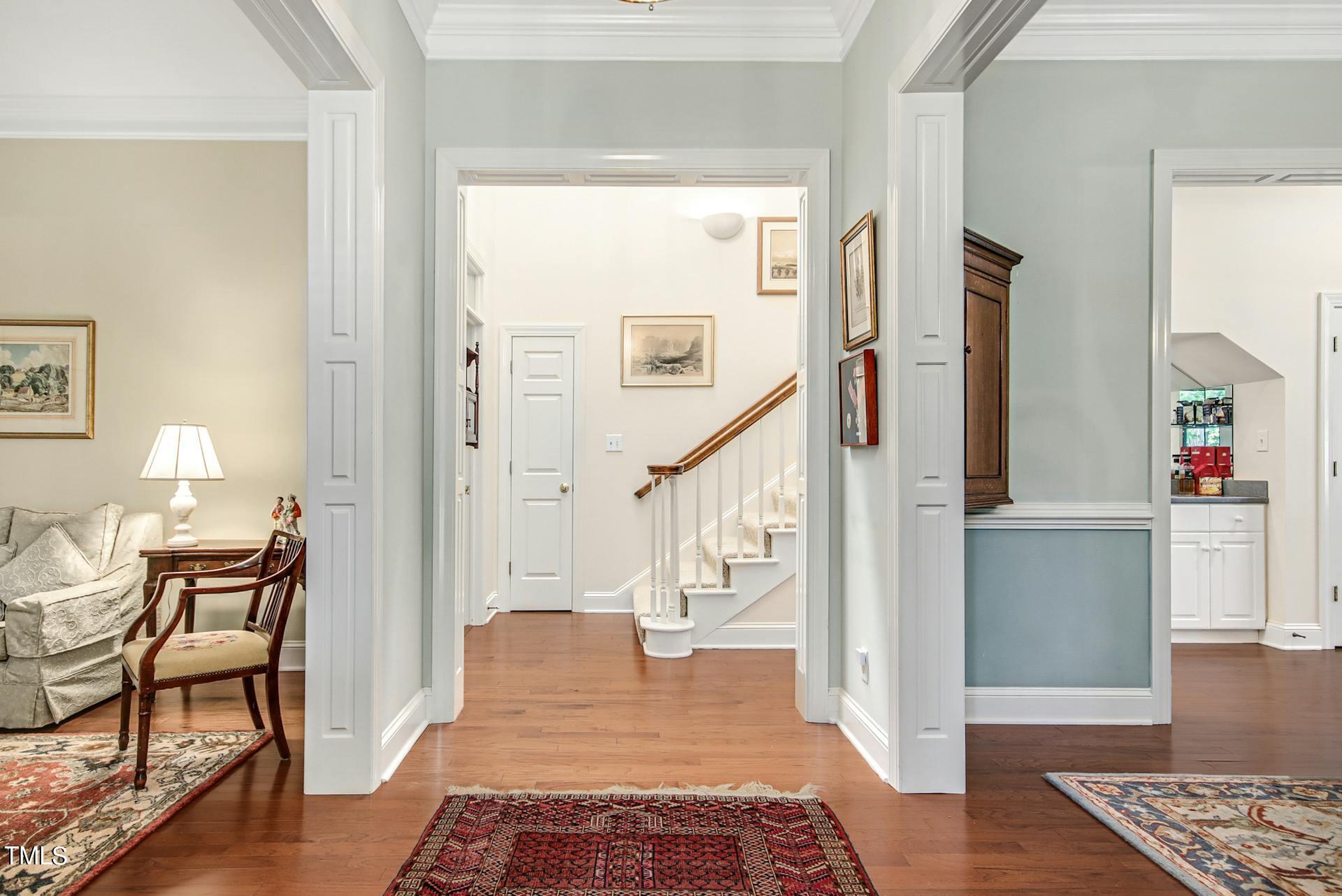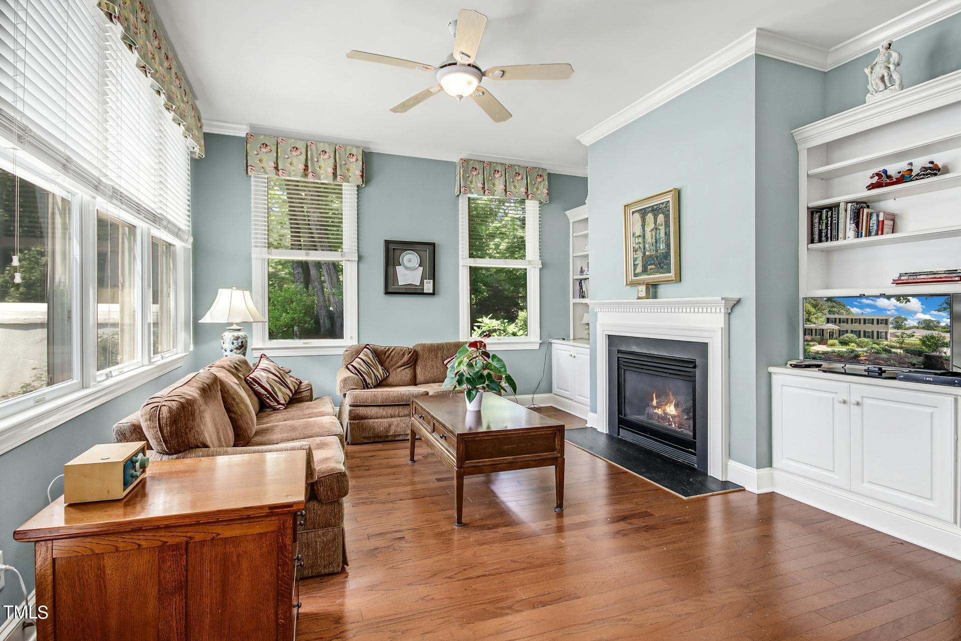 Originally the model home for this section of the village. Discover a delightful living experience in this MOVE-IN READY townhome that offers the comfort and space of a single-family house. Nestled on a picturesque corner lot, this home boasts the added charm of a GORGEOUS fully landscaped berm, providing a serene buffer from the road. The detail and moldings in the foyer provides for the classiest entry. The expansive Living Room with its cozy gas fireplace flows seamlessly into a separate Dining Room, perfect for entertaining. A warm and inviting Family Room, also featuring a gas fireplace, opens to a modern kitchen, creating a perfect hub for daily living. Step outside to a private brick patio that exudes charm and tranquility. The second floor features climate-controlled storage, a separate office, two spacious bedrooms, and a versatile Bonus Room. Located in the vibrant community of Fearrington Village, residents enjoy access to amenities including restaurants, a pool, tennis courts, and a Farmers Market.