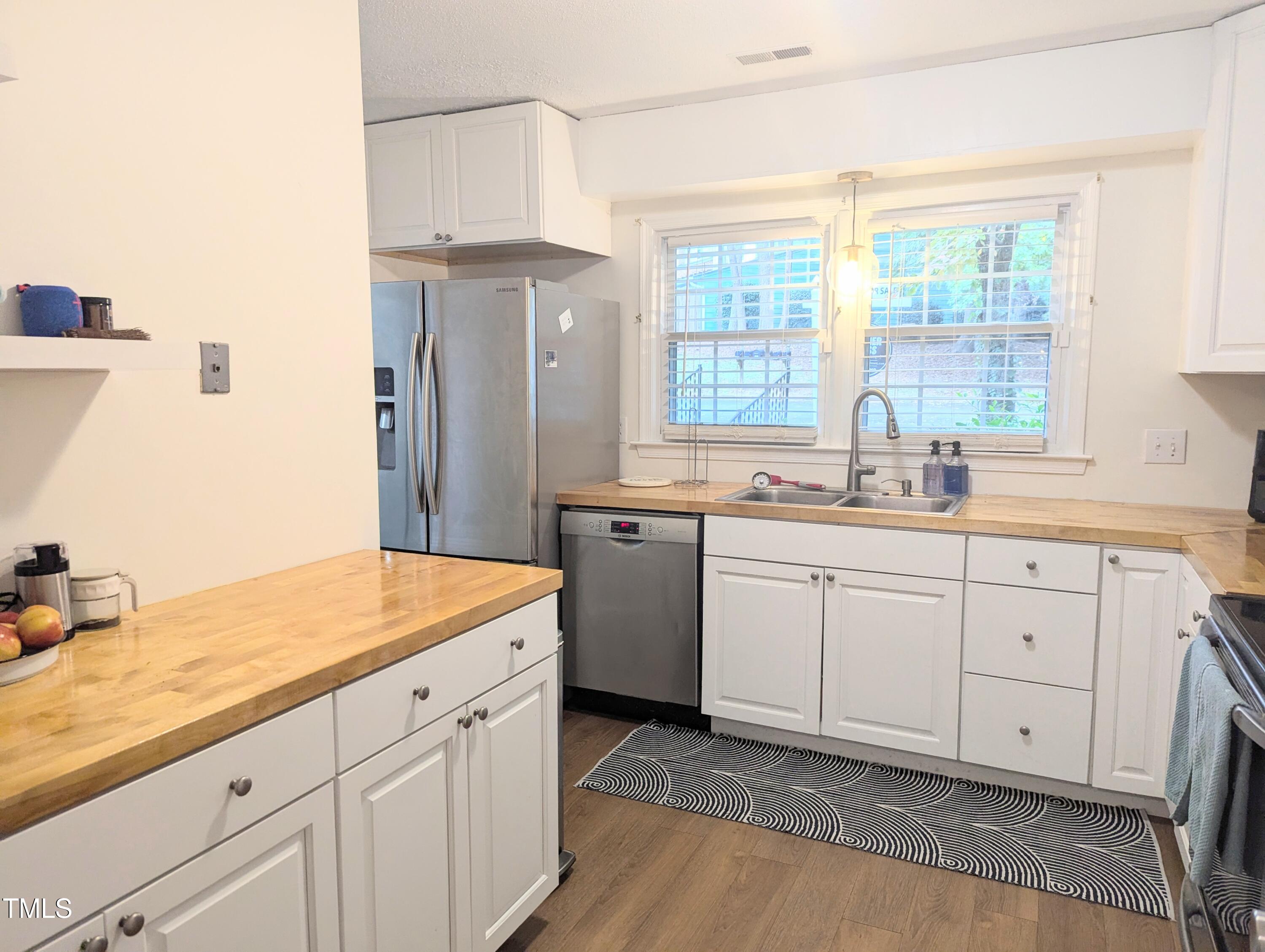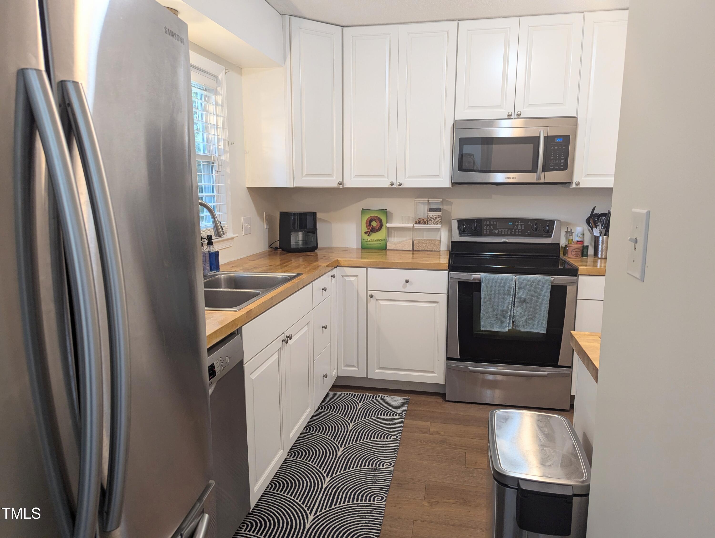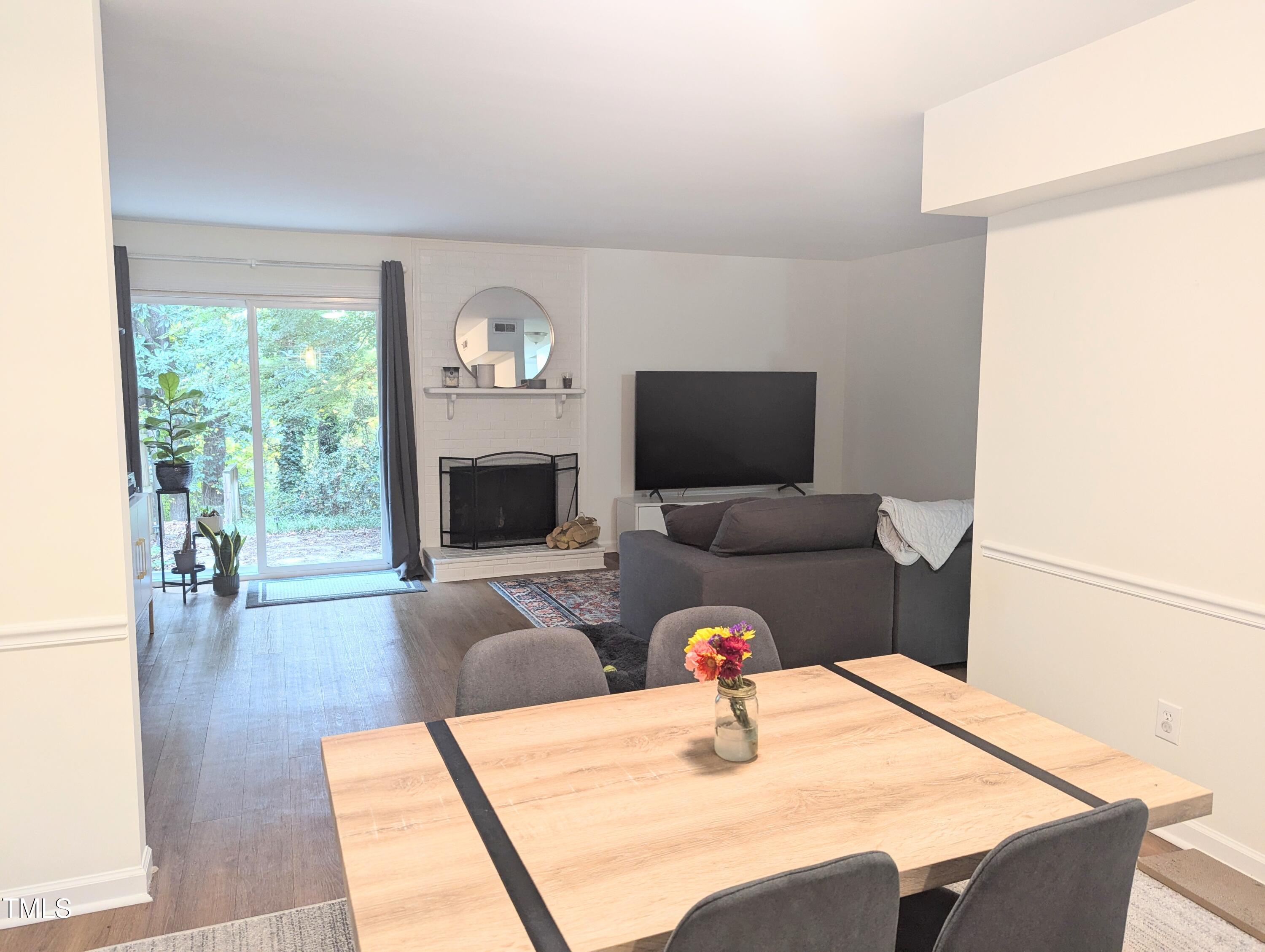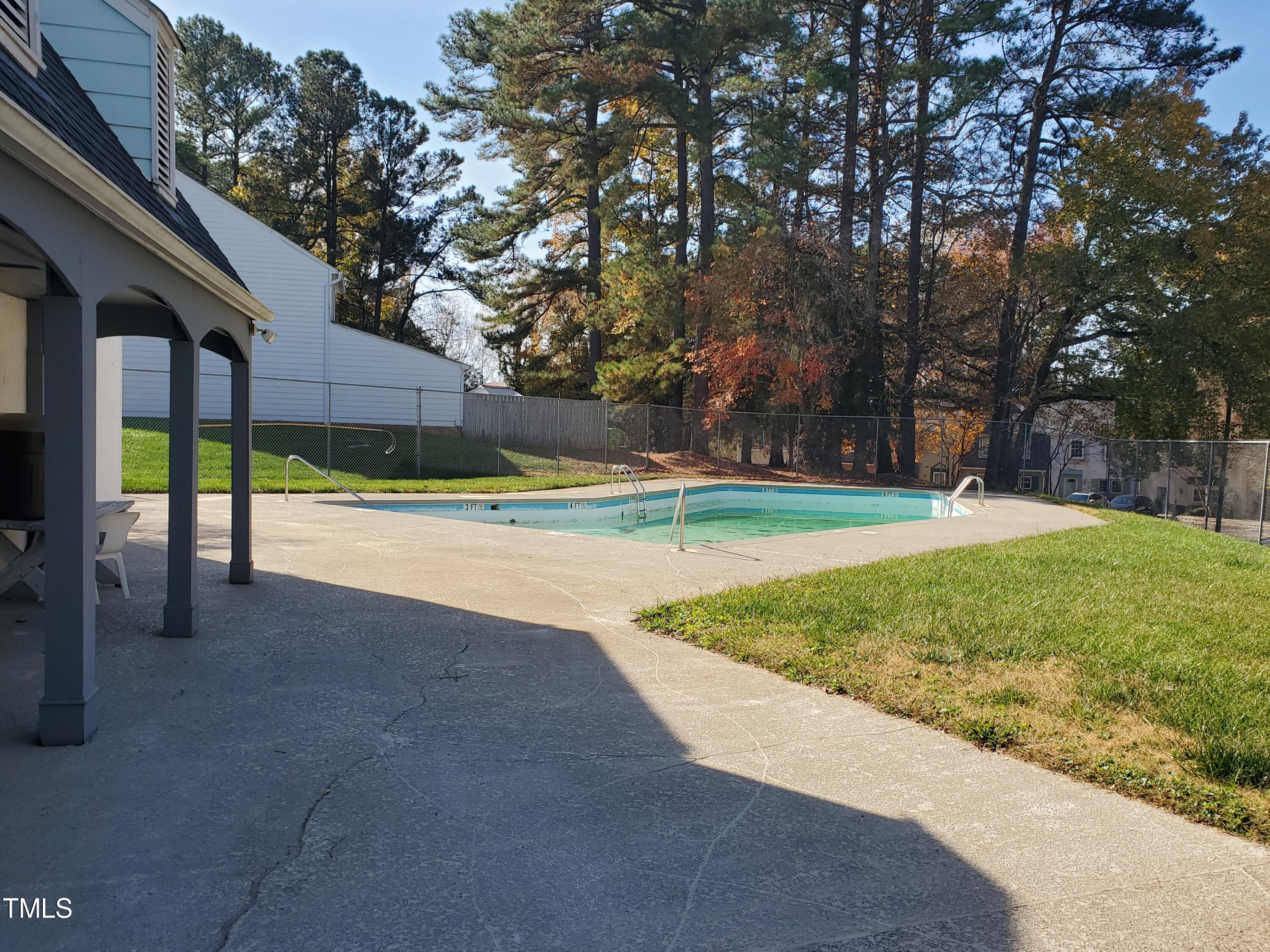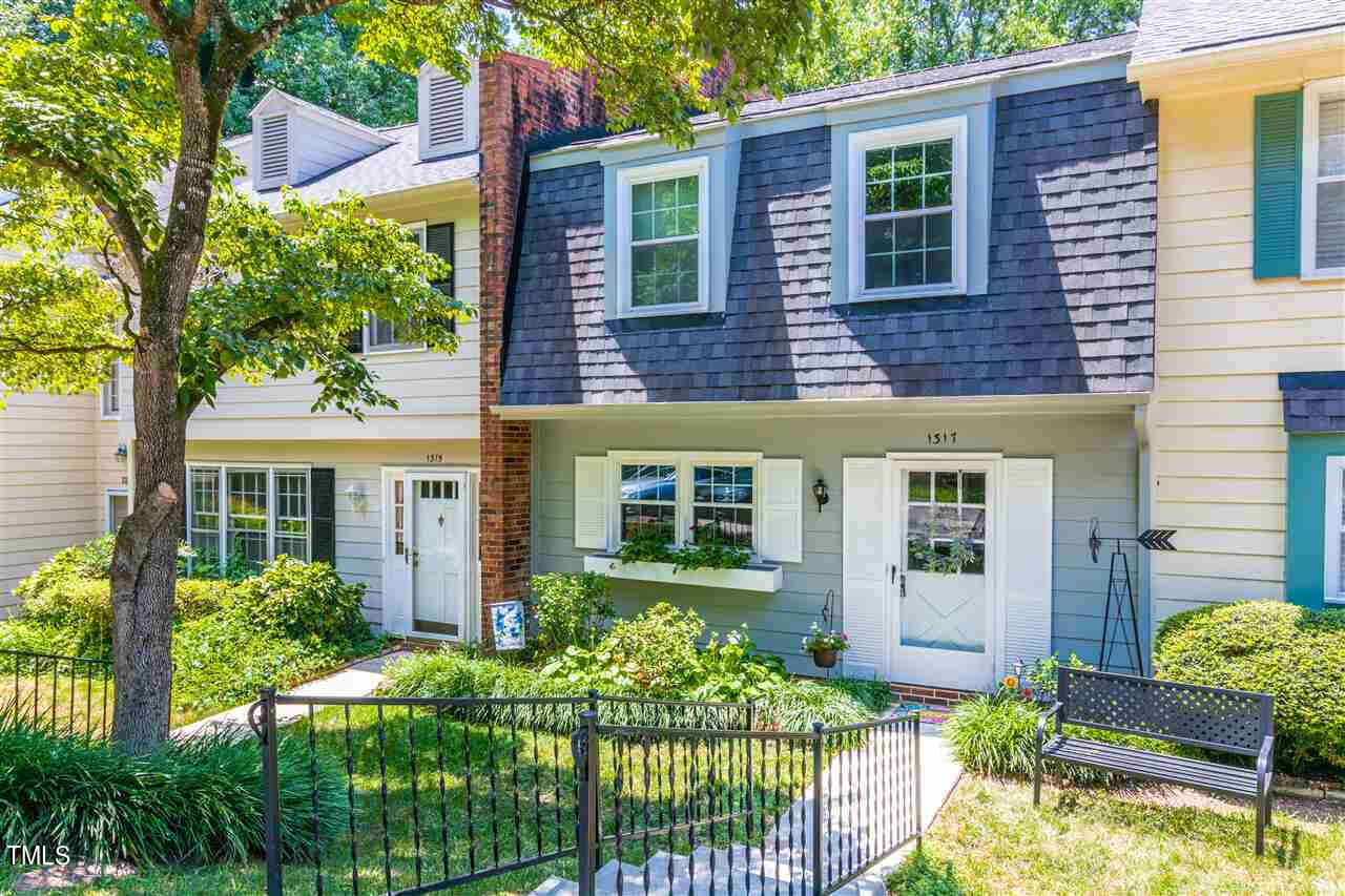 LOCATION LOCATION LOCATION ~ Convenient to Midtown Raleigh & walking distance to Shelley Lake! 3 bedrooms and 2.5 baths. Laminate wood flooring in kitchen & hallway. Large Dining/Living Room area includes white brick wood burning fireplace. French doors lead to the perfect private patio/deck area. Master suite & guest rooms all on 2nd floor w/ window seats. Large closets in rooms. Community Pool & Tennis Courts!