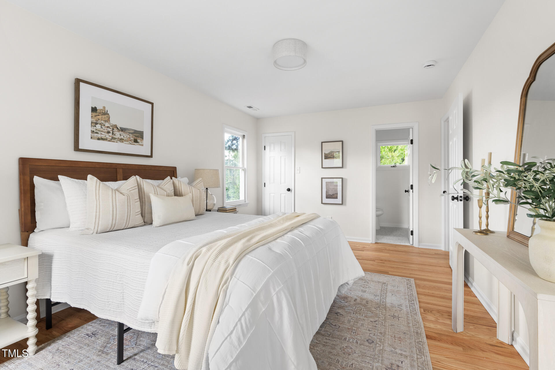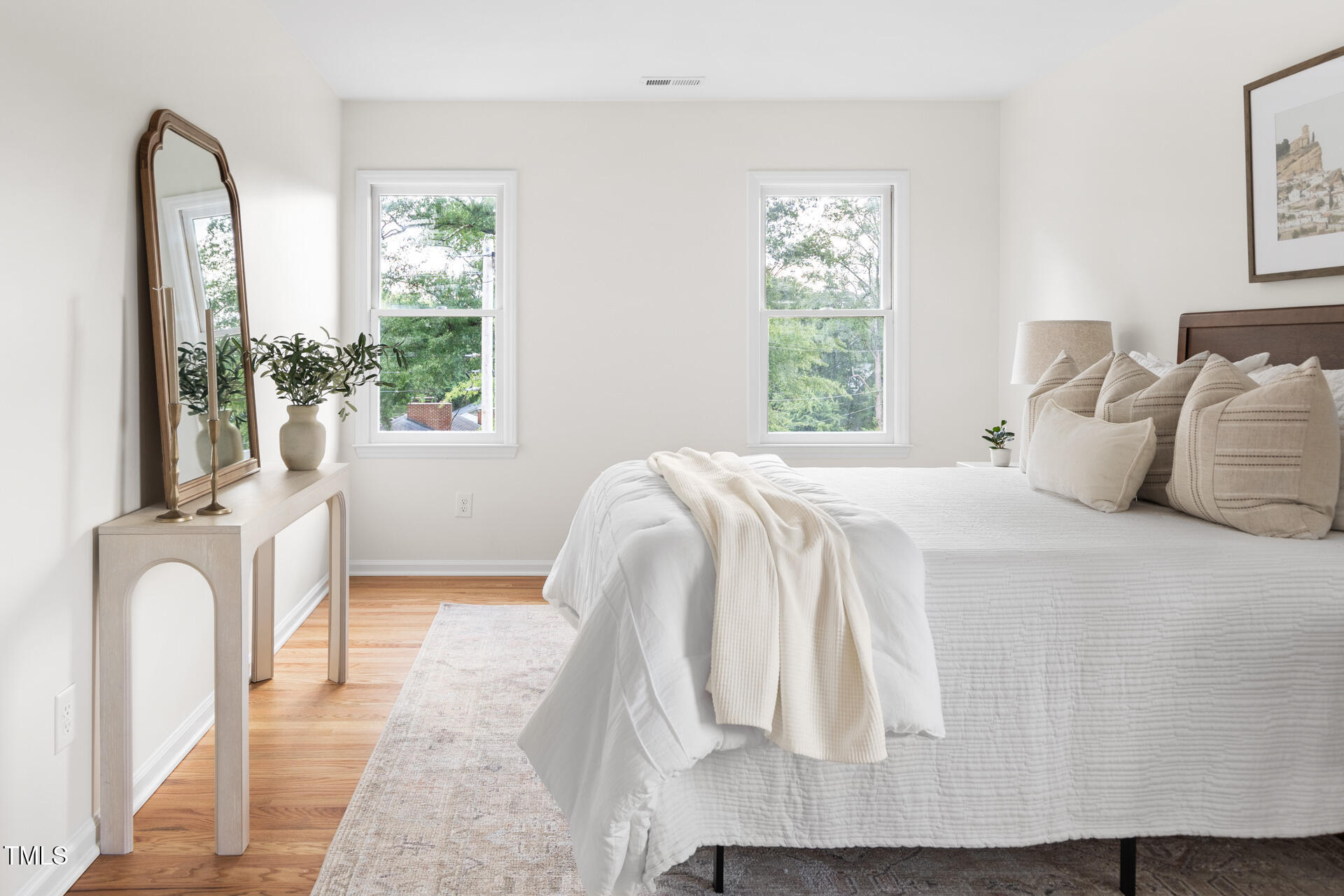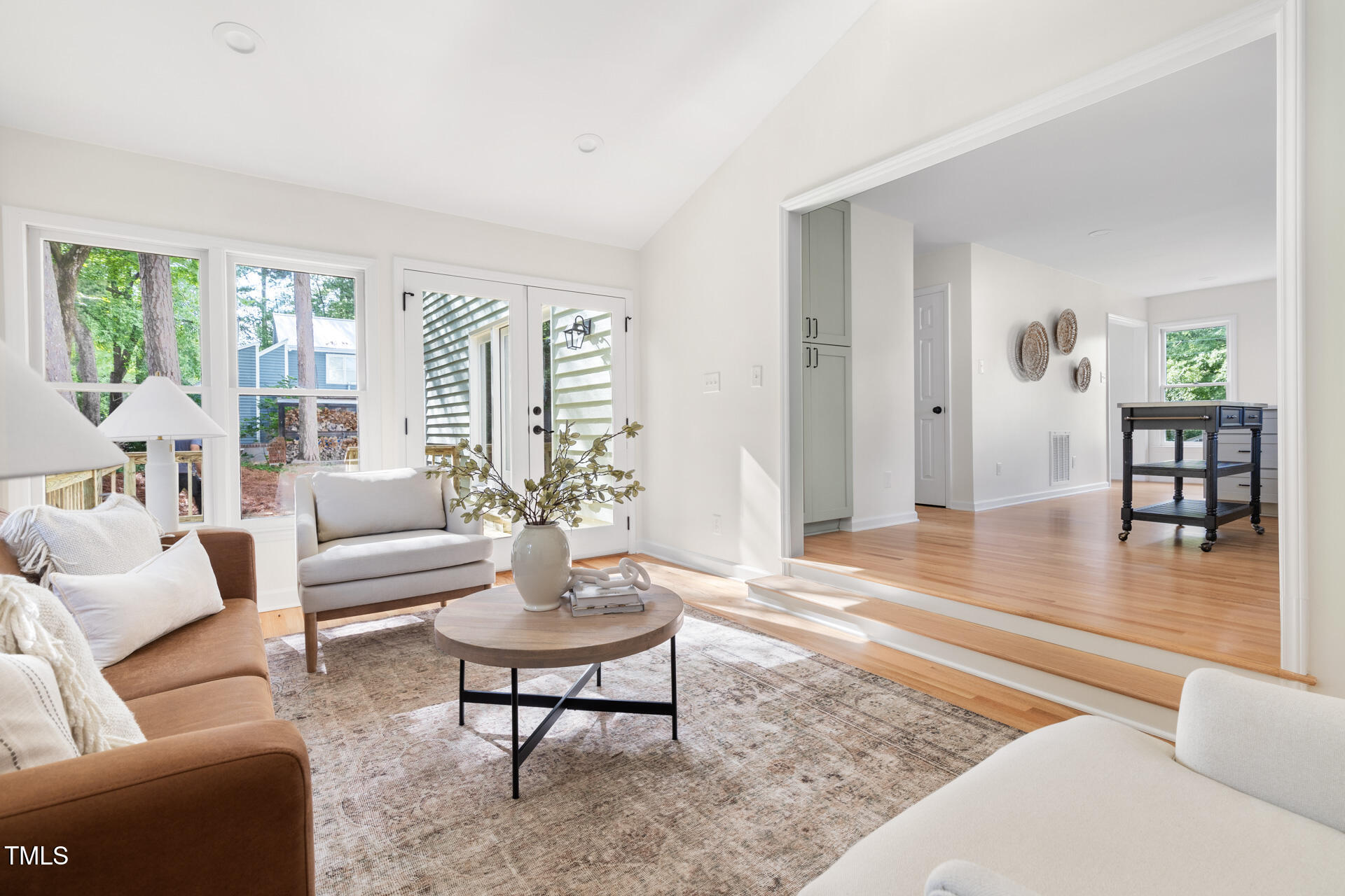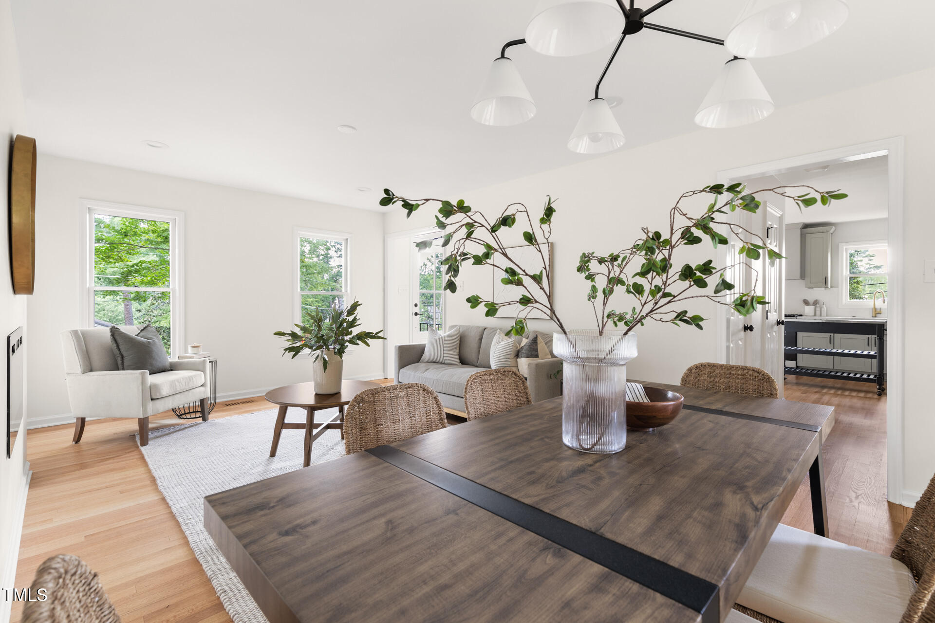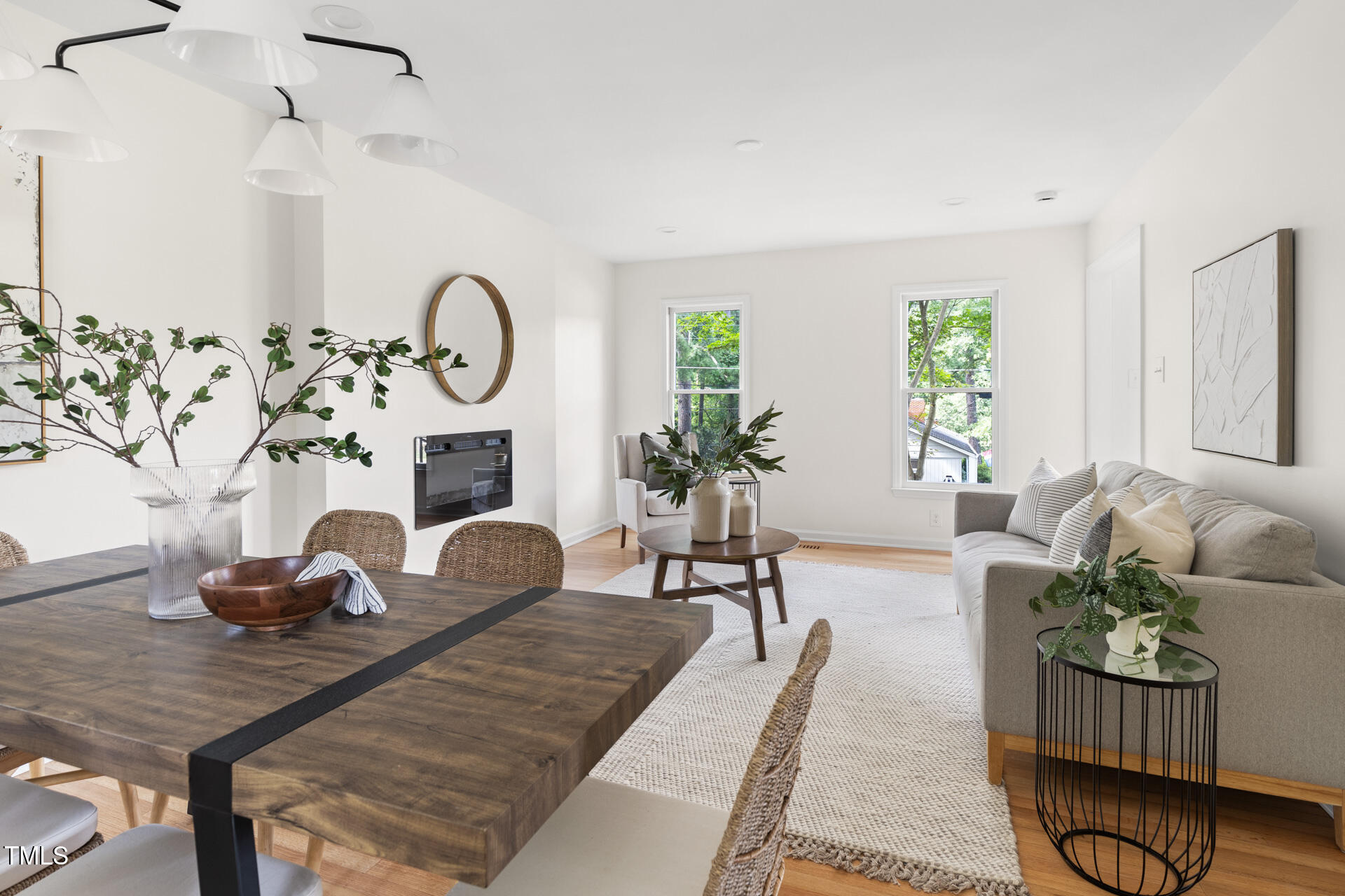On the edge of beloved Forest Hills, this 1980s two-story has had a stunning glow-up. Designer-selected colors and finishes set the tone throughout. With a highly functional floor plan, the main level offers a cozy living room with fireplace, an open dining area with access to a brand-new deck and patio, an eat-in kitchen, powder room, laundry, and a light-filled den. Thoughtful additions to the kitchen include a high-end microwave drawer, a stylish, moveable kitchen island that conveys, and quartz countertops with a seamless backsplash - outlets are tucked beneath the upper cabinets and a sleek pushbutton at the counter replaces the wall switch for the disposal. The den's cathedral ceilings and natural light make it a perfect flex area for work, relaxation, or entertaining space. Upstairs, you'll find three spacious bedrooms and two full baths, including a bright primary suite with en suite bath. Additional features include a one-car garage that makes pollen-season parking a breeze and fresh sod and new landscaping that bring instant curb appeal, with hydrangeas that will dazzle come spring. The upgrades are extensive: new roof, HVAC, electrical, and ductwork. Refinished hardwoods on the main floor and brand-new hardwoods upstairs and in the den. New kitchen and baths. New appliances. Fresh paint inside and out (on the cedar siding). New wooden front door and exterior doors, new brick walkway with wrought iron accents, and new garage door and back door in the garage to provide easier access to the kitchen. Multiple trees were removed to open the lot, while mature hardwoods remain to preserve the neighborhood's old-charm character. And the cherry on top? Conveniently close to Durham favorites like Nuvo Taco, Beer Study, Thai Cafe, and more.