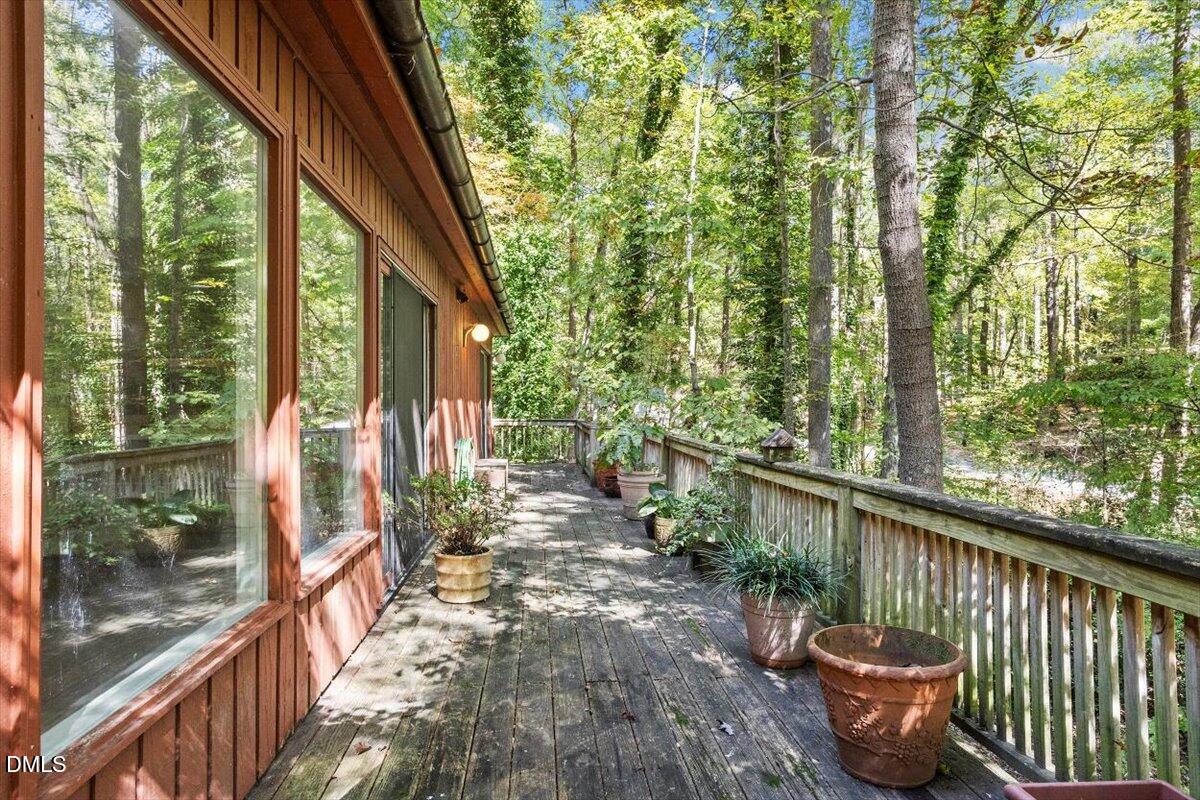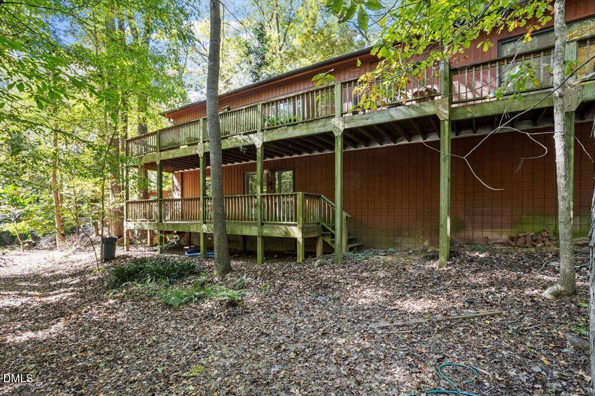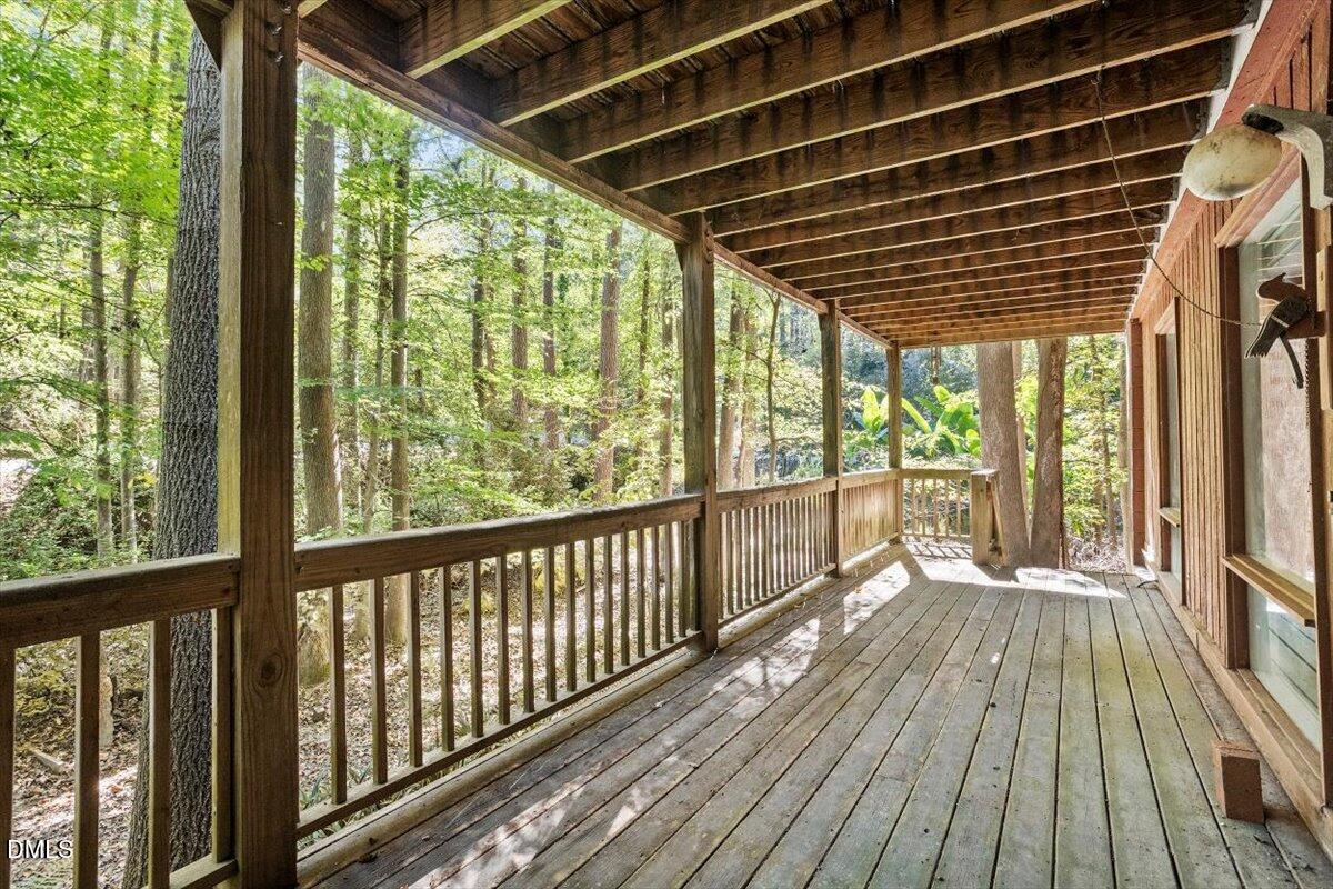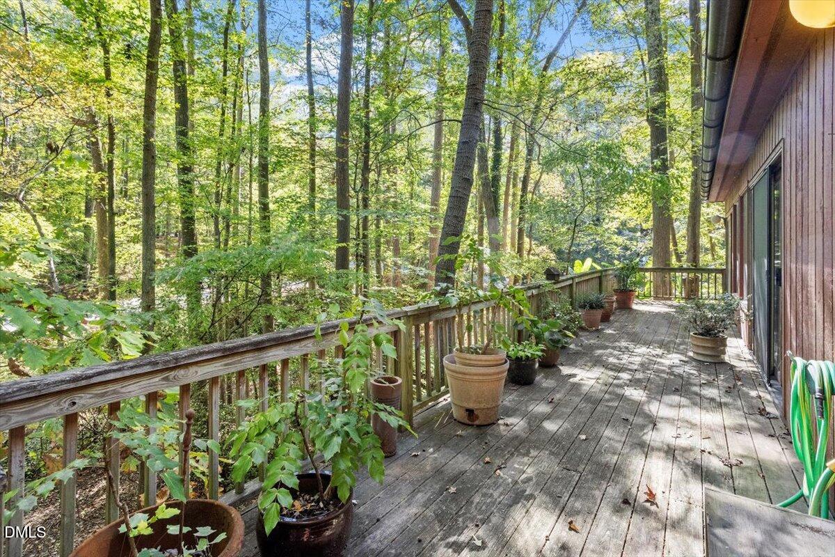 Tucked away in the serene Forest Hills neighborhood in Chapel Hill, this enchanting home exudes timeless charm and whispers of possibility. Inside, well-kept hardwood floors and oversized casement windows fill every corner with warmth. While it does need work, the home's character shines through in every detail--from the cozy, wood-burning fireplace to the inviting basement art studio, ready to inspire your creative passions. With a touch of imagination and care, this solid and graceful home can easily become something extraordinary. The kitchen, with its breakfast bar, pantry, and eat-in nook, invites transformation into the culinary space of your dreams. The primary suite offers comfort with a view, dual closets and a private ensuite, while a full, versatile basement provides endless possibilities for living, working, or creating. The light-filled living room offers sweeping views of the lush greenery that surrounds the home. Outside, the magic continues with lush foliage, towering hardwoods, and vibrant tropicals--banana palms and elephant ears--a natural paradise reminiscent of UNC's beloved Coker Arboretum. Enjoy morning coffees on the expansive upper deck that spans the length of the home. Or, savor a peaceful moment on the private lower deck off the ground floor. This isn't just a home--it's a canvas for your imagination, a sanctuary waiting to be rediscovered. Bring your vision, your creativity, and your heart, and let 163 Lake Ellen Drive become the dream you've been searching for!