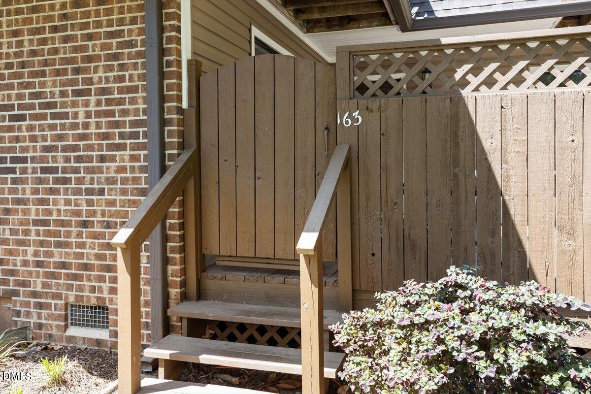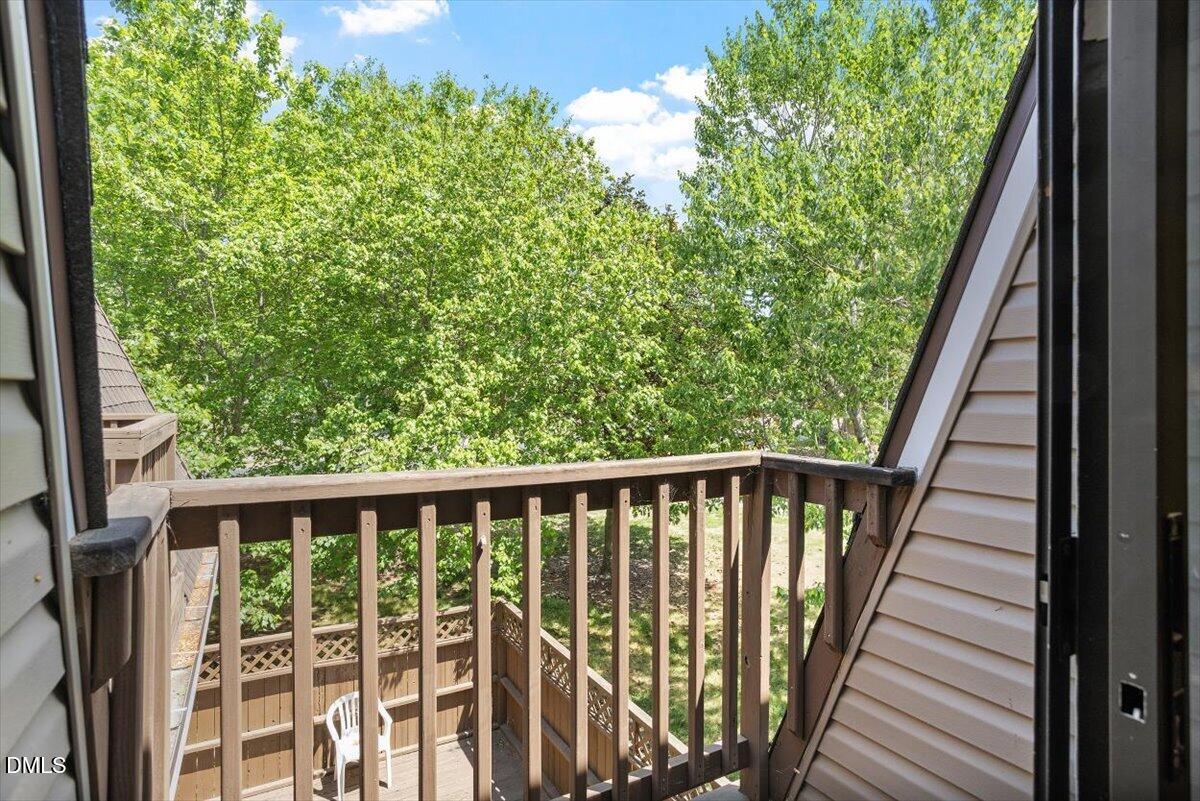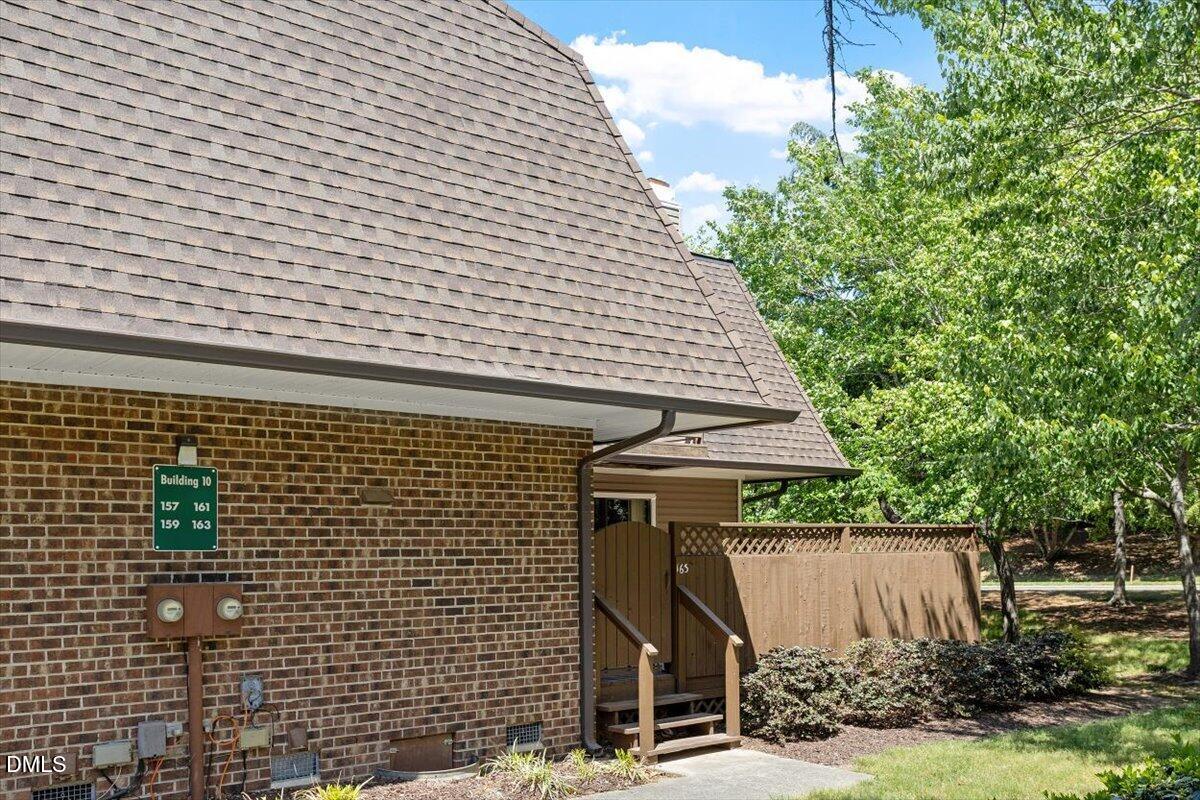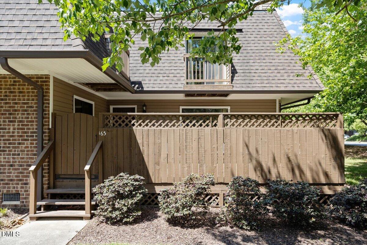Step into a storybook lifestyle with this enchanting 2-bedroom, 2.5-bathroom end-unit nestled in the heart of Finley Forest. Like a secret garden retreat, this home welcomes you with sun-drenched corners and a layout designed for both quiet moments and grand adventures. Curl up by the wood-burning fireplace, where a rustic cedar accent wall and built-in shelving wait for your favorite novels and treasures. The remodeled kitchen, sparkling with granite countertops and fresh cabinetry, is the perfect stage for morning tea or midnight snacks. Step through sliding glass doors to a private, partially covered deck--your own leafy sanctuary for birdwatching or stargazing. Upstairs, two private retreats await, each featuring its own tucked-away balcony--the perfect spot to watch the world go by with your morning coffee. Wander down the path to find a sparkling pool, tennis courts, and a playground, all just a skip away from your front door. You're on the free bus route to UNC and minutes from the Friday Center, making travel across the Triangle feel like a breeze. Meander over to Meadowmont Village for artisanal treats, boutiques, and a dash of local flair. With its fresh paint, updated baths, flooring, and whimsical charm, 163 Springberry Lane isn't just a condo--it's the beginning of your next great chapter.