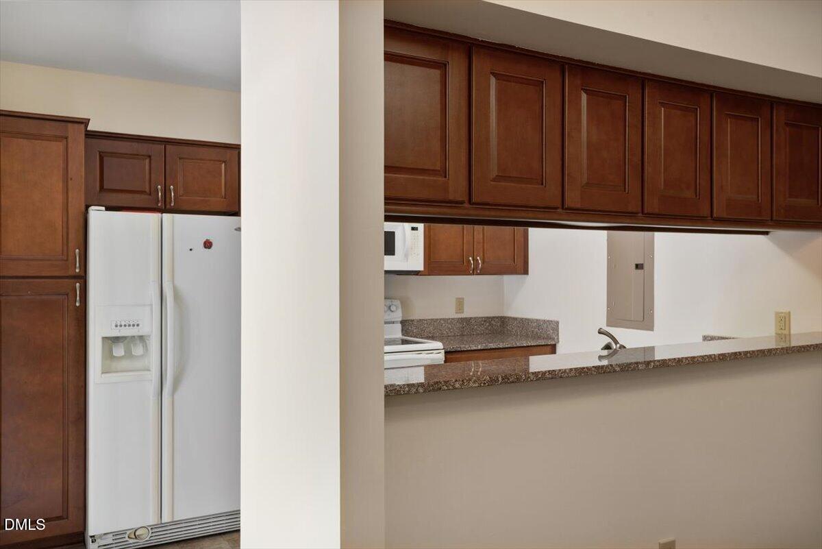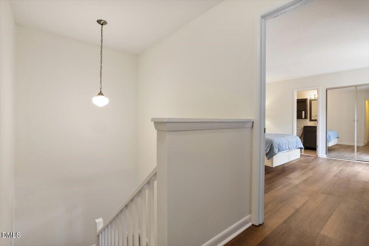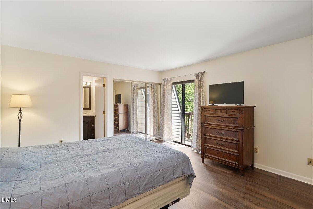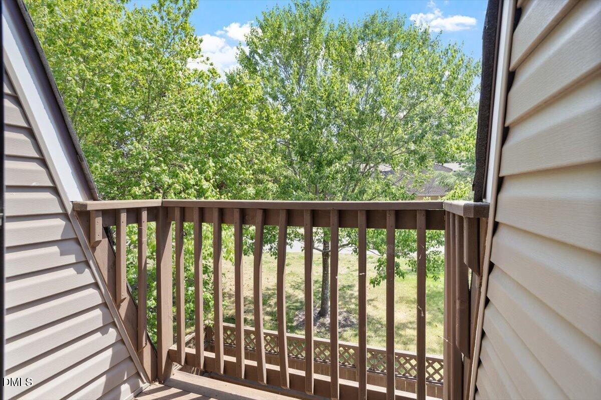 Step into a storybook lifestyle with this enchanting 2-bedroom, 2.5-bathroom end-unit nestled in the heart of Finley Forest. Like a secret garden retreat, this home welcomes you with sun-drenched corners and a layout designed for both quiet moments and grand adventures. Curl up by the wood-burning fireplace, where a rustic cedar accent wall and built-in shelving wait for your favorite novels and treasures. The remodeled kitchen, sparkling with granite countertops and fresh cabinetry, is the perfect stage for morning tea or midnight snacks. Step through sliding glass doors to a private, partially covered deck--your own leafy sanctuary for birdwatching or stargazing. Upstairs, two private retreats await, each featuring its own tucked-away balcony--the perfect spot to watch the world go by with your morning coffee. Wander down the path to find a sparkling pool, tennis courts, and a playground, all just a skip away from your front door. You're on the free bus route to UNC and minutes from the Friday Center, making travel across the Triangle feel like a breeze. Meander over to Meadowmont Village for artisanal treats, boutiques, and a dash of local flair. With its fresh paint, updated baths, flooring, and whimsical charm, 163 Springberry Lane isn't just a condo--it's the beginning of your next great chapter.