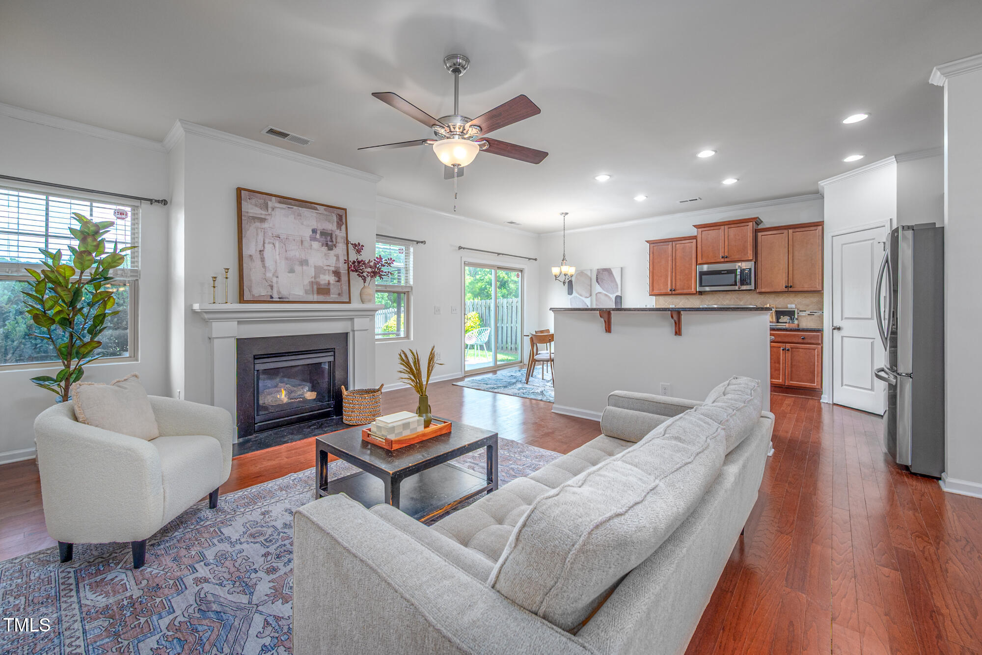 Life here embraces the best of October's spirit--calm, colorful, and full of possibilities. Whether it's watching the seasons change or hosting gatherings that bring everyone together, 2007 October Drive holds the promise of a life that is filled with your favorite things. This 3BR/3BA home balances cozy, convenient, and spacious with a 2 car garage, an open floor plan that includes a dining area, eat in kitchen, and a gas fireplace in the living room. Not only does it offer a second-floor loft space, it's one of the few in the neighborhood with a huge third-floor bonus room that could be used for yoga, an art studio, movies, or a game room. And if you prefer to be outside, you'll love watching hawks soar overhead from the fully fenced backyard with a patio and tons of sun for gardening. It's one of the most private yards in the neighborhood thanks to the greenspace owned and maintained by the HOA. The undeveloped buffer extends beyond the fence line and totals almost 10 acres all together. Life here is convenient- Hanover Pointe's playground is just outside your front door and the neighborhood pool is across the street so you can cool off and relax without ever getting in your car. And when you do venture out, Raleigh, RTP, and downtown Durham are a short 10 minute drive away. June 2025 updates include new interior paint and a new gas range.