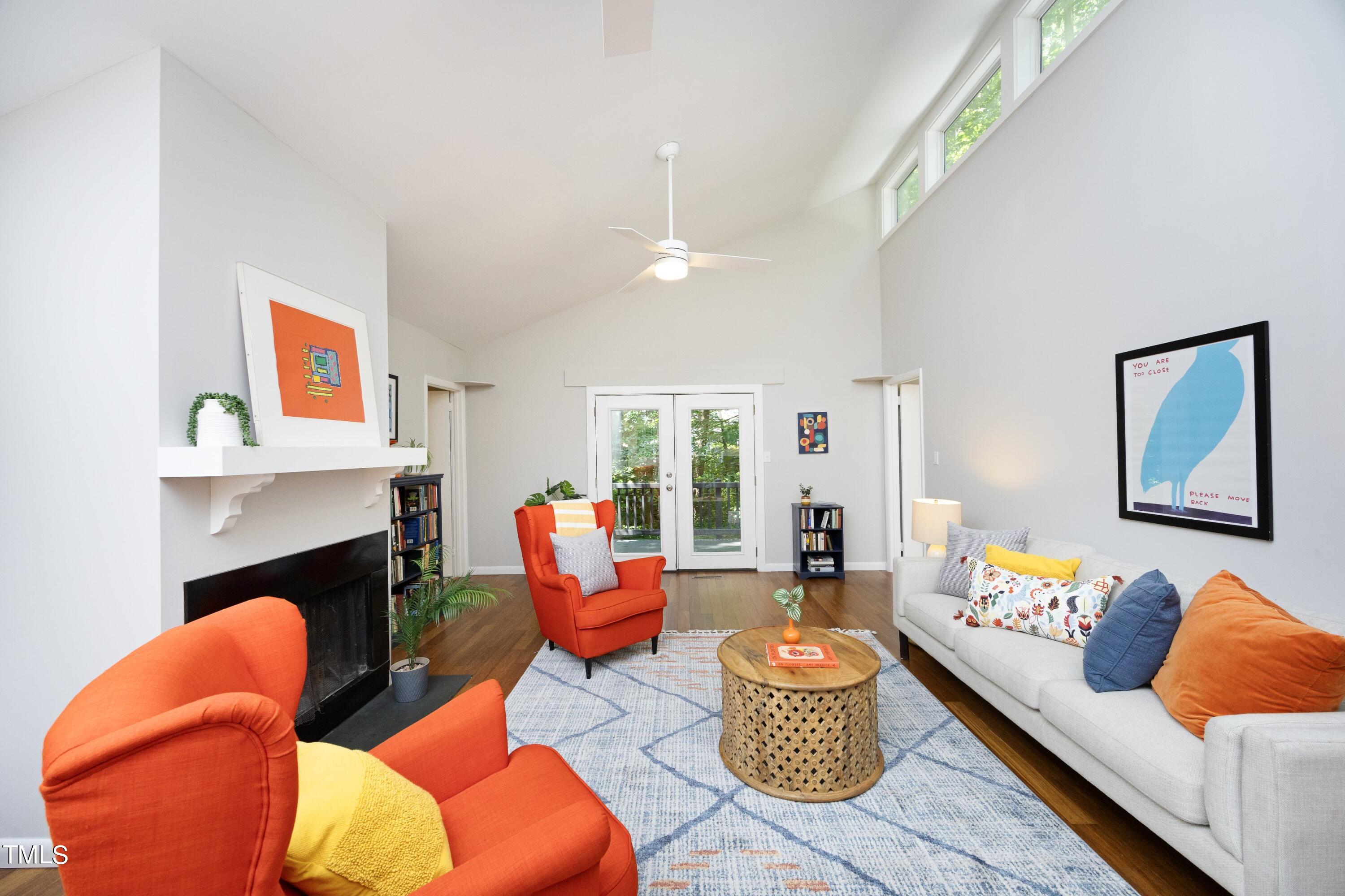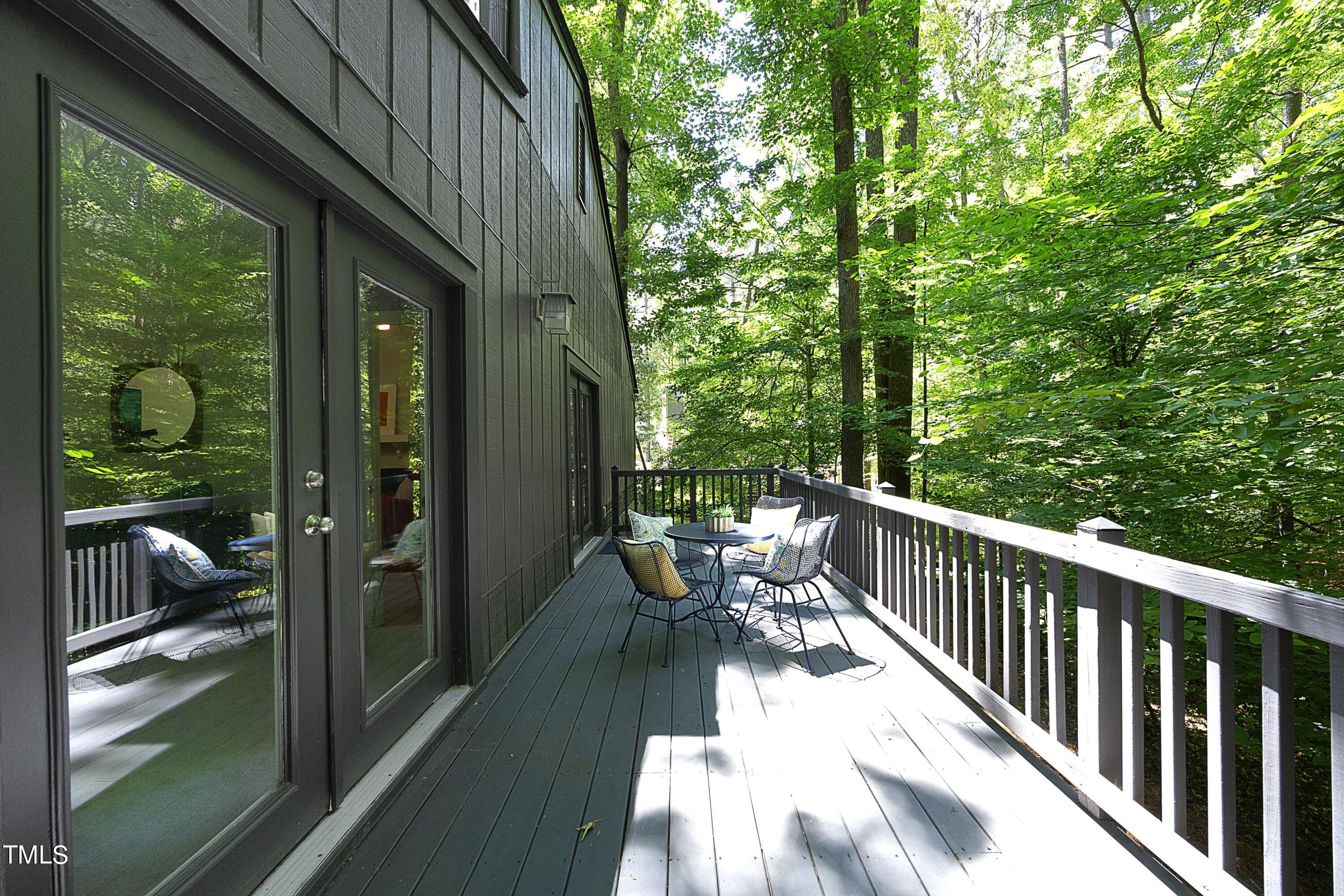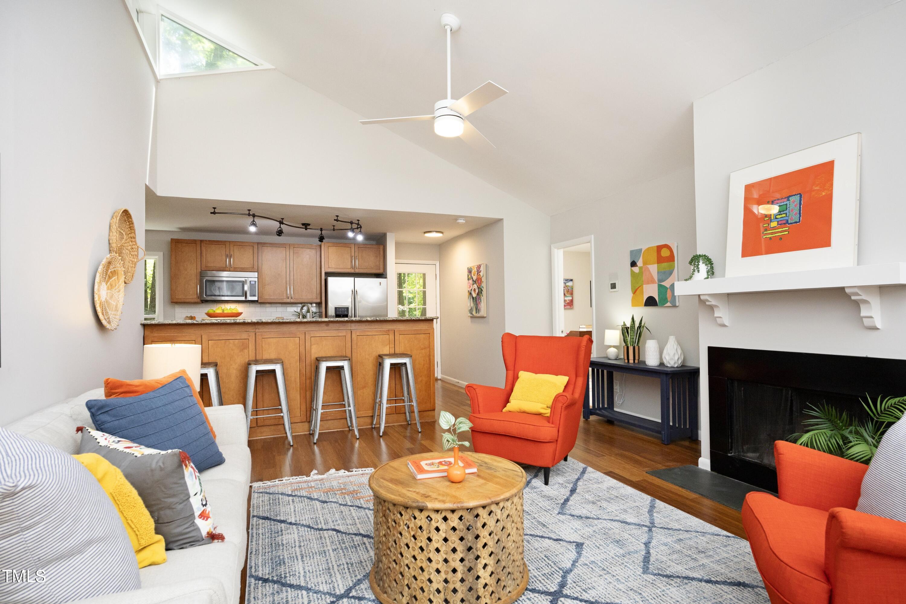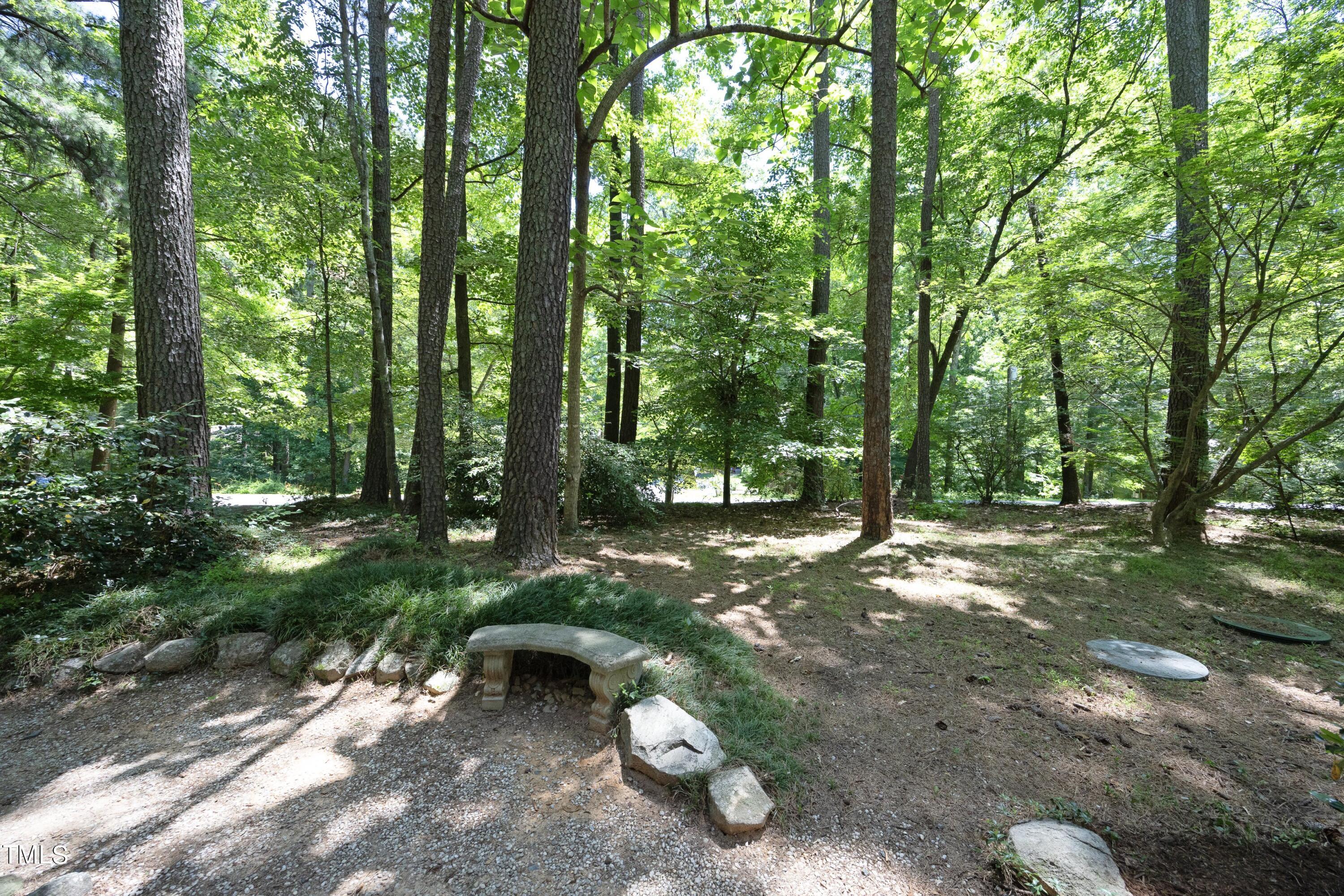 Around the bend in this wooded established and friendly neighborhood sits these lovely single floor open and updated modernist digs. Complete with a covered front porch for sitting and full deck in back overlooking fenced yard and creek. Large great room with double high ceilings, wood floors, wood fireplace, open to an updated and efficient kitchen with granite and stainless. New stove, new dishwasher 2021. Fresh carpet and paint. Updated bathrooms. Roof in 2016. HVAC 2018. Established landscaping. Fire pit. Short distance to Christie Park. Car free dining and services. Convenient to Chapel Hill/Carrboro and all the new great things coming to Chatham. Friendly HOA hosts gatherings and brush pickup.