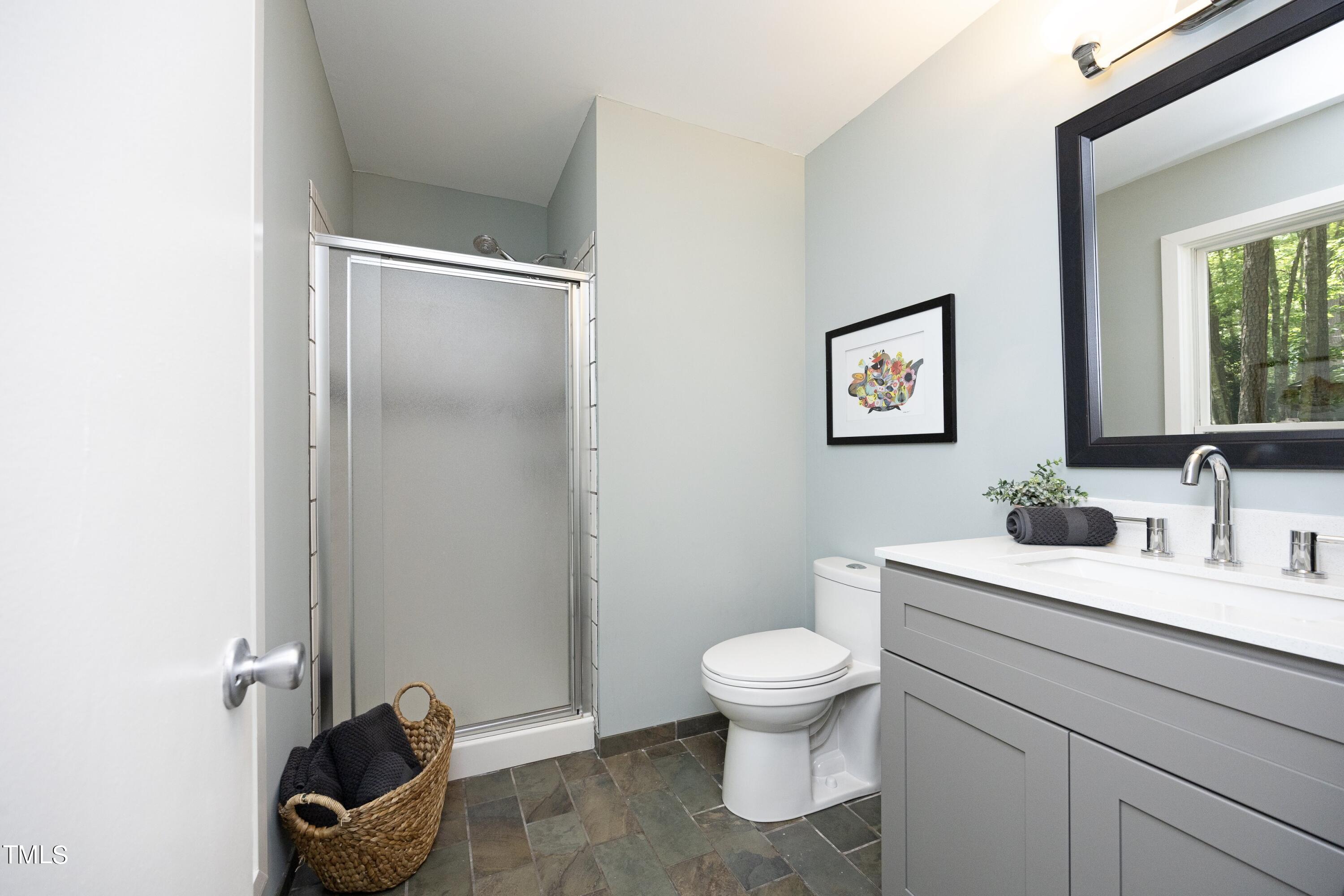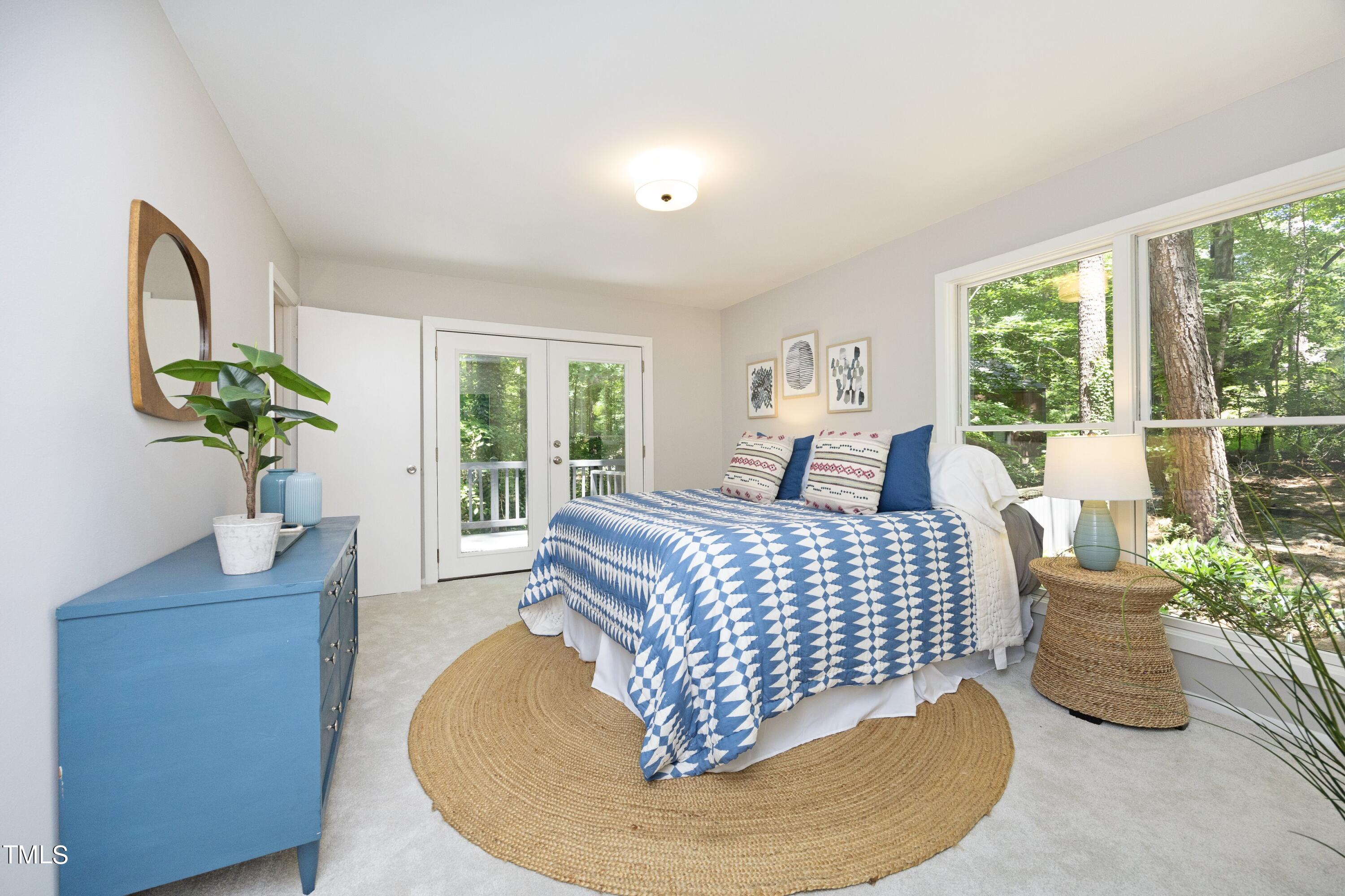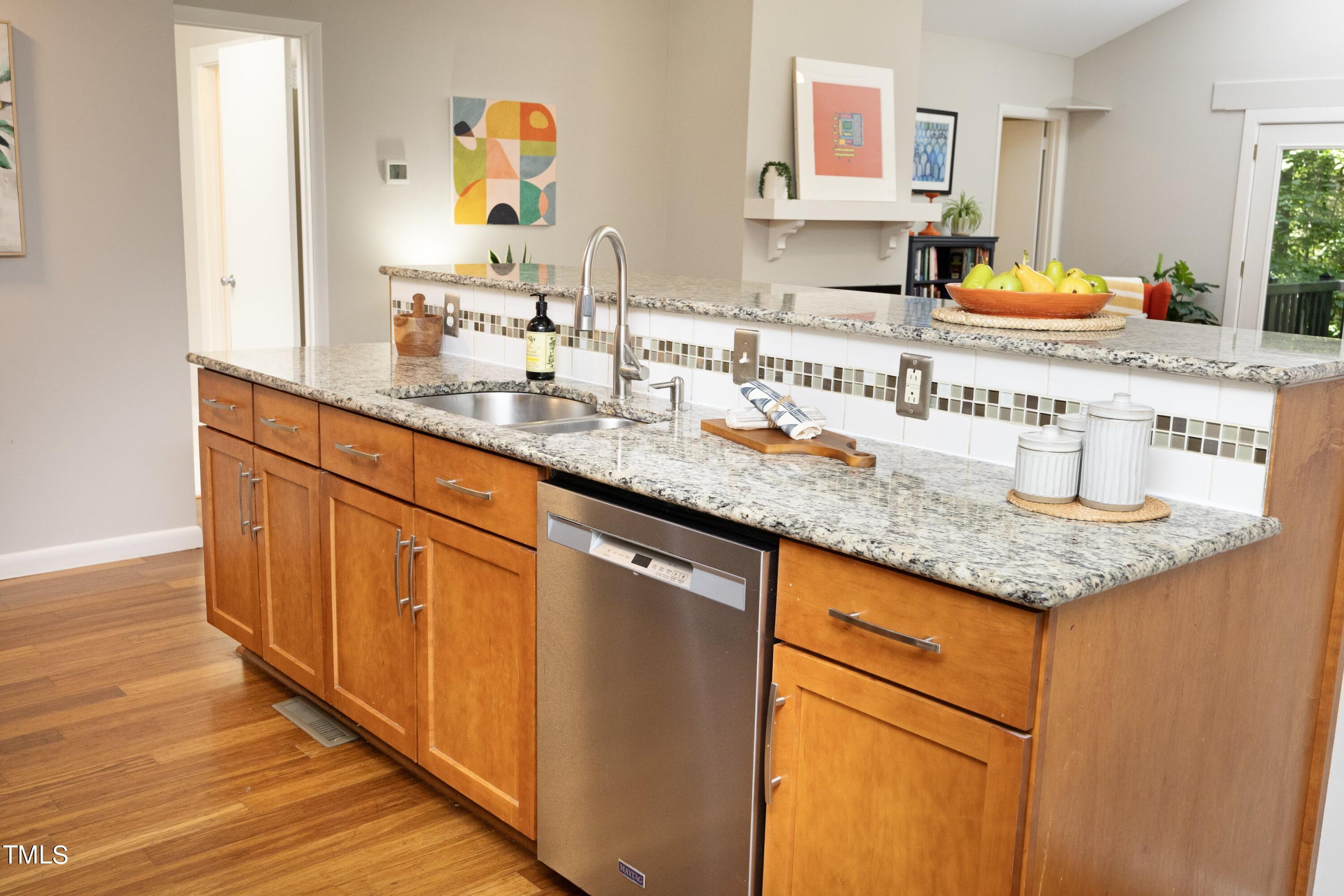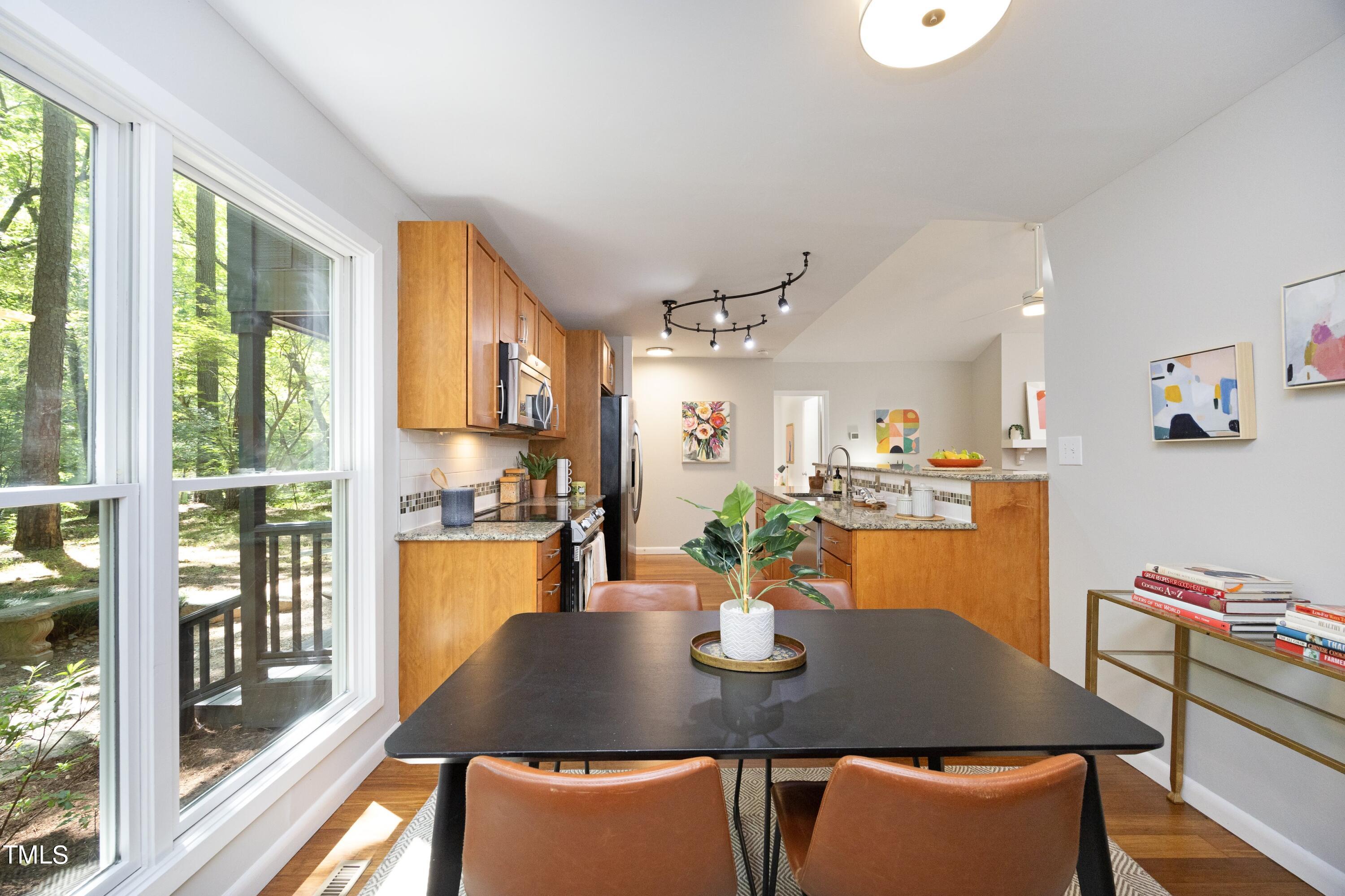 Around the bend in this wooded established and friendly neighborhood sits these lovely single floor open and updated modernist digs. Complete with a covered front porch for sitting and full deck in back overlooking fenced yard and creek. Large great room with double high ceilings, wood floors, wood fireplace, open to an updated and efficient kitchen with granite and stainless. New stove, new dishwasher 2021. Fresh carpet and paint. Updated bathrooms. Roof in 2016. HVAC 2018. Established landscaping. Fire pit. Short distance to Christie Park. Car free dining and services. Convenient to Chapel Hill/Carrboro and all the new great things coming to Chatham. Friendly HOA hosts gatherings and brush pickup.