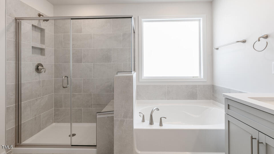 Elevating up to the second floor you will find your primary bedroom which boasts a walk-in shower, a bathtub, dual vanity with plenty of sink space to share, a roomy walk-in closet, and a water closet for ultimate privacy. The loft offers a flexible space that can be used as a media room, playroom, or fitness space and conveniently connects to a full bathroom with a tub-shower combo. The laundry closet is just off the loft. The two secondary bedrooms provide ample natural lighting, and a storage closet is nestled in the corner of the loft.