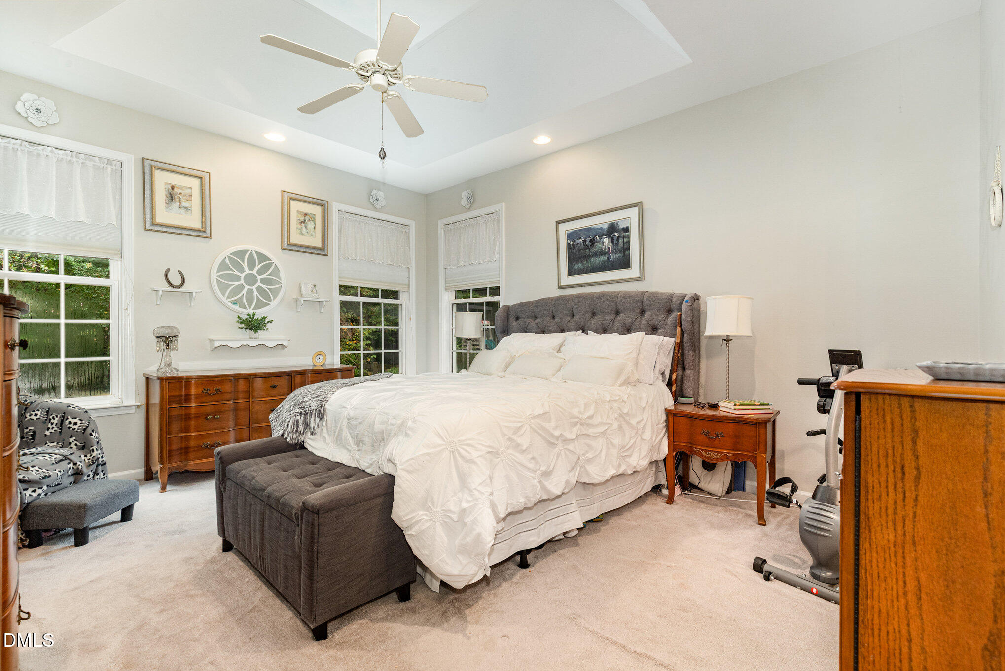 Beautiful Hillsborough transitional home with first floor primary suite and private fenced yard! Two story foyer and living room, open kitchen with corian countertops/stainless appliances/tile floors, cathedral ceiling in dining room, vaulted ceiling in breakfast room, trey ceiling in primary bedroom, primary bathroom has dual sinks/garden tub/separate shower/walk-in closet. Second floor features loft area, 2 bedrooms/full bath, and 4th bedroom or bonus room! Rear screened porch, large deck, extensive landscaping, and great rear privacy! Conveniently located to downtown Hillsborough, UNC hospital, and I-40! A Must to See!