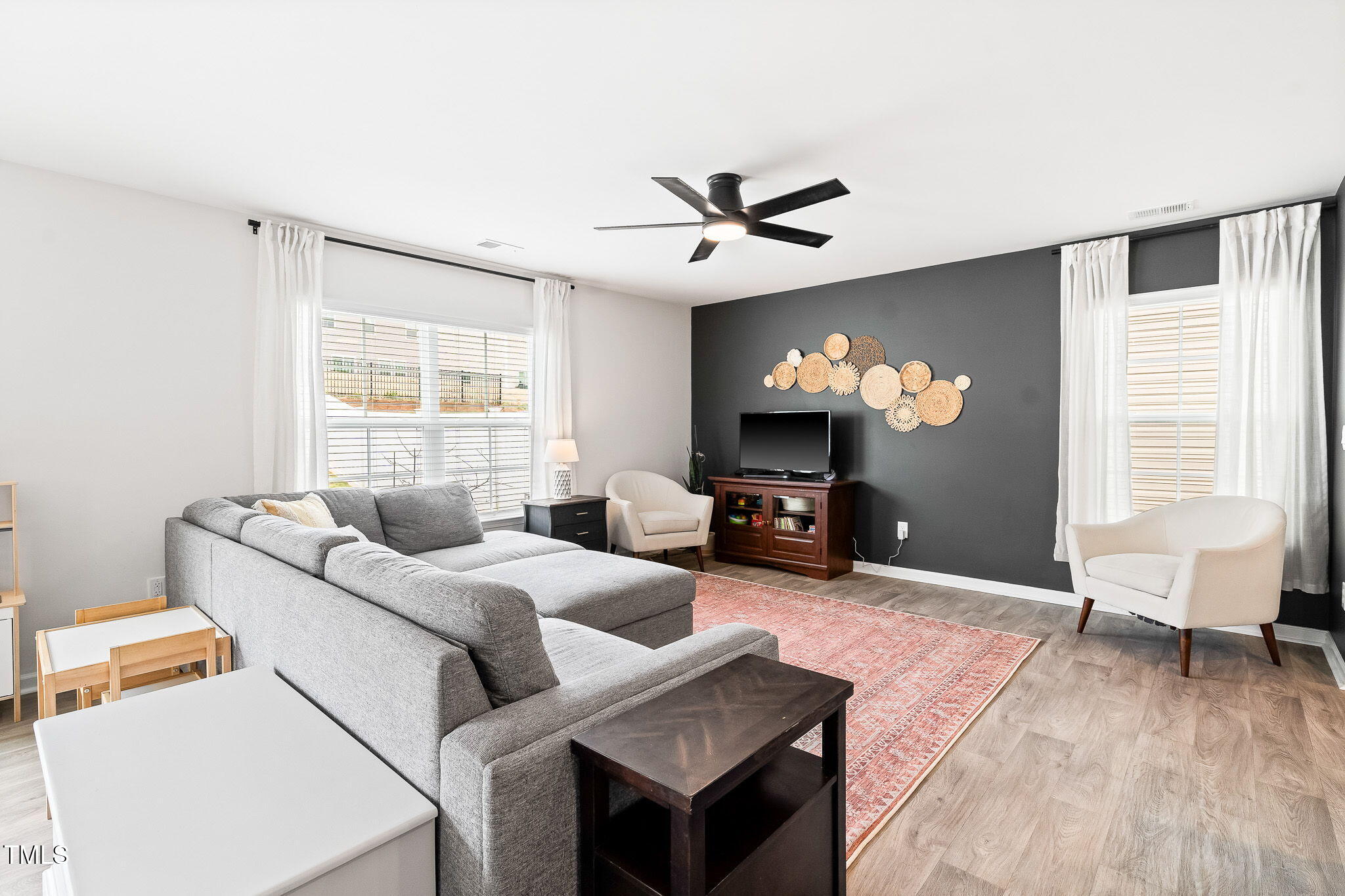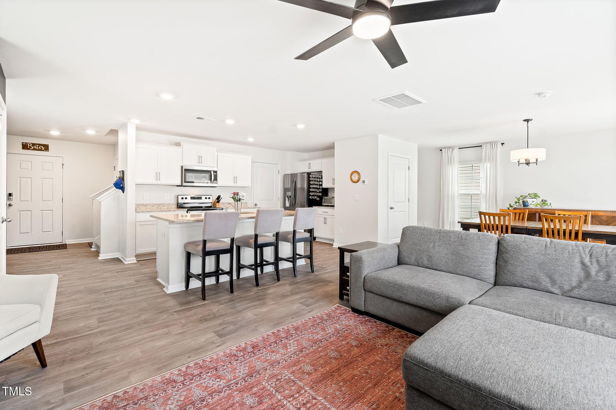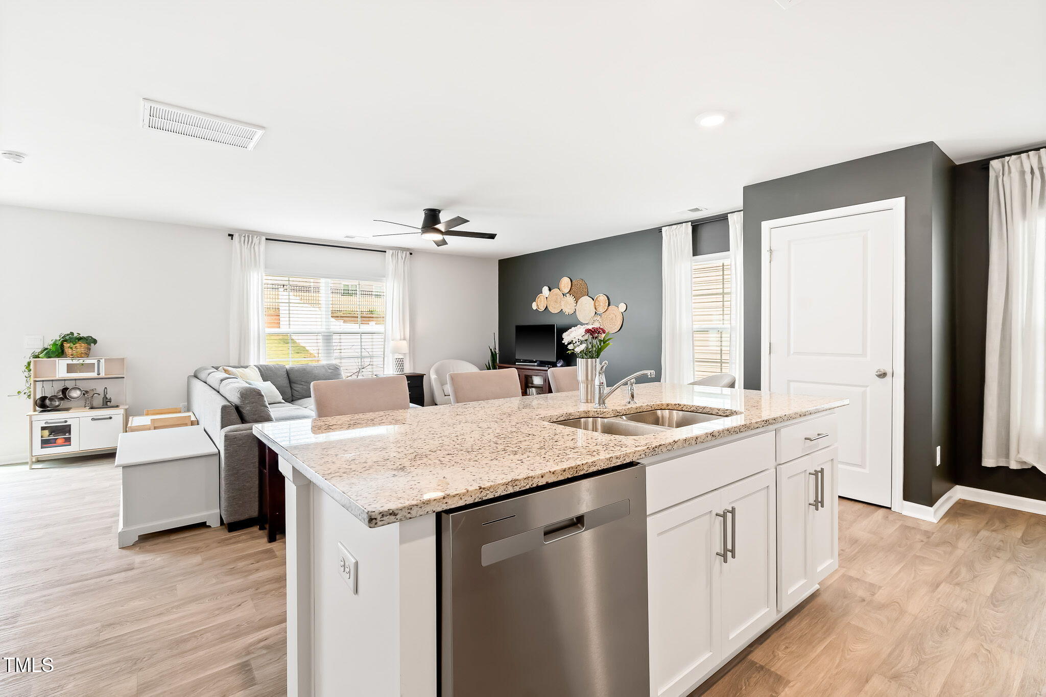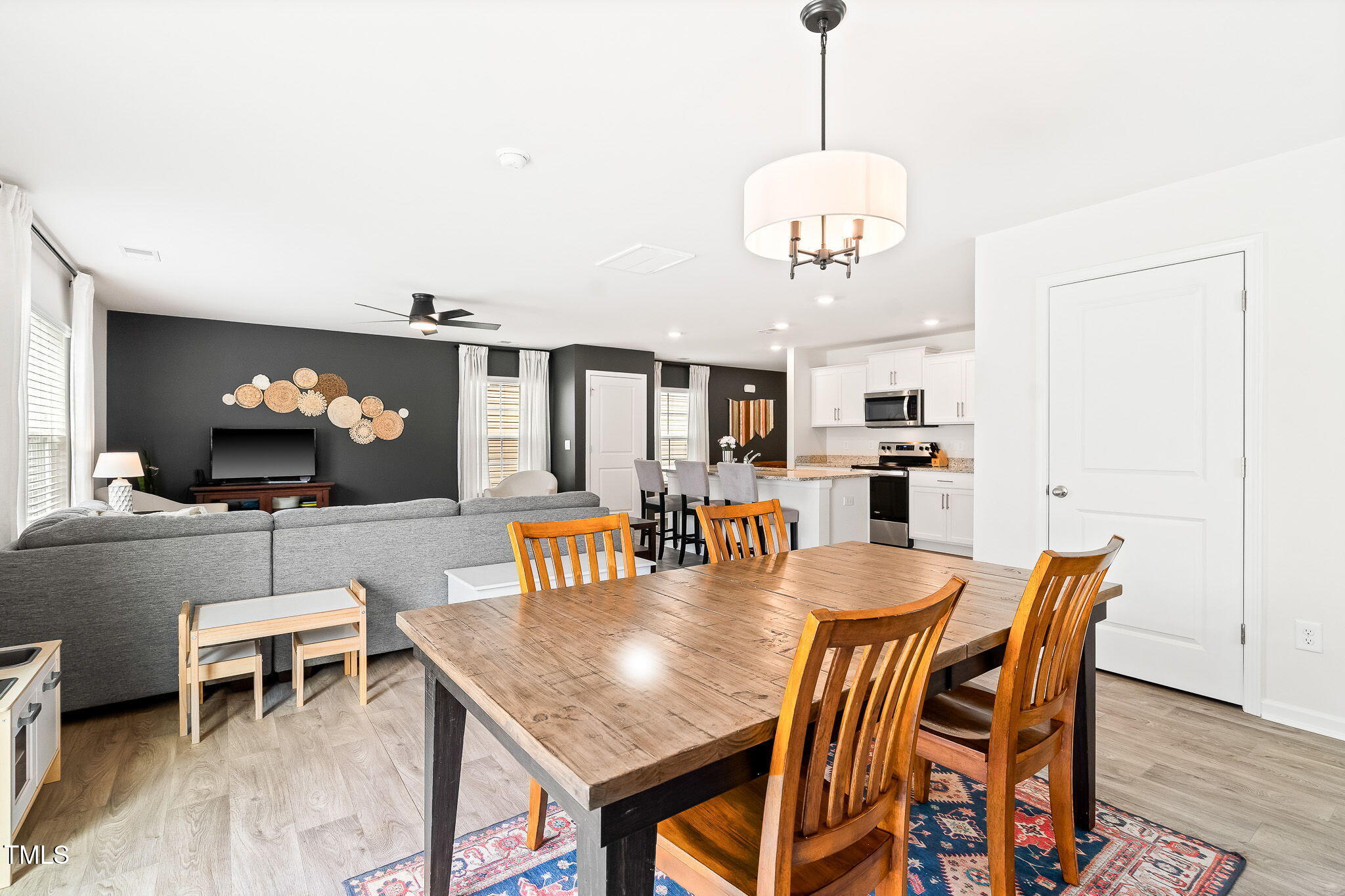 Turnkey 2sty in desirable Riley's Meadow! Gray lvp flooring throughout main level... This home has a myriad of designer touches such as light fixtures, ceiling fans, 2'' faux wood blinds & paint. Kitchen w/granite countertops & white cabs open to Family & Dining Room for easy entertaining. Powder bath for Guests! Upstairs is thoughtfully laid out w/a large loft, HUGE Primary Suite & 3 add'l BR's w/shared Full Bath. Privacy fence in backyard & wonderful community amenities w/playground, clubhouse & pool. 2 Car Garage! Transferable 10-year builder structural warranty! Like new & waiting for YOU!