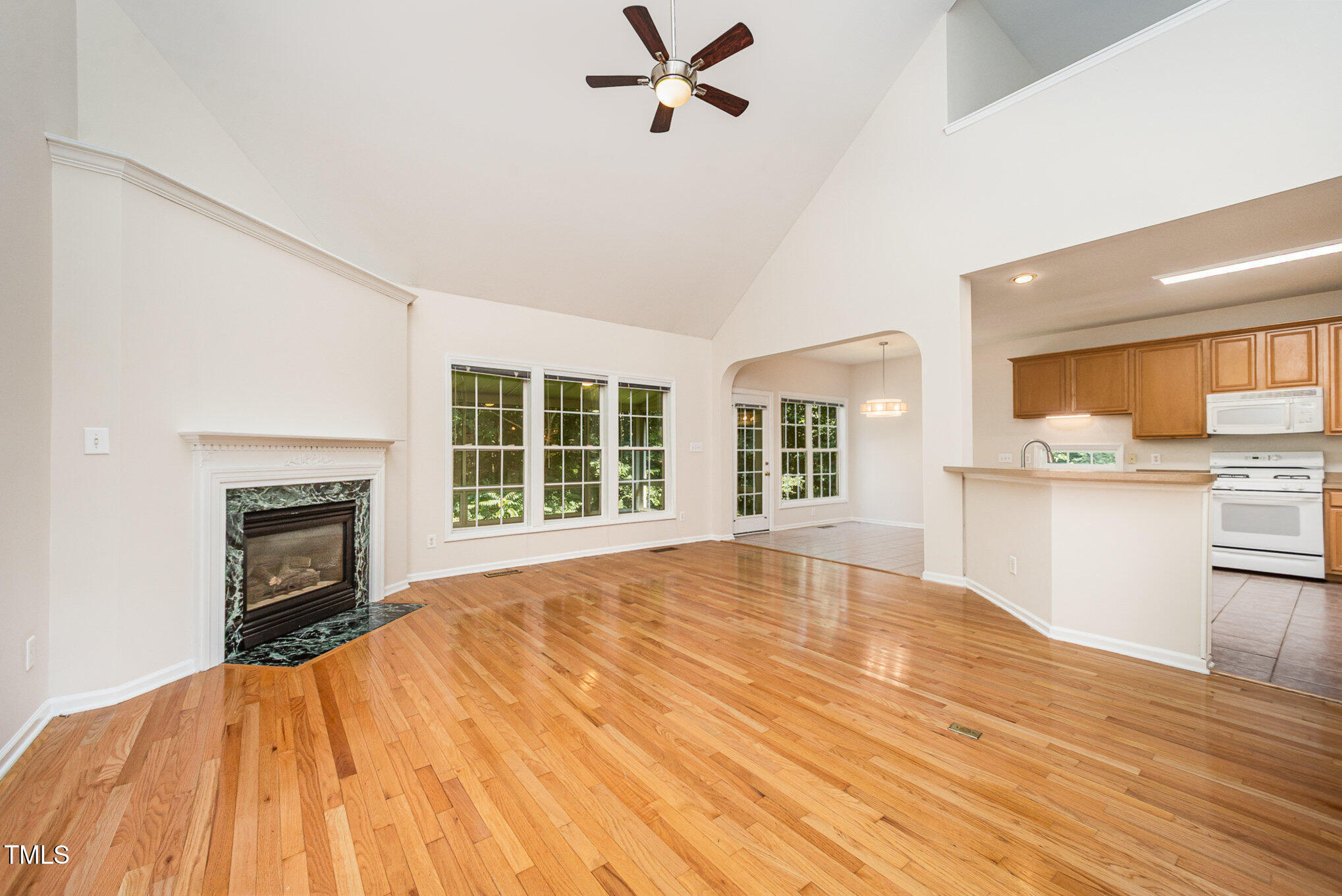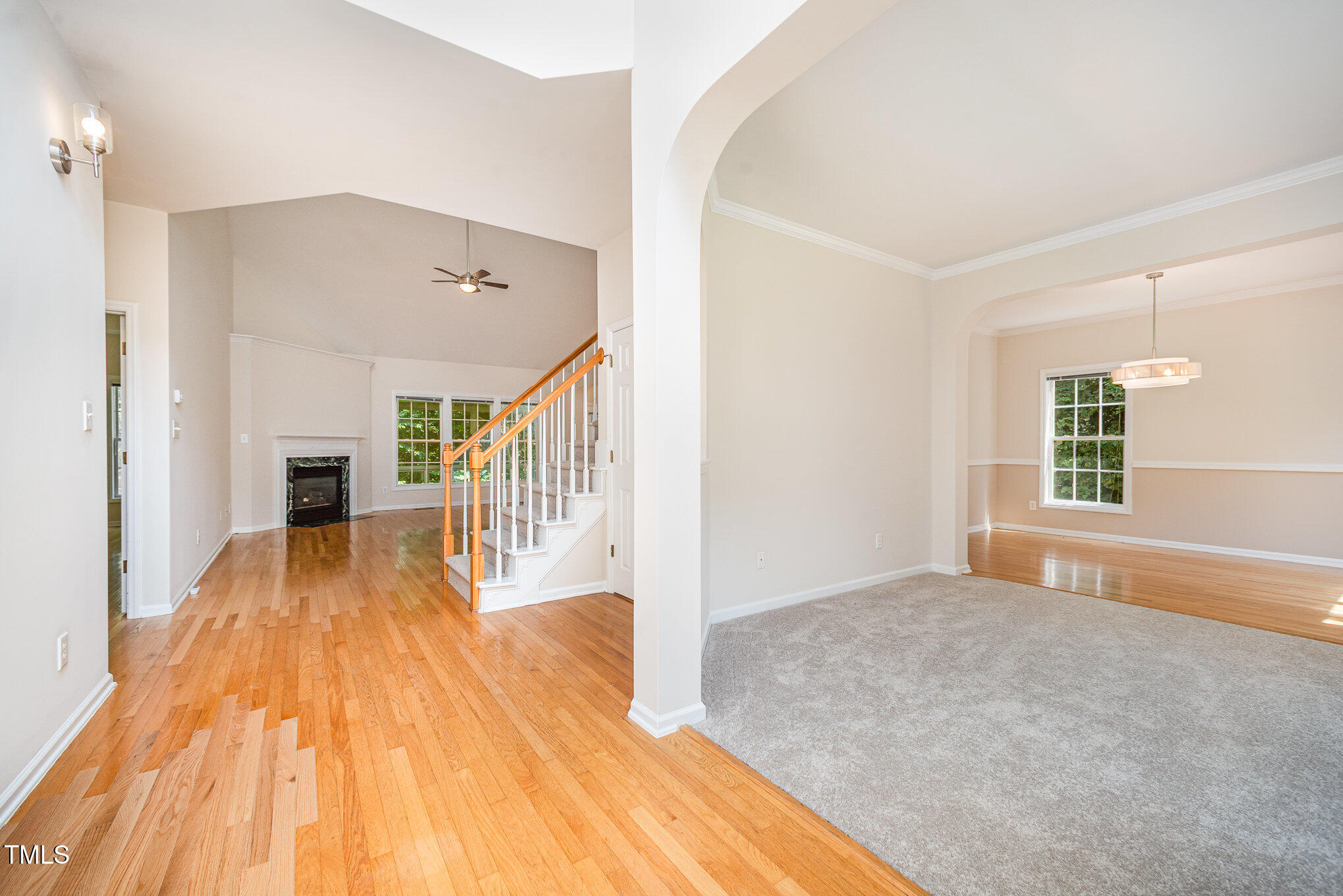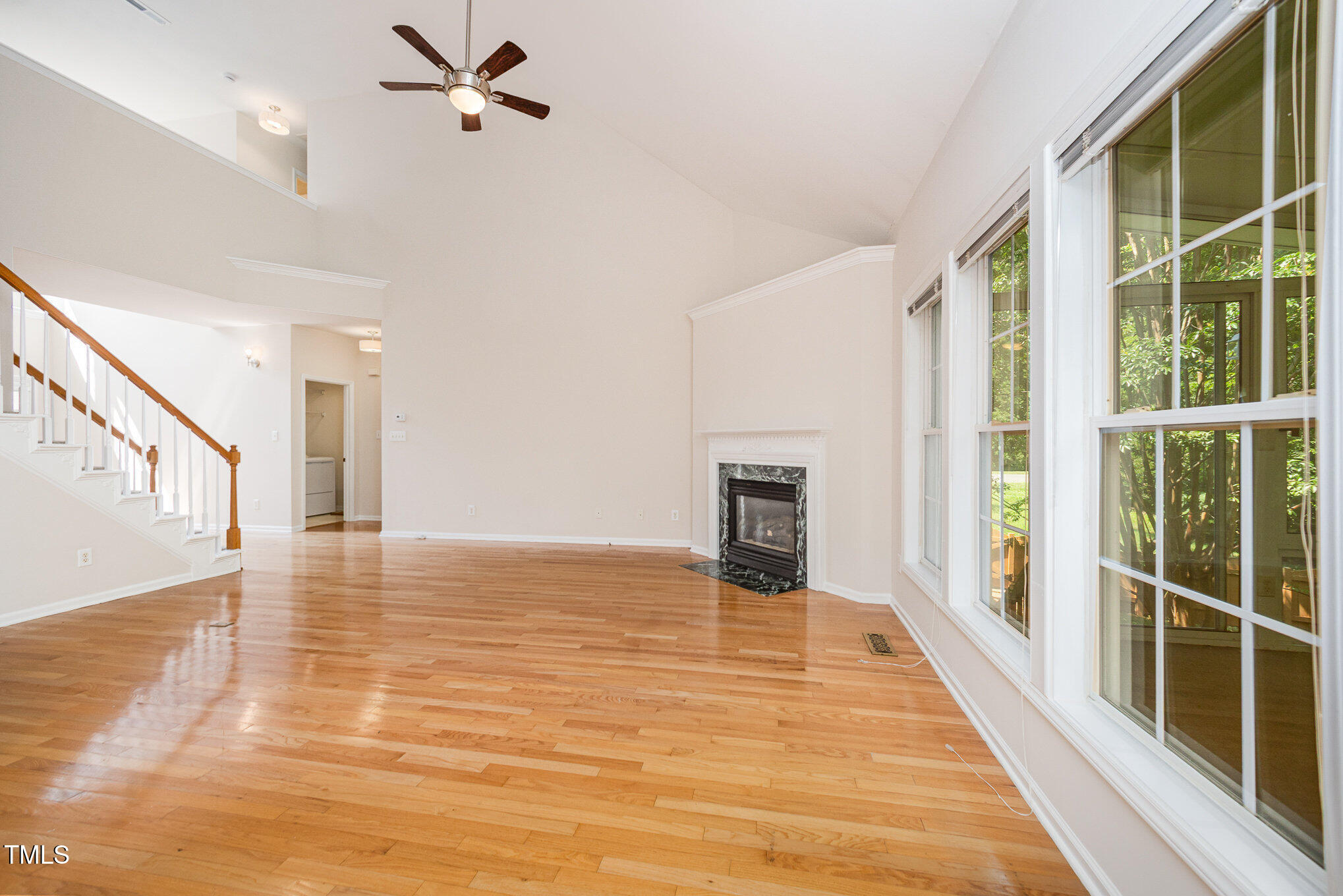 With a 1-Year Home Warranty this one's move-in ready and made to enjoy. Light-filled and full of charm, this 4 bed, 2.5 bath home sits on a large corner lot with a fenced backyard, creek view, and HOA green space on all sides. Enjoy hardwood floors, a dramatic 2-story foyer and great room, and a main-level primary suite with tray ceiling, walk-in closet, and spa-like bath. The kitchen opens to a sunroom. Upstairs features a loft, catwalk, and walk-in attic storage. With new carpet and paint, whole-house generator, gas fireplace, 2-car garage, and HVAC (2022).
