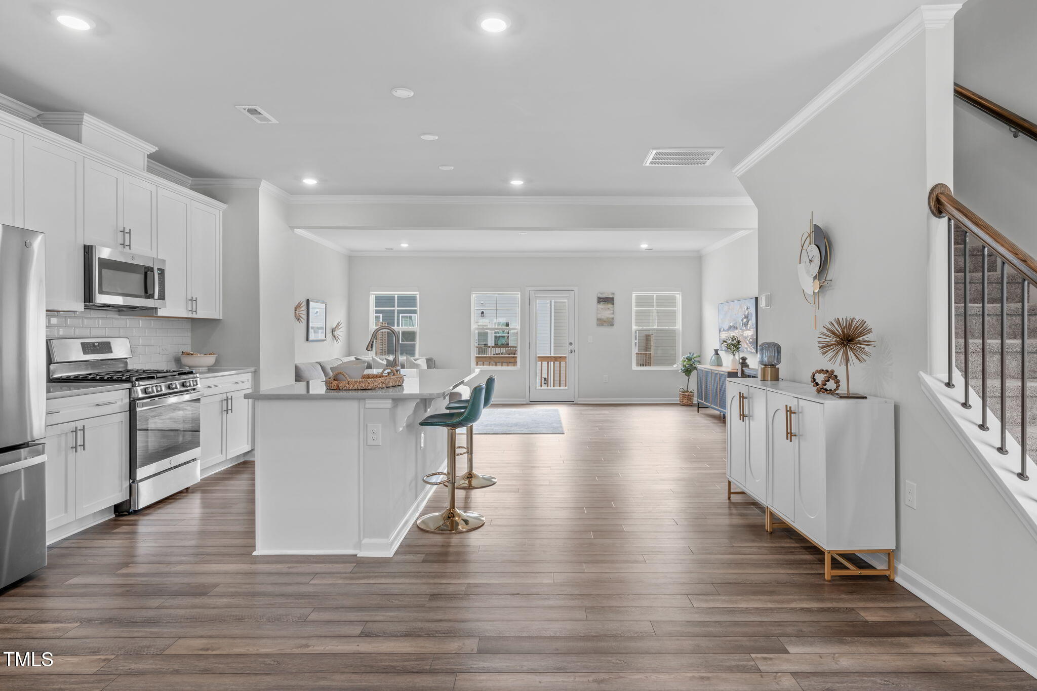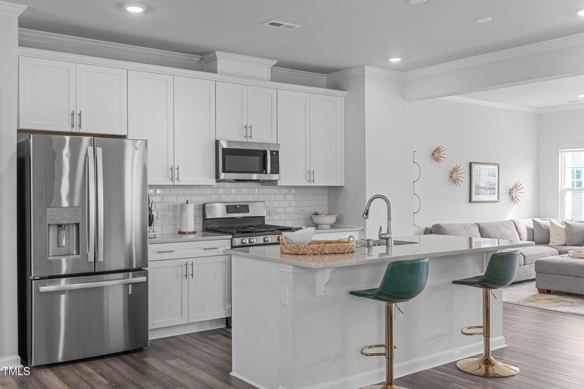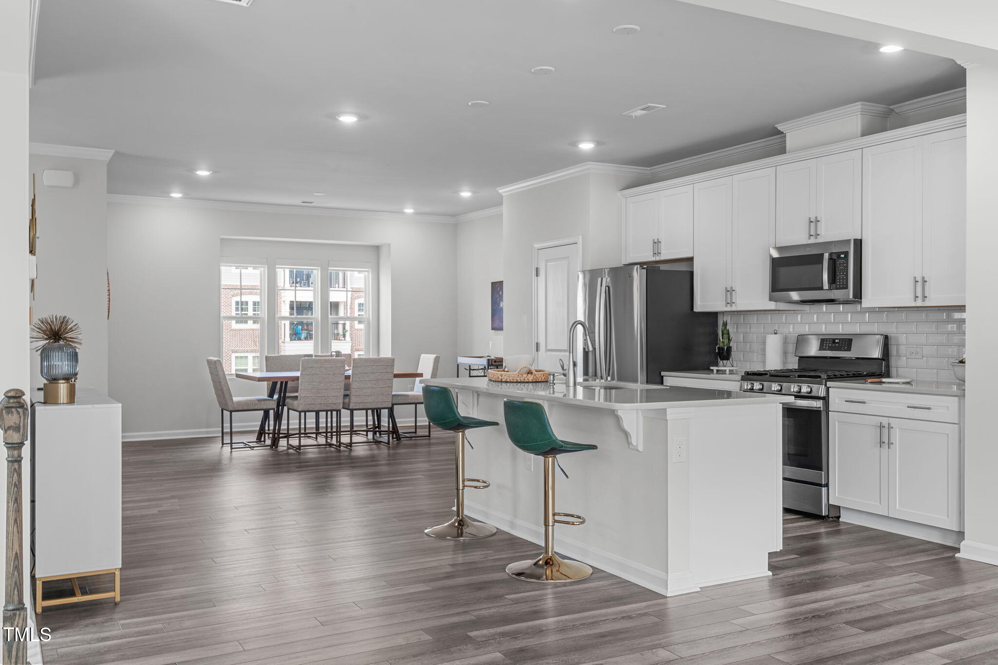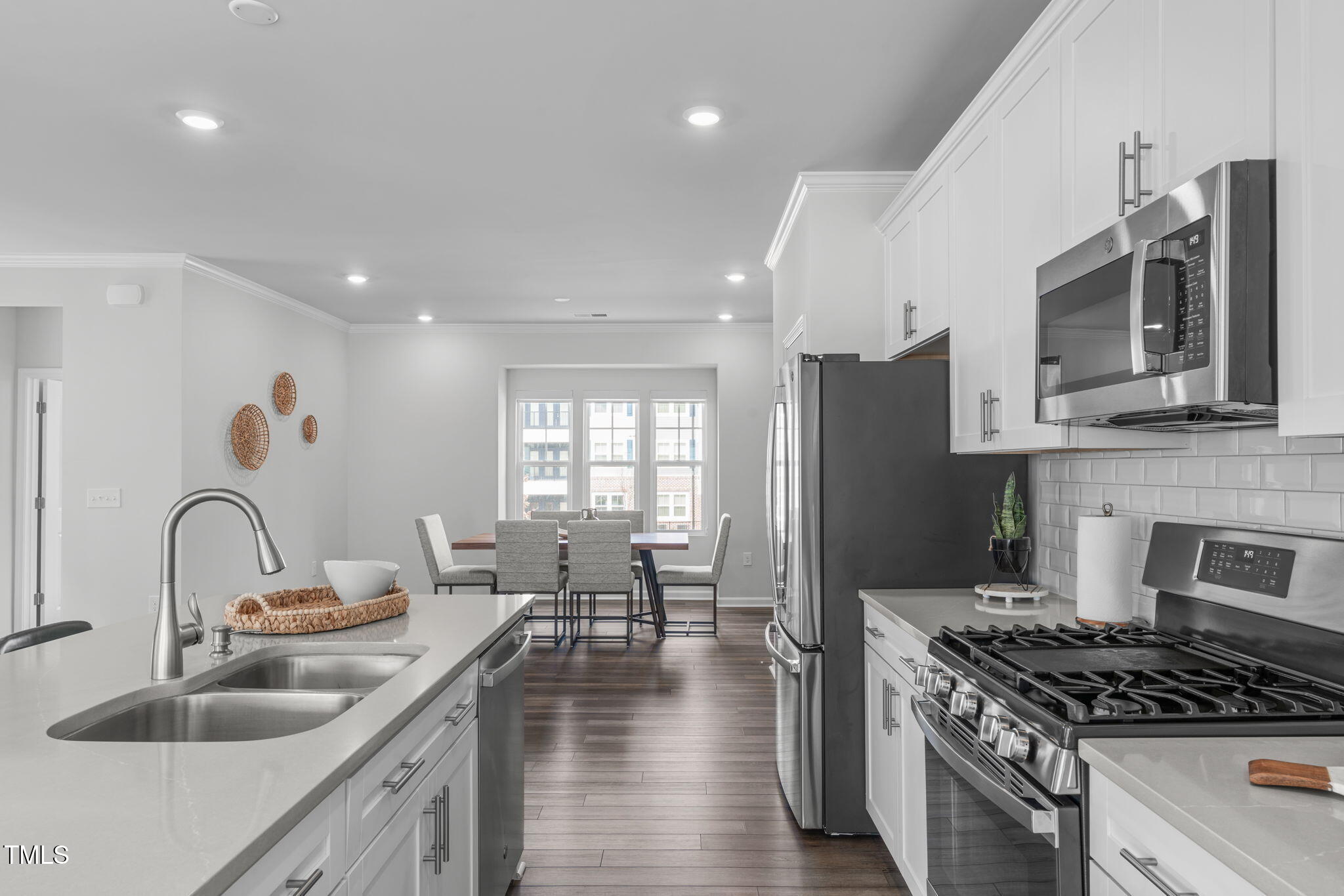 Immaculate End-Unit Townhome in Prime Brier Creek Location! This like-new, end-unit 'Colton' floor plan in Brier Creek is less than two years old and in immaculate condition, offering a bright, open layout with thoughtful upgrades throughout. The gourmet kitchen is a standout, featuring gorgeous 42'' cabinets, a stylish tile backsplash, quartz countertops, a large island, and a 5-burner gas cooktop. Luxury vinyl plank flooring flows throughout, creating a sleek and modern feel. The end-unit location brings in abundant natural light, enhancing the home's airy ambiance. Designed for functionality and flexibility, this home includes a main-floor bedroom with a full bath, ideal for guests or a home office. Upstairs, the spacious owner's suite features an oversized walk-in closet, while the additional bedrooms offer versatility for any lifestyle. Located right behind Corners at Brier Creek, you can stroll to Harris Teeter, First Watch, Showmars, and more. Wake County schools. Refrigerator, washer, and dryer convey, making this townhome truly move-in ready!