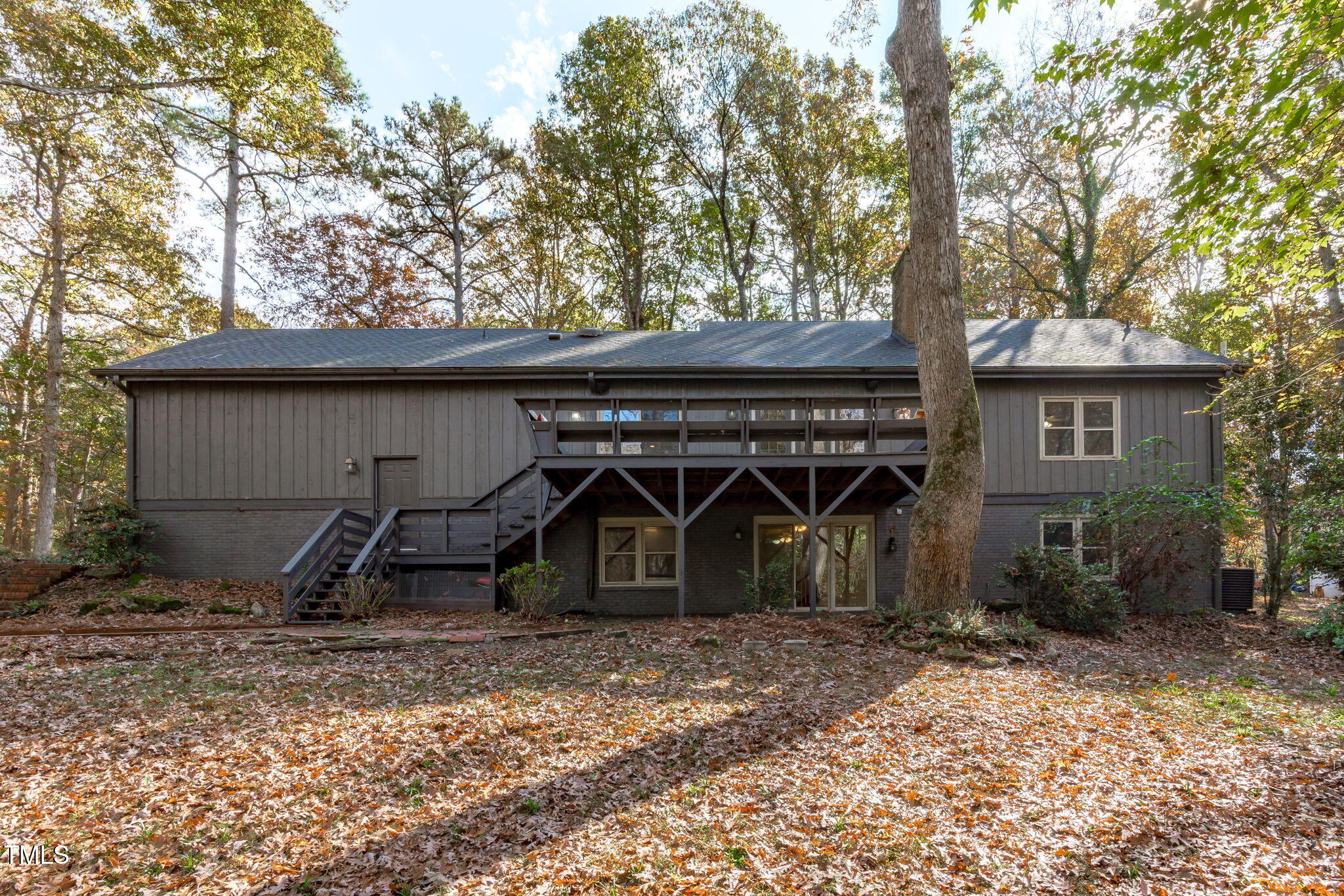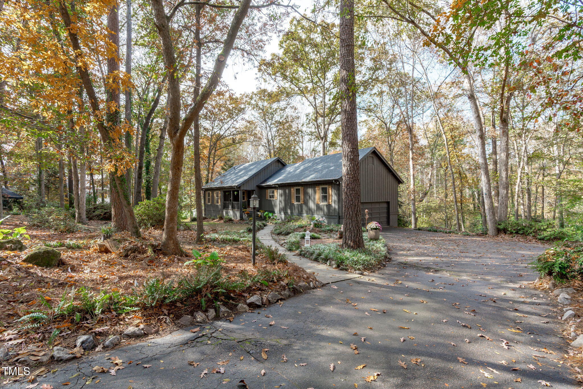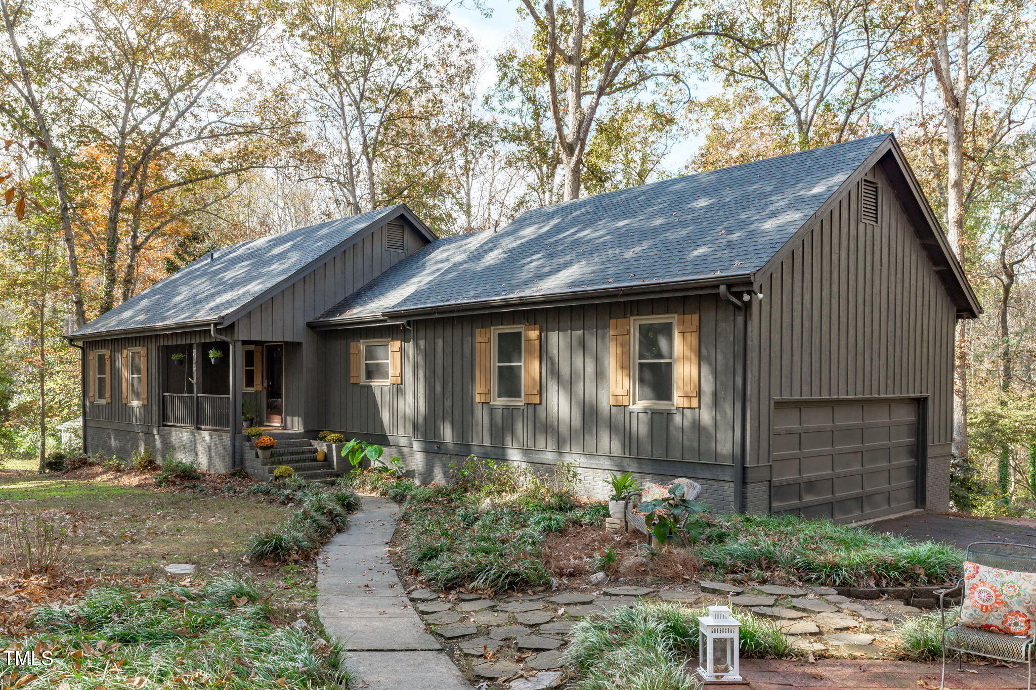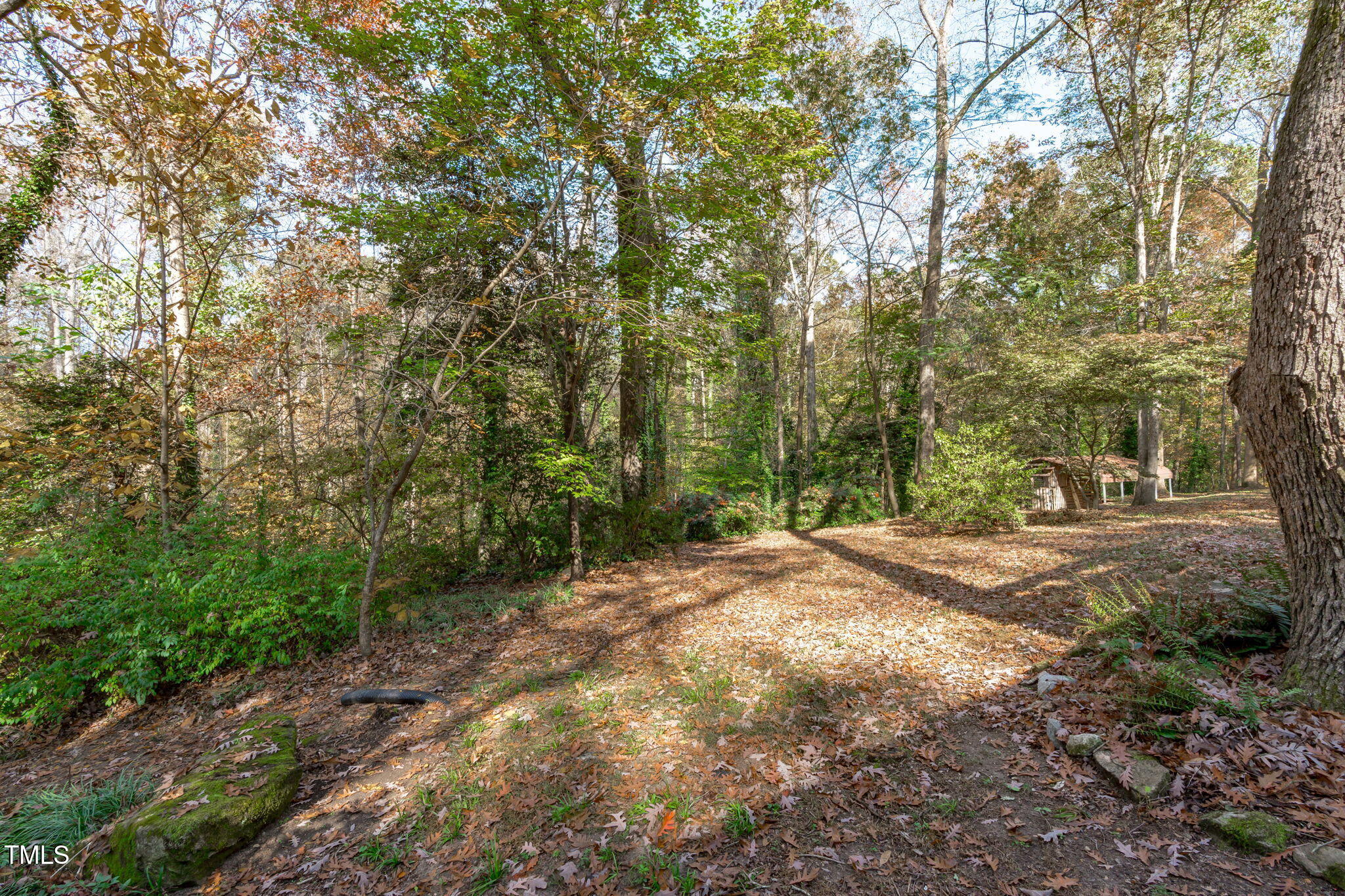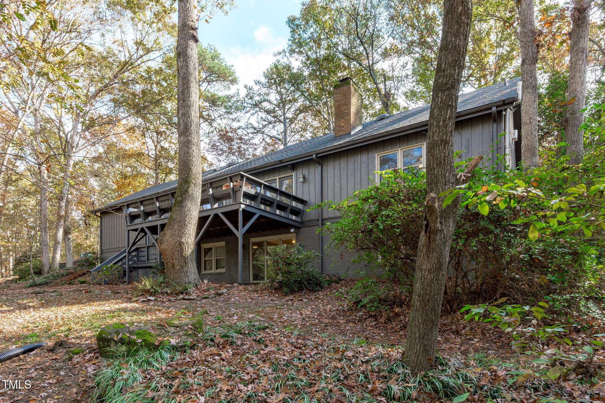 Tucked away on a tranquil 1.38-acre wooded lot backing to a peaceful creek, this secluded home seamlessly combines rustic charm with modern comforts, offering abundant peace, privacy, and seclusion outside city limits. Surrounded by mature trees, the home boasts 4 bedrooms, including two on the main floor with a convenient Jack-and-Jill style bathroom, providing a flexible and spacious layout. Recently refinished solid hardwood floors flow throughout the main level, anchored by a cozy masonry gas log fireplace. The expansive 1,000 sqft daylight basement offers even more living space, with a second fireplace featuring a woodstove insert, a living area, a full bedroom and bath, and extensive unfinished storage. Ideal for a home office, gym, or potential in-law suite, the basement is also roughed in for additional plumbing, expanding its rental potential. Located on a quiet street perfect for biking and walking, this property includes a large 2-car garage, outdoor storage/workshop, and gutter guards, all just minutes from Capital Blvd and US Hwy 64. This is a rare opportunity for private, serene living with easy access to major conveniences!