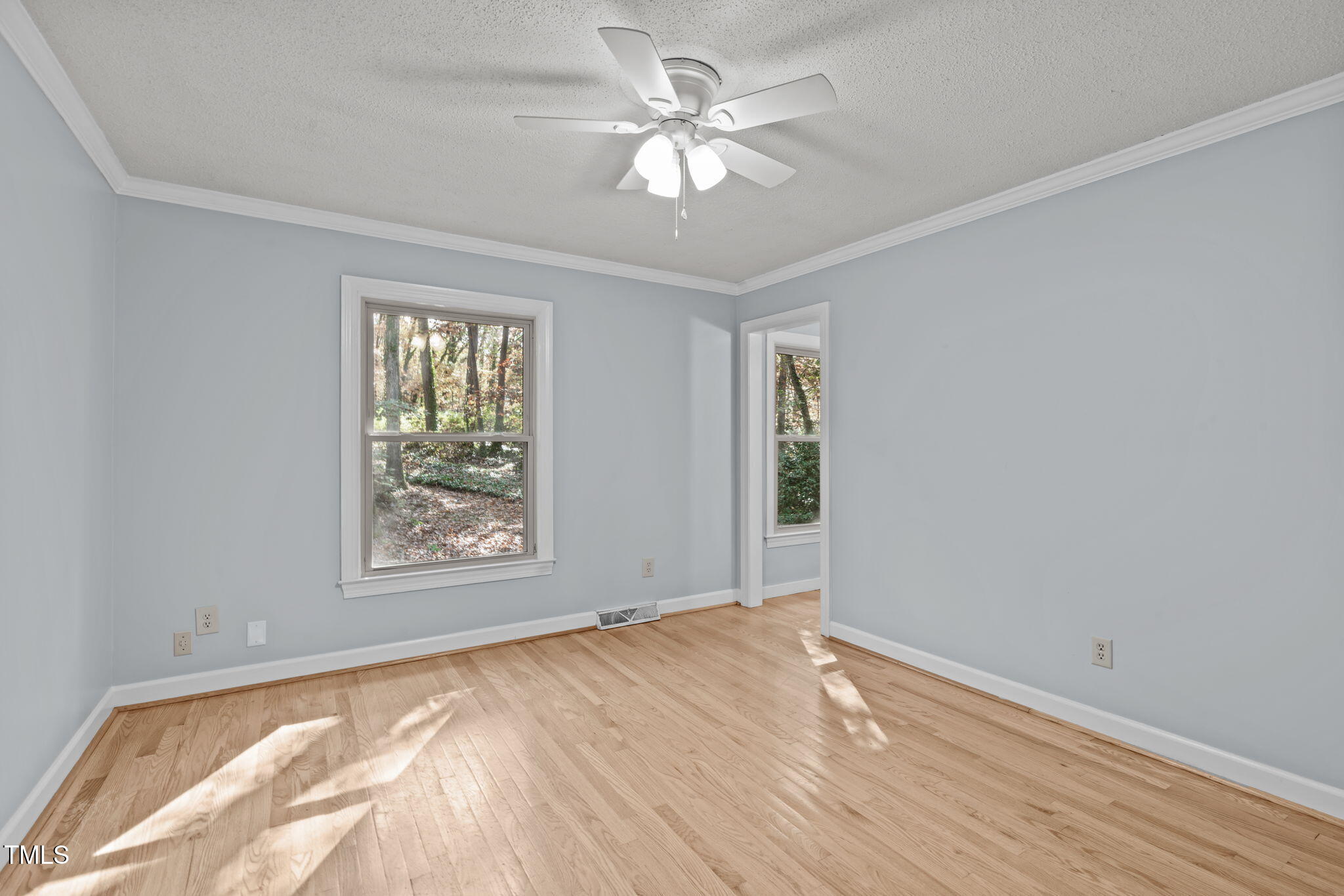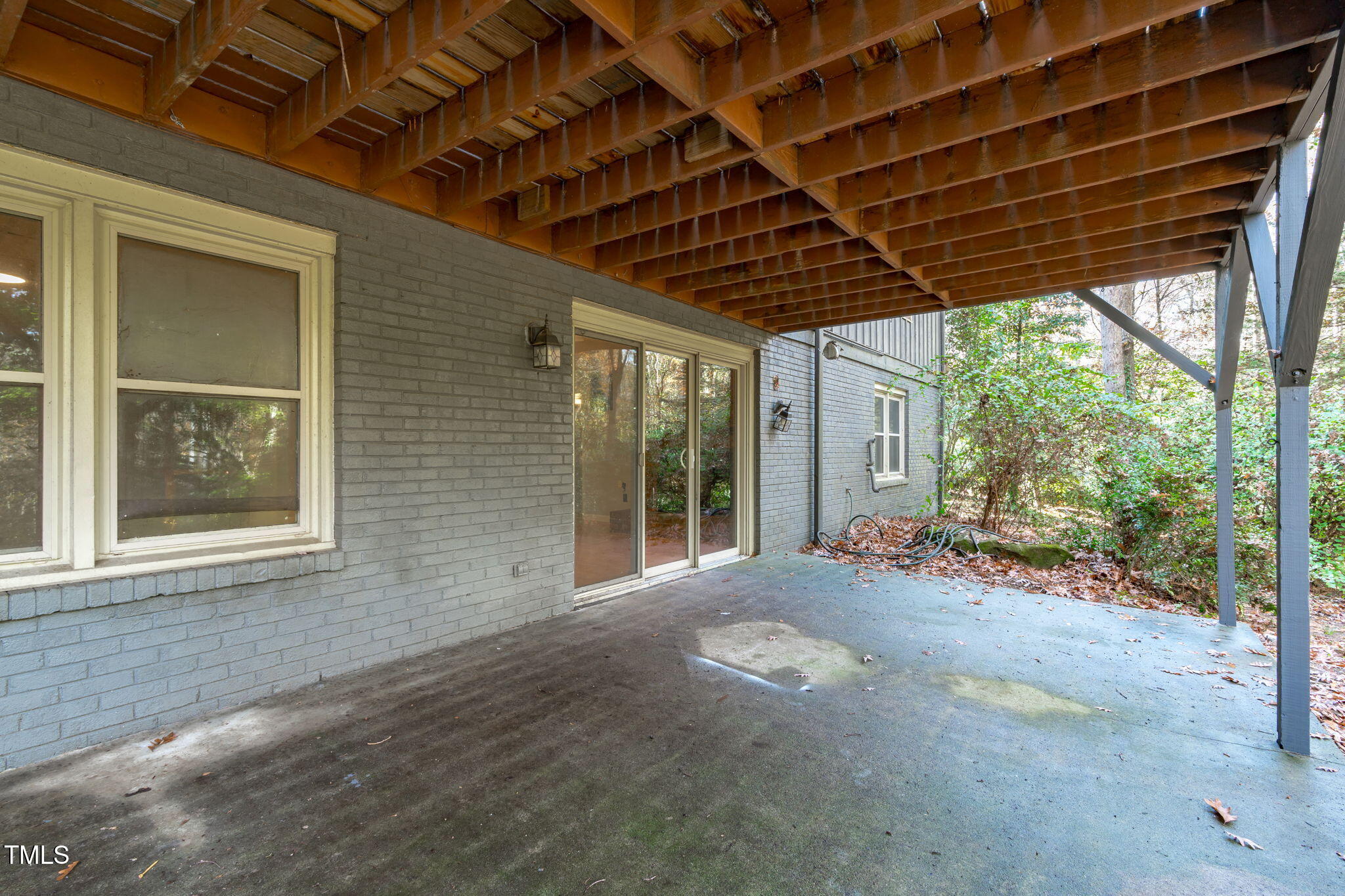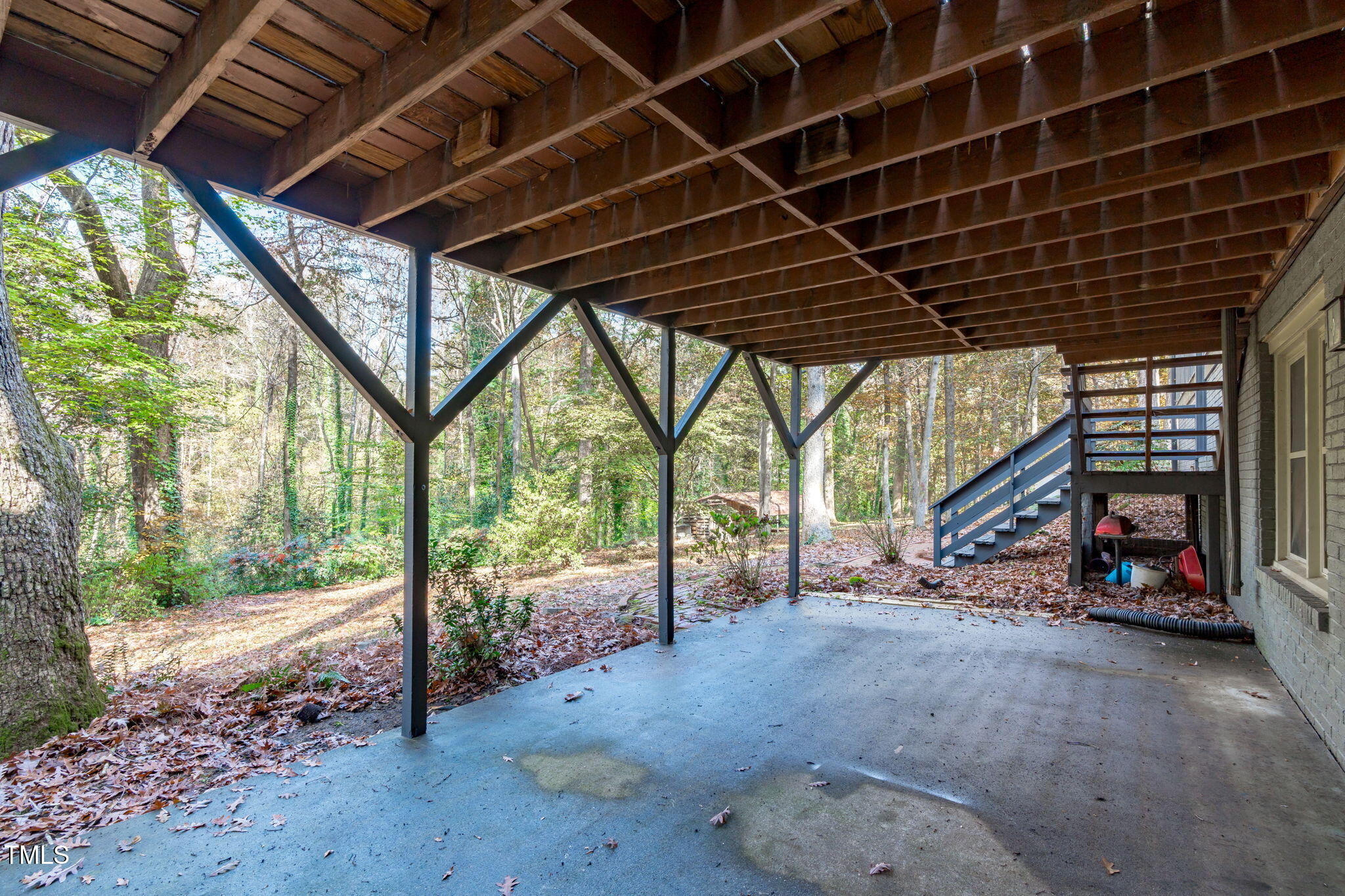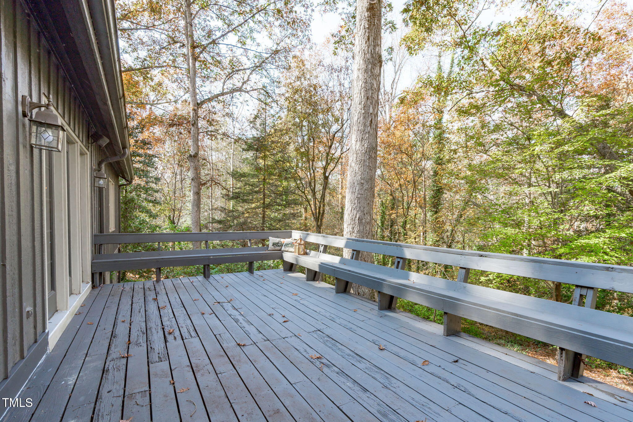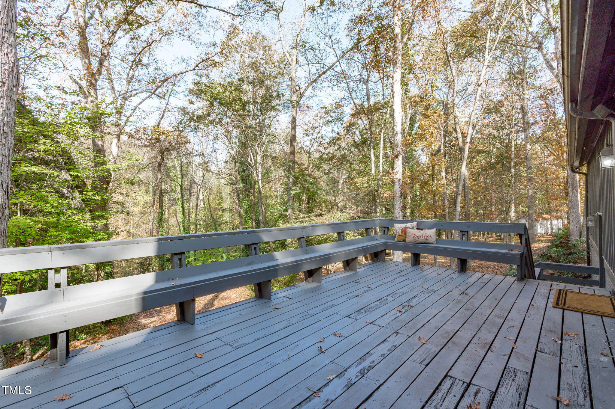 Tucked away on a tranquil 1.38-acre wooded lot backing to a peaceful creek, this secluded home seamlessly combines rustic charm with modern comforts, offering abundant peace, privacy, and seclusion outside city limits. Surrounded by mature trees, the home boasts 4 bedrooms, including two on the main floor with a convenient Jack-and-Jill style bathroom, providing a flexible and spacious layout. Recently refinished solid hardwood floors flow throughout the main level, anchored by a cozy masonry gas log fireplace. The expansive 1,000 sqft daylight basement offers even more living space, with a second fireplace featuring a woodstove insert, a living area, a full bedroom and bath, and extensive unfinished storage. Ideal for a home office, gym, or potential in-law suite, the basement is also roughed in for additional plumbing, expanding its rental potential. Located on a quiet street perfect for biking and walking, this property includes a large 2-car garage, outdoor storage/workshop, and gutter guards, all just minutes from Capital Blvd and US Hwy 64. This is a rare opportunity for private, serene living with easy access to major conveniences!