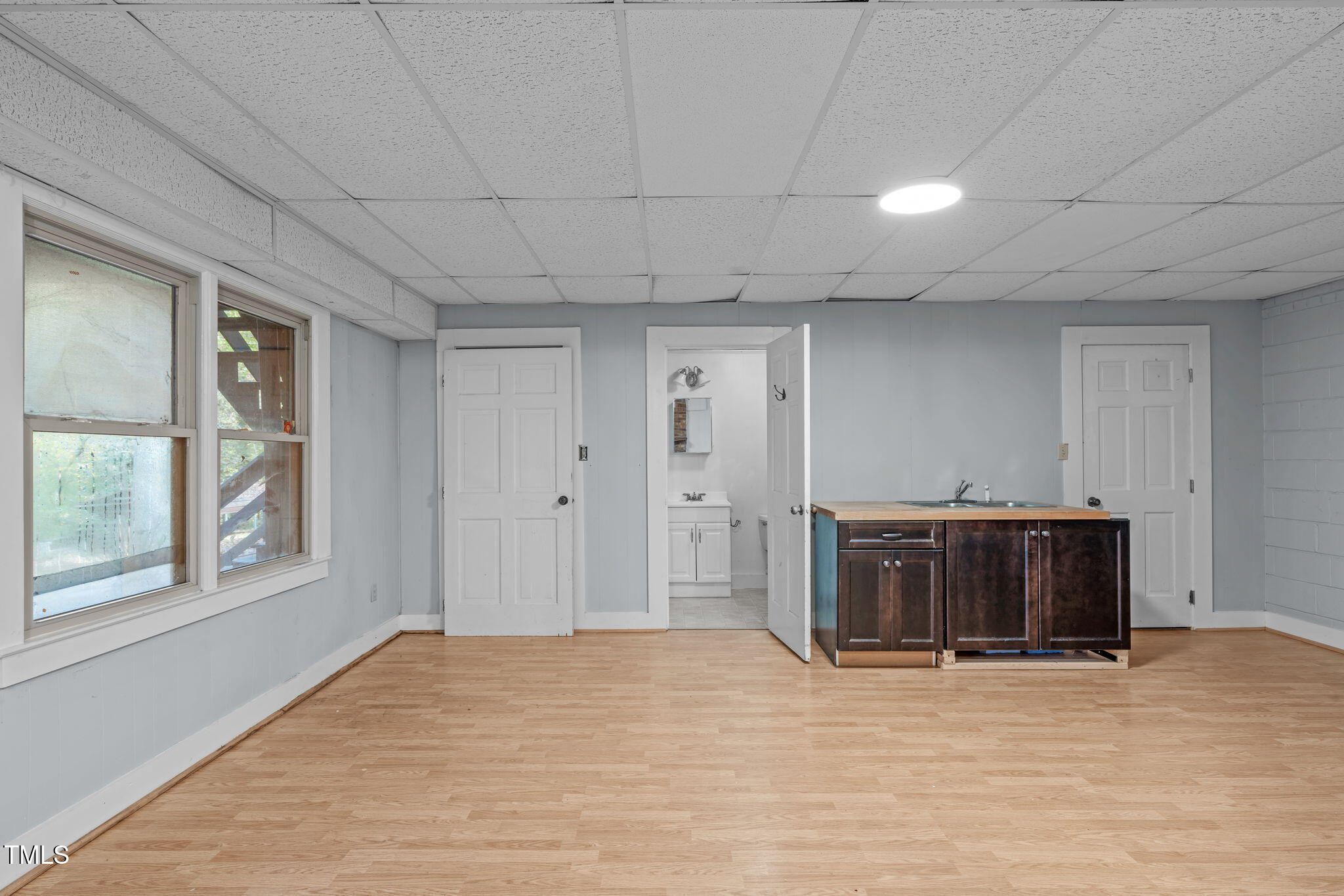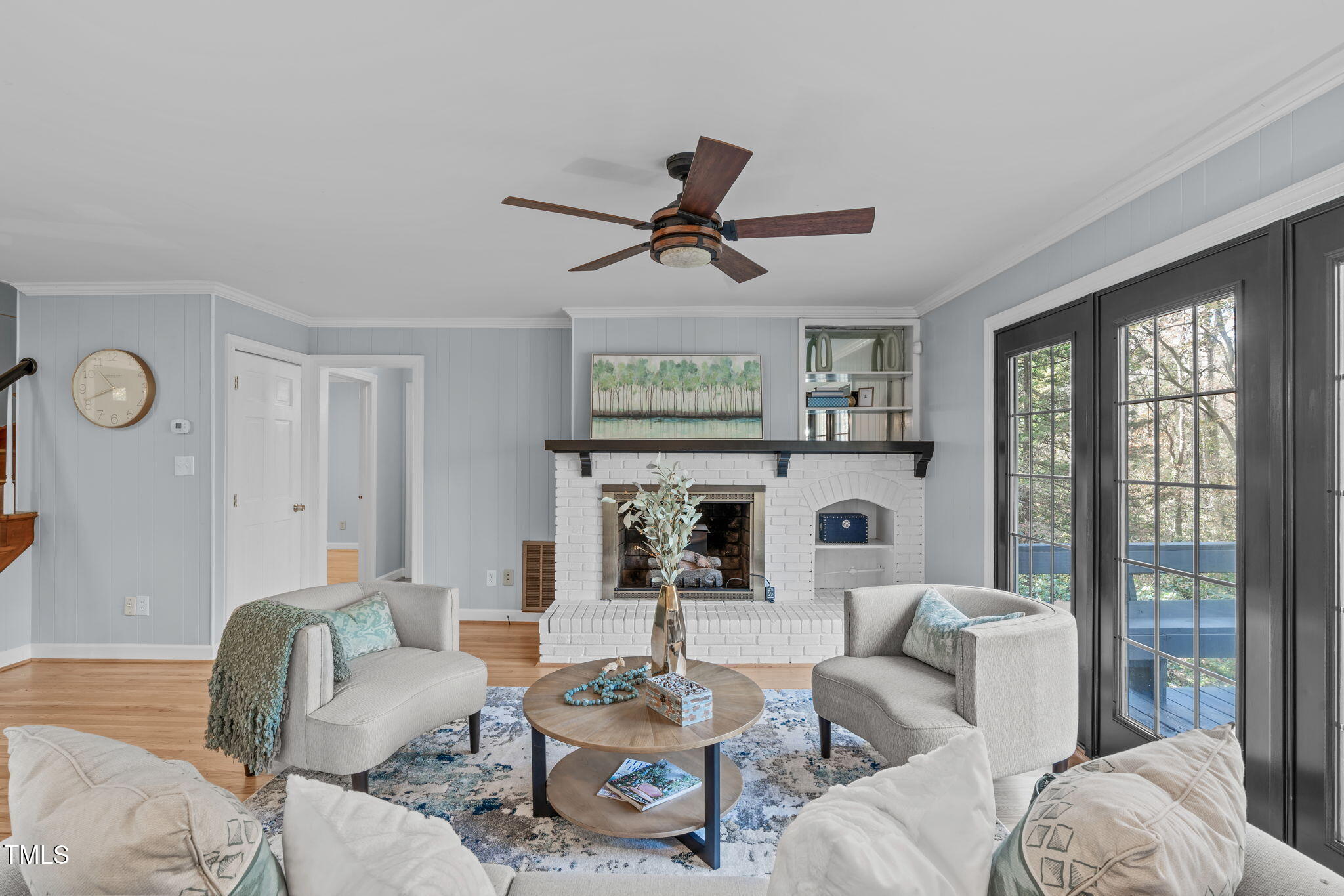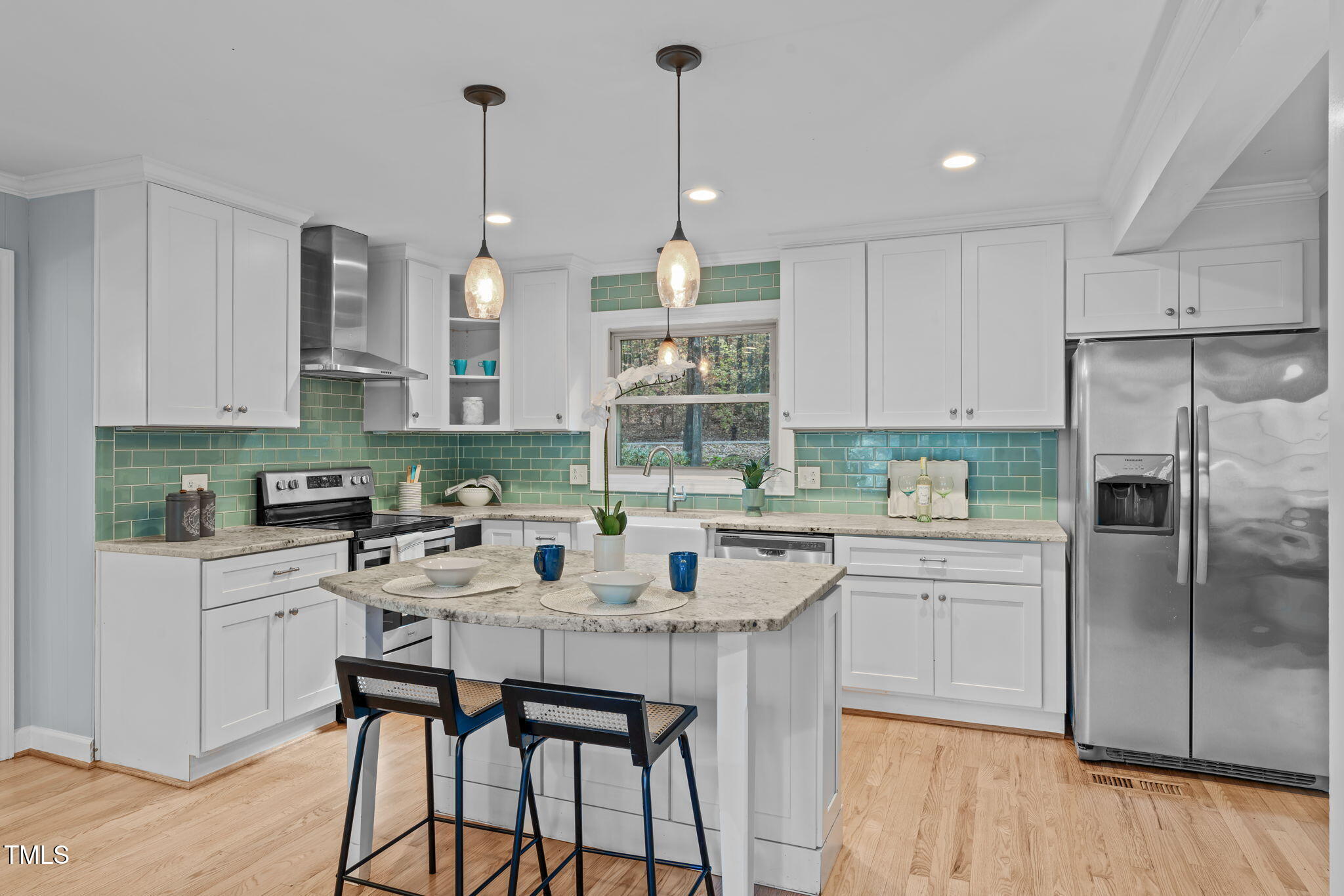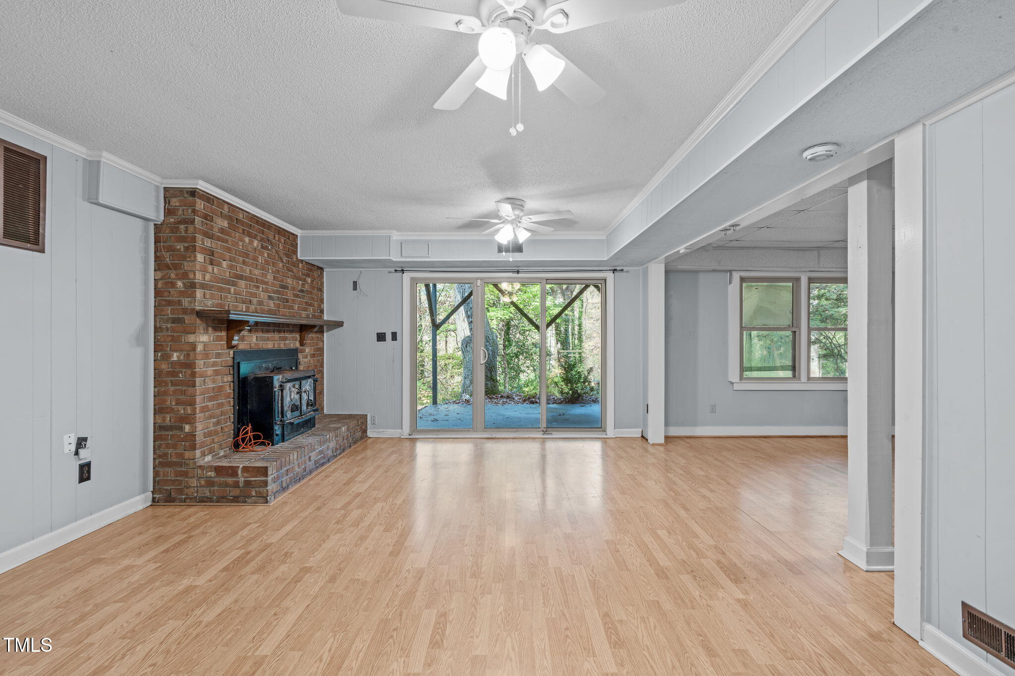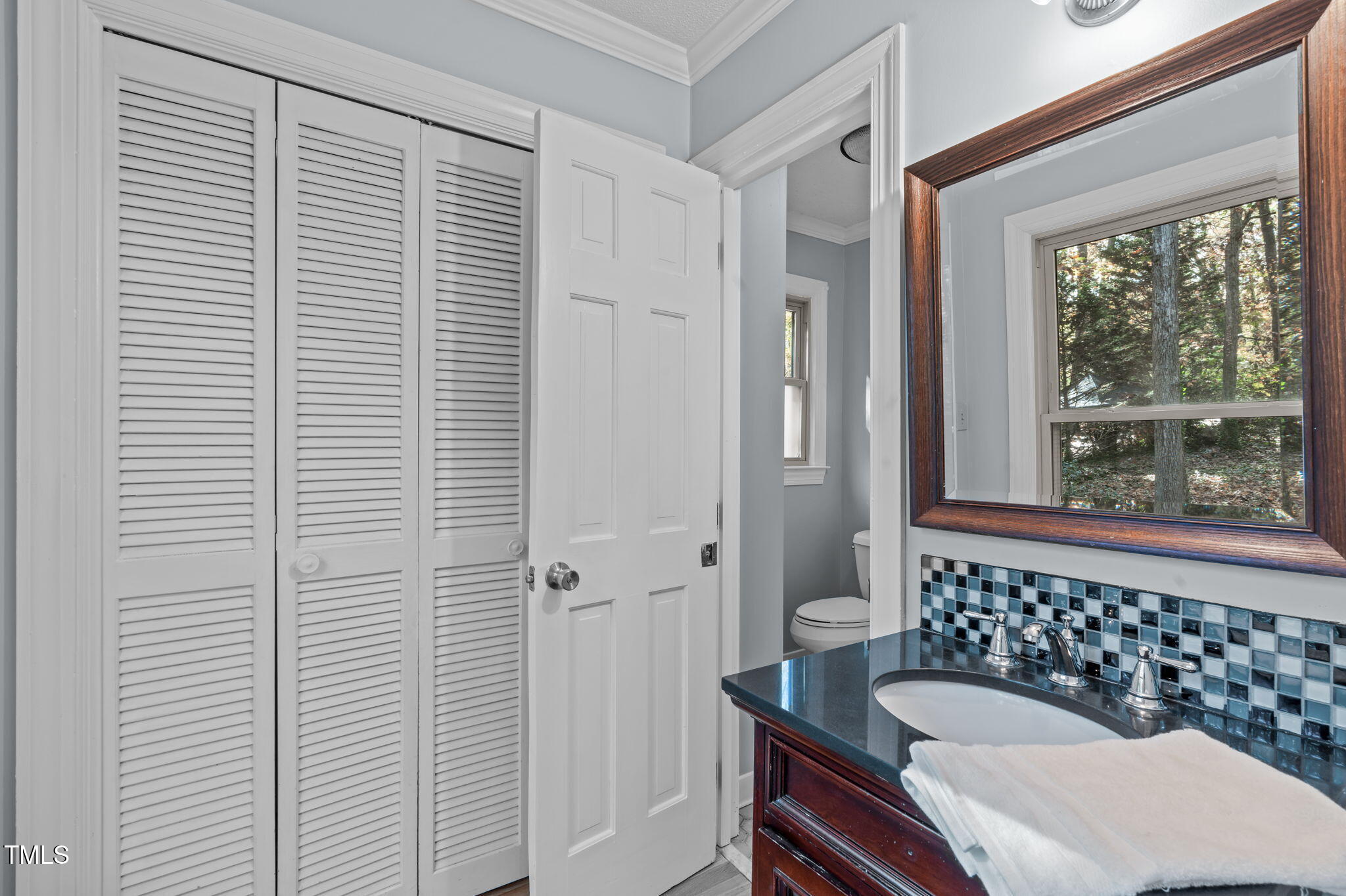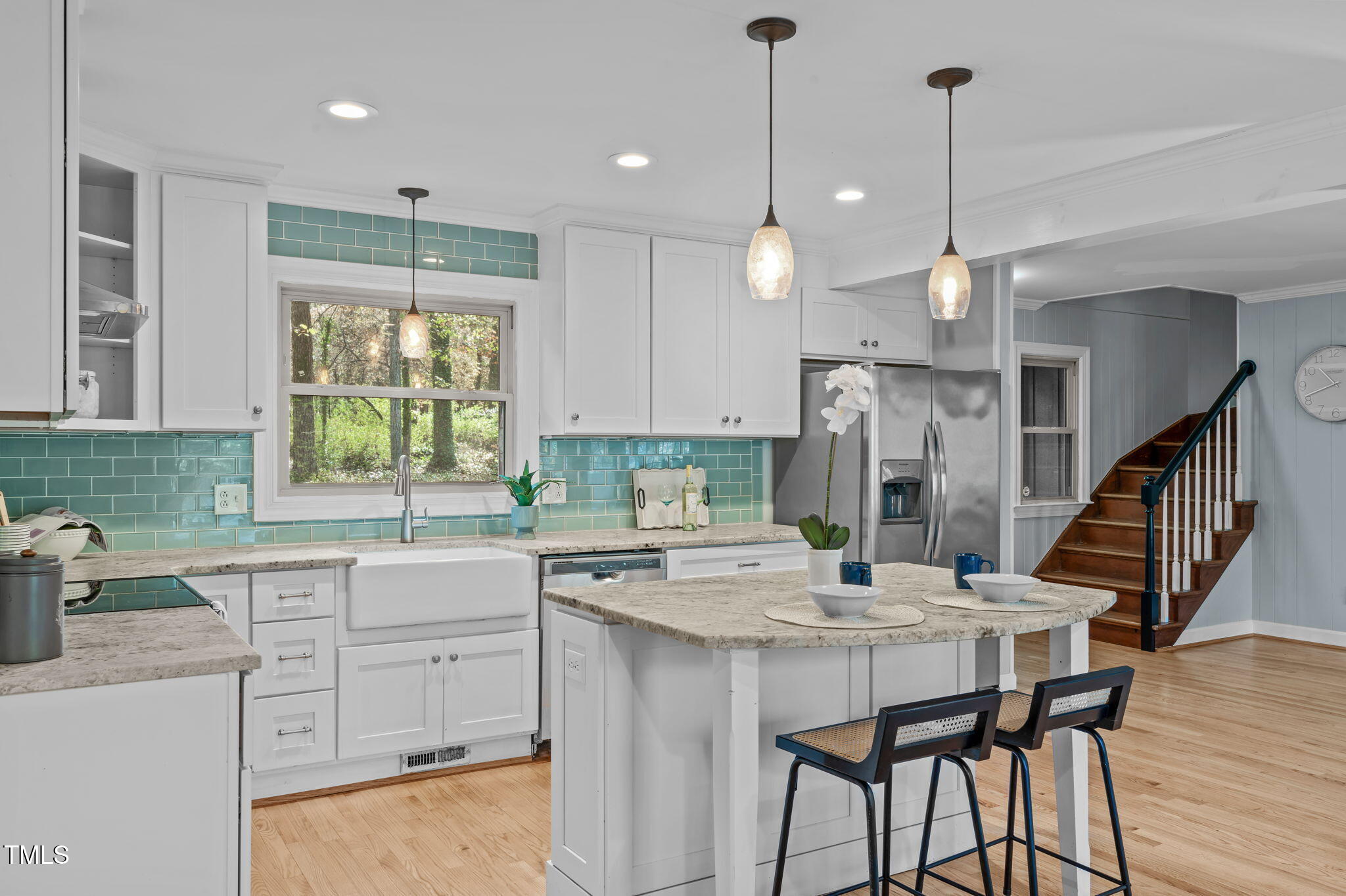 Tucked away on a tranquil 1.38-acre wooded lot backing to a peaceful creek, this secluded home seamlessly combines rustic charm with modern comforts, offering abundant peace, privacy, and seclusion outside city limits. Surrounded by mature trees, the home boasts 4 bedrooms, including two on the main floor with a convenient Jack-and-Jill style bathroom, providing a flexible and spacious layout. Recently refinished solid hardwood floors flow throughout the main level, anchored by a cozy masonry gas log fireplace. The expansive 1,000 sqft daylight basement offers even more living space, with a second fireplace featuring a woodstove insert, a living area, a full bedroom and bath, and extensive unfinished storage. Ideal for a home office, gym, or potential in-law suite, the basement is also roughed in for additional plumbing, expanding its rental potential. Located on a quiet street perfect for biking and walking, this property includes a large 2-car garage, outdoor storage/workshop, and gutter guards, all just minutes from Capital Blvd and US Hwy 64. This is a rare opportunity for private, serene living with easy access to major conveniences!