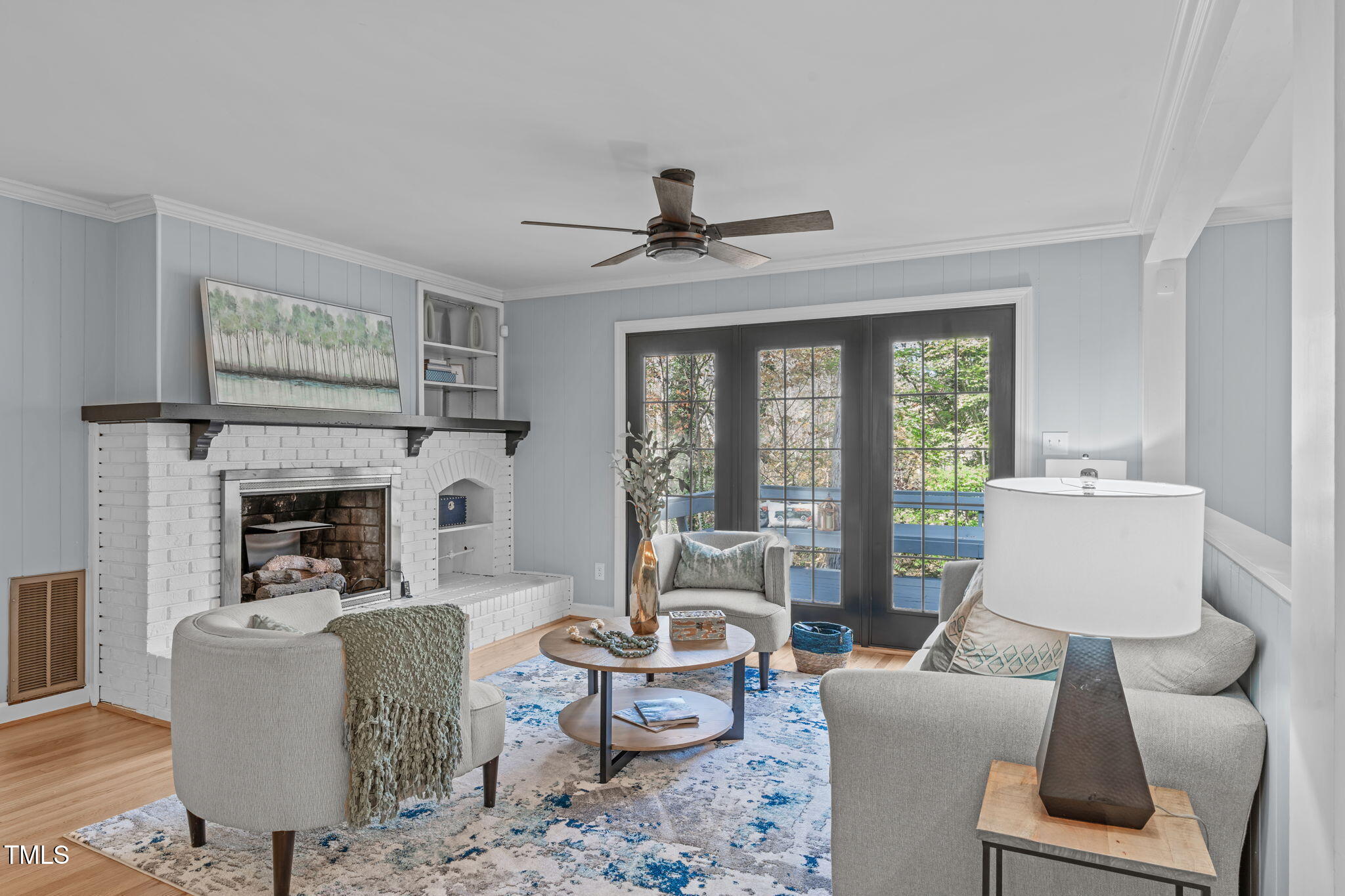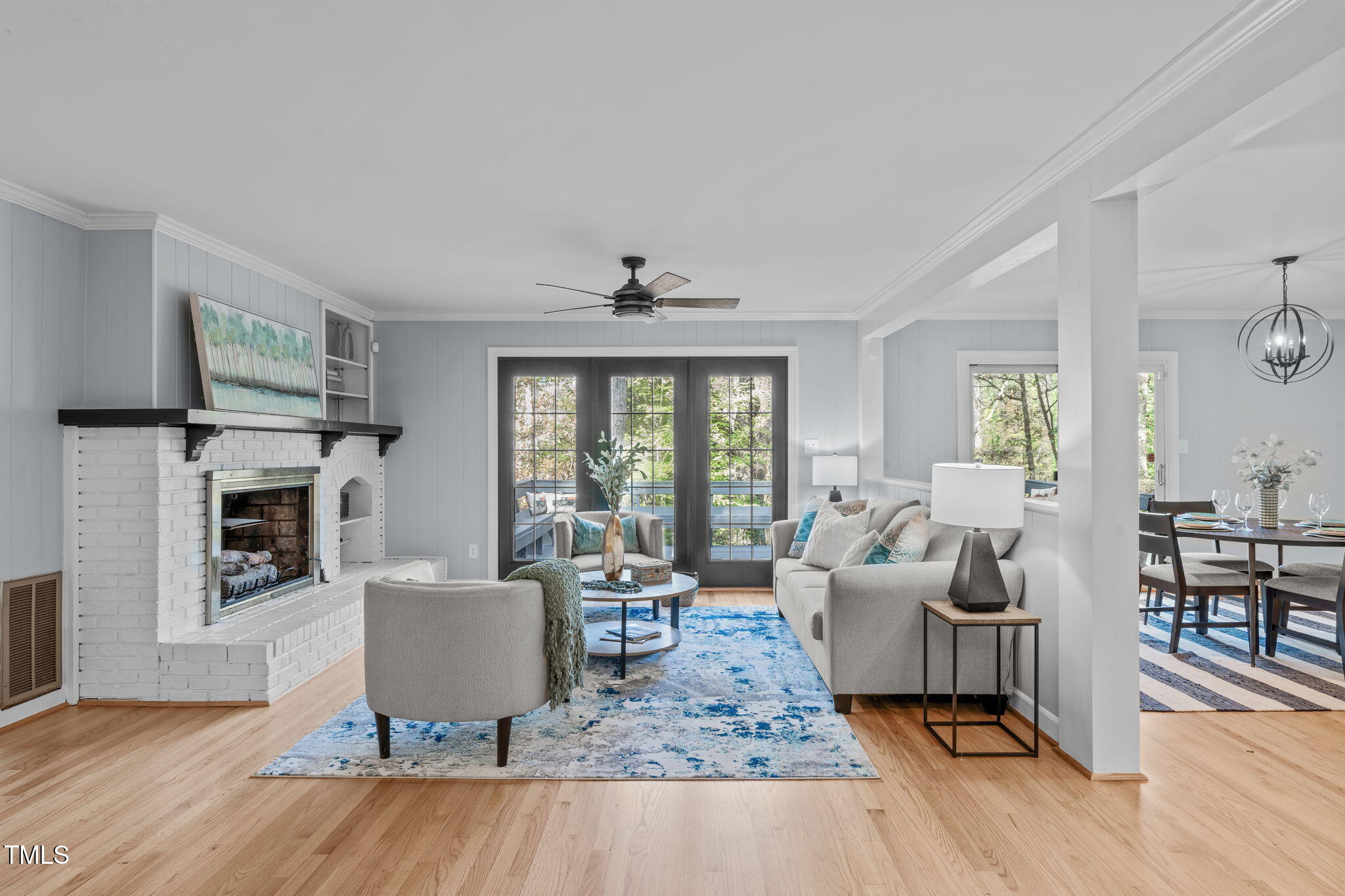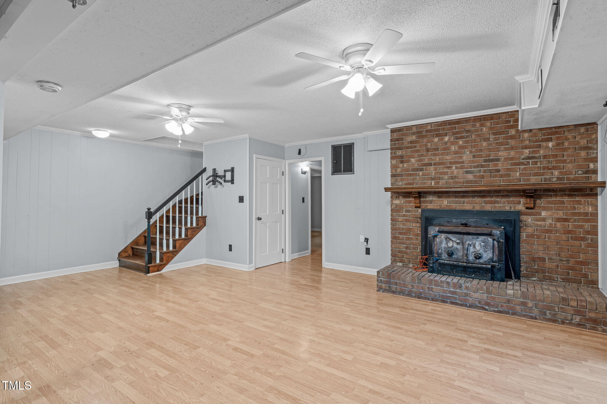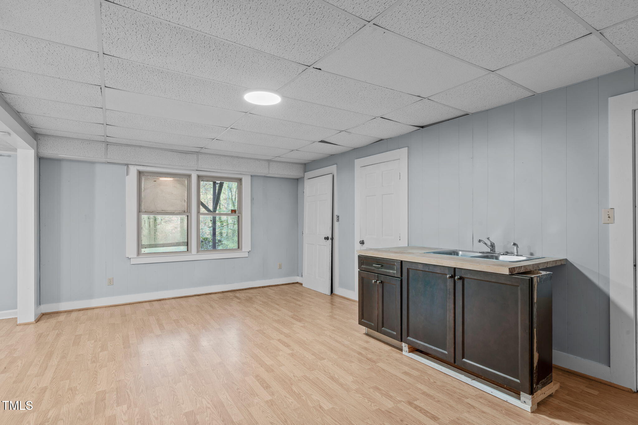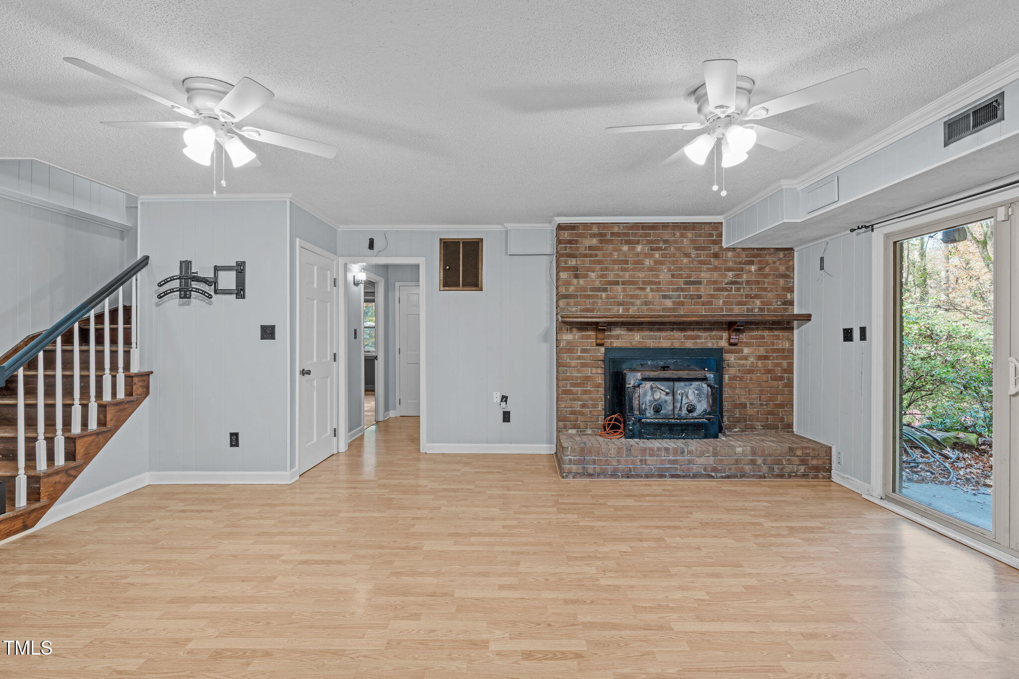 Tucked away on a tranquil 1.38-acre wooded lot backing to a peaceful creek, this secluded home seamlessly combines rustic charm with modern comforts, offering abundant peace, privacy, and seclusion outside city limits. Surrounded by mature trees, the home boasts 4 bedrooms, including two on the main floor with a convenient Jack-and-Jill style bathroom, providing a flexible and spacious layout. Recently refinished solid hardwood floors flow throughout the main level, anchored by a cozy masonry gas log fireplace. The expansive 1,000 sqft daylight basement offers even more living space, with a second fireplace featuring a woodstove insert, a living area, a full bedroom and bath, and extensive unfinished storage. Ideal for a home office, gym, or potential in-law suite, the basement is also roughed in for additional plumbing, expanding its rental potential. Located on a quiet street perfect for biking and walking, this property includes a large 2-car garage, outdoor storage/workshop, and gutter guards, all just minutes from Capital Blvd and US Hwy 64. This is a rare opportunity for private, serene living with easy access to major conveniences!