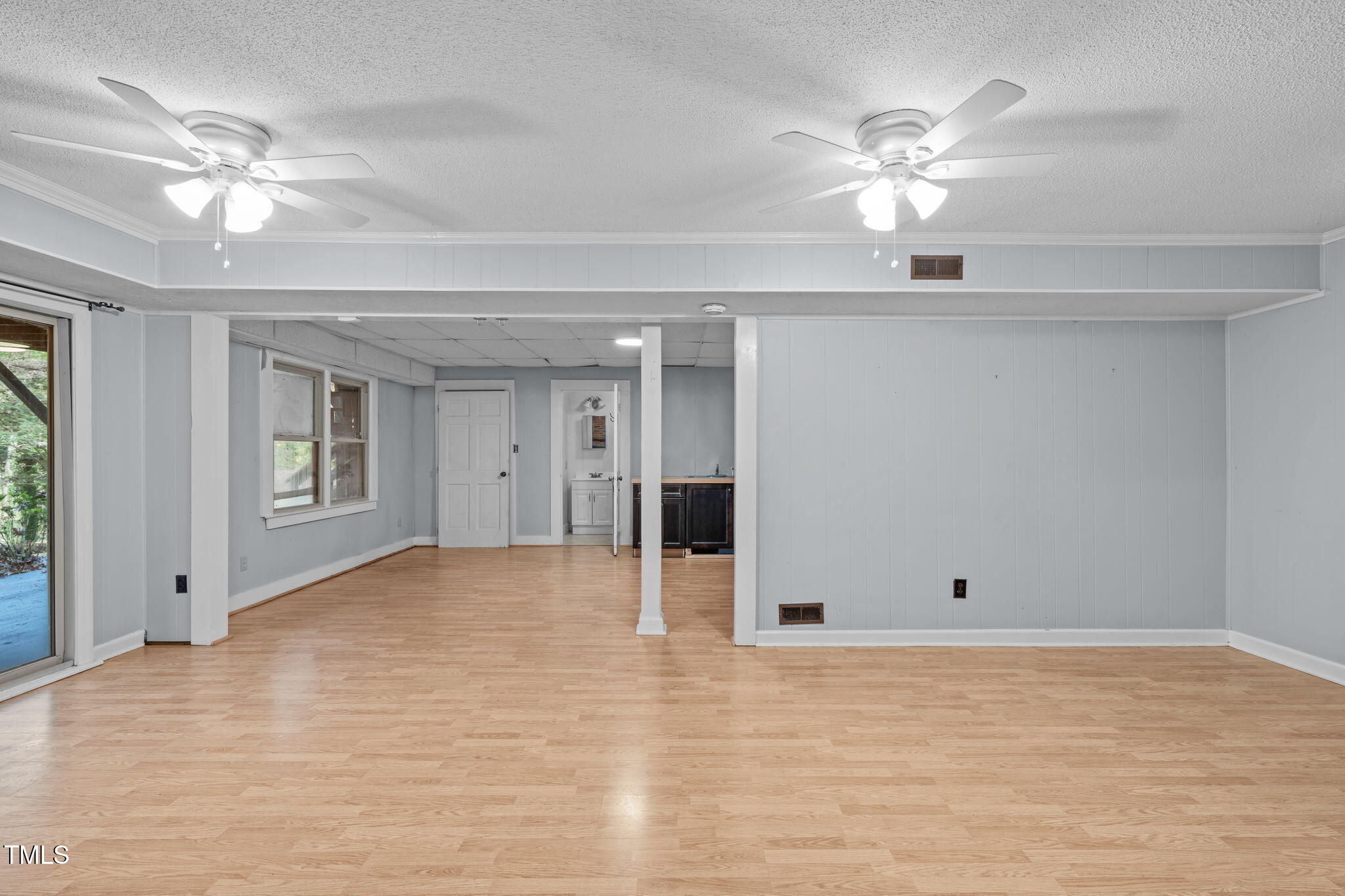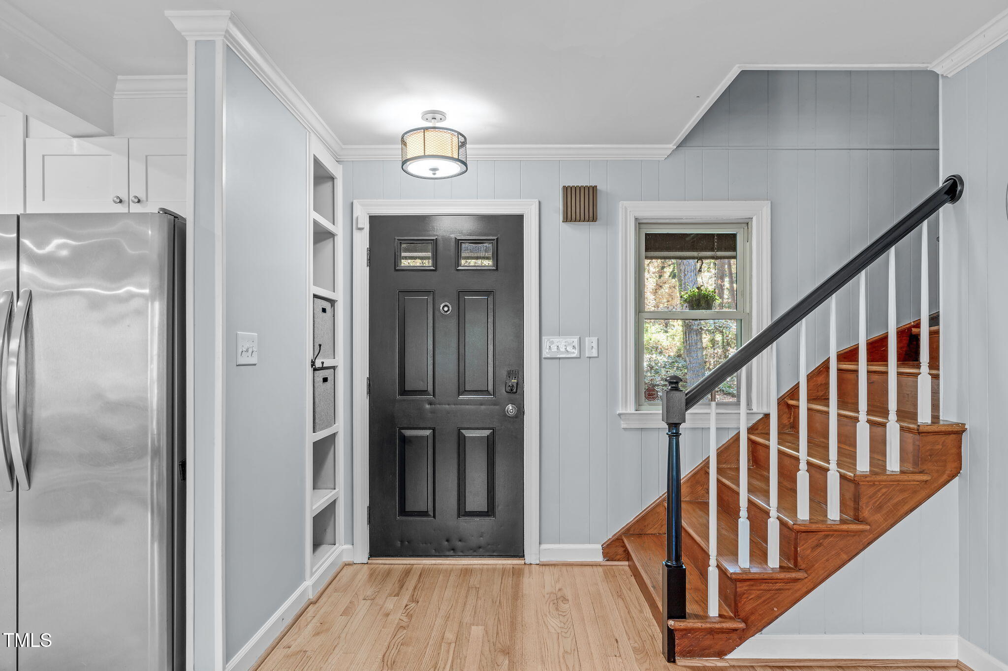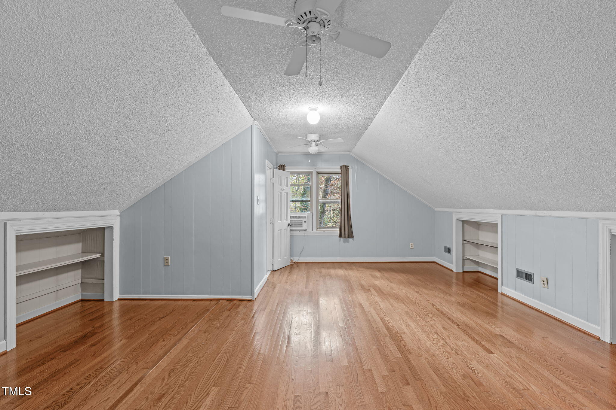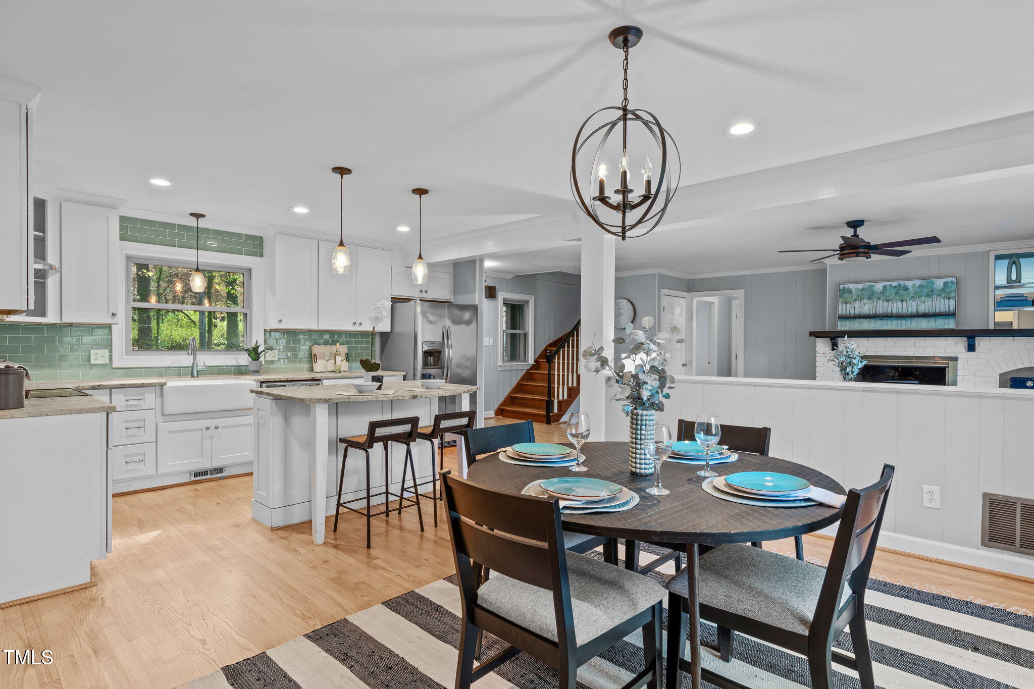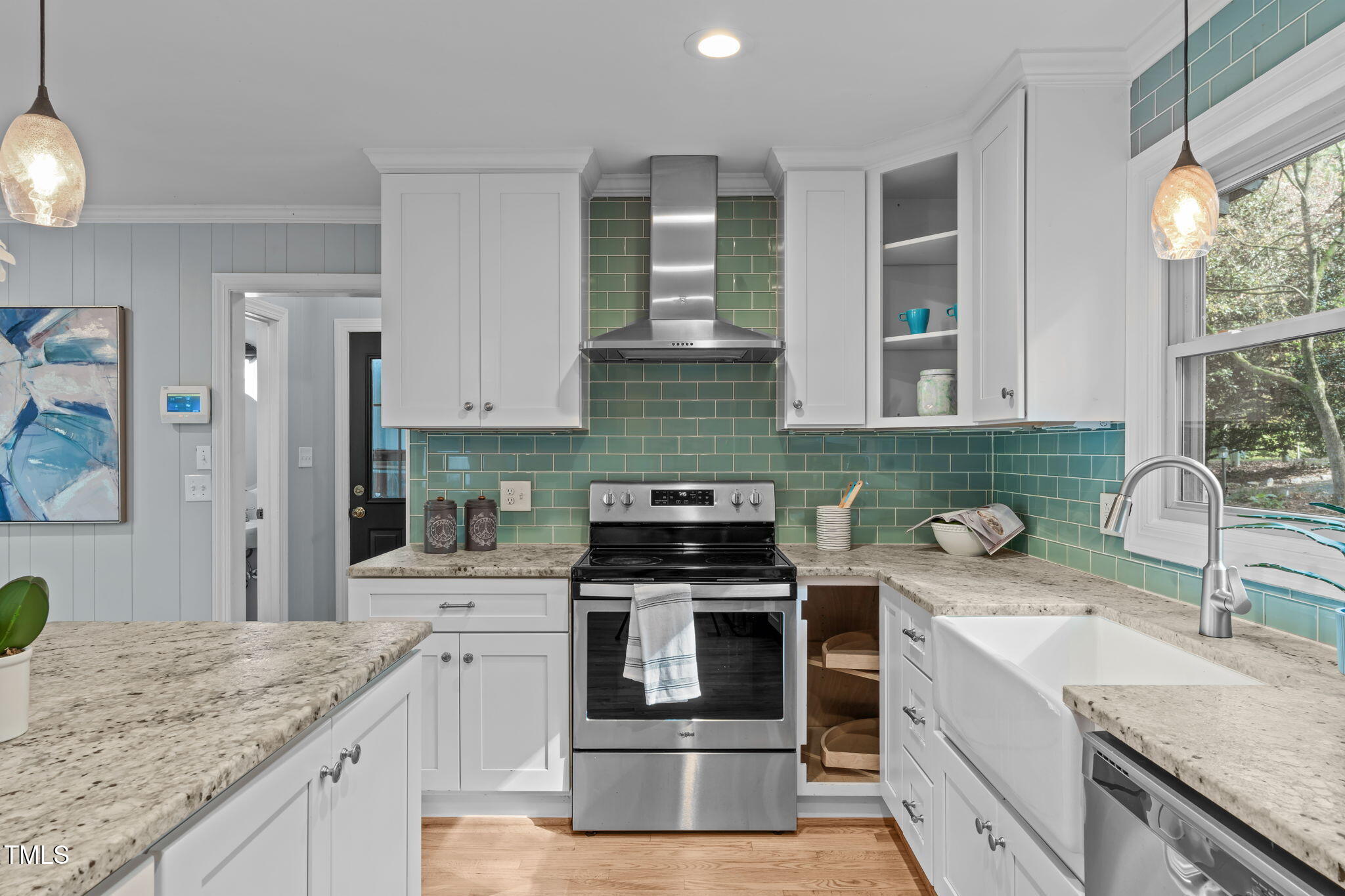 Tucked away on a tranquil 1.38-acre wooded lot backing to a peaceful creek, this secluded home seamlessly combines rustic charm with modern comforts, offering abundant peace, privacy, and seclusion outside city limits. Surrounded by mature trees, the home boasts 4 bedrooms, including two on the main floor with a convenient Jack-and-Jill style bathroom, providing a flexible and spacious layout. Recently refinished solid hardwood floors flow throughout the main level, anchored by a cozy masonry gas log fireplace. The expansive 1,000 sqft daylight basement offers even more living space, with a second fireplace featuring a woodstove insert, a living area, a full bedroom and bath, and extensive unfinished storage. Ideal for a home office, gym, or potential in-law suite, the basement is also roughed in for additional plumbing, expanding its rental potential. Located on a quiet street perfect for biking and walking, this property includes a large 2-car garage, outdoor storage/workshop, and gutter guards, all just minutes from Capital Blvd and US Hwy 64. This is a rare opportunity for private, serene living with easy access to major conveniences!