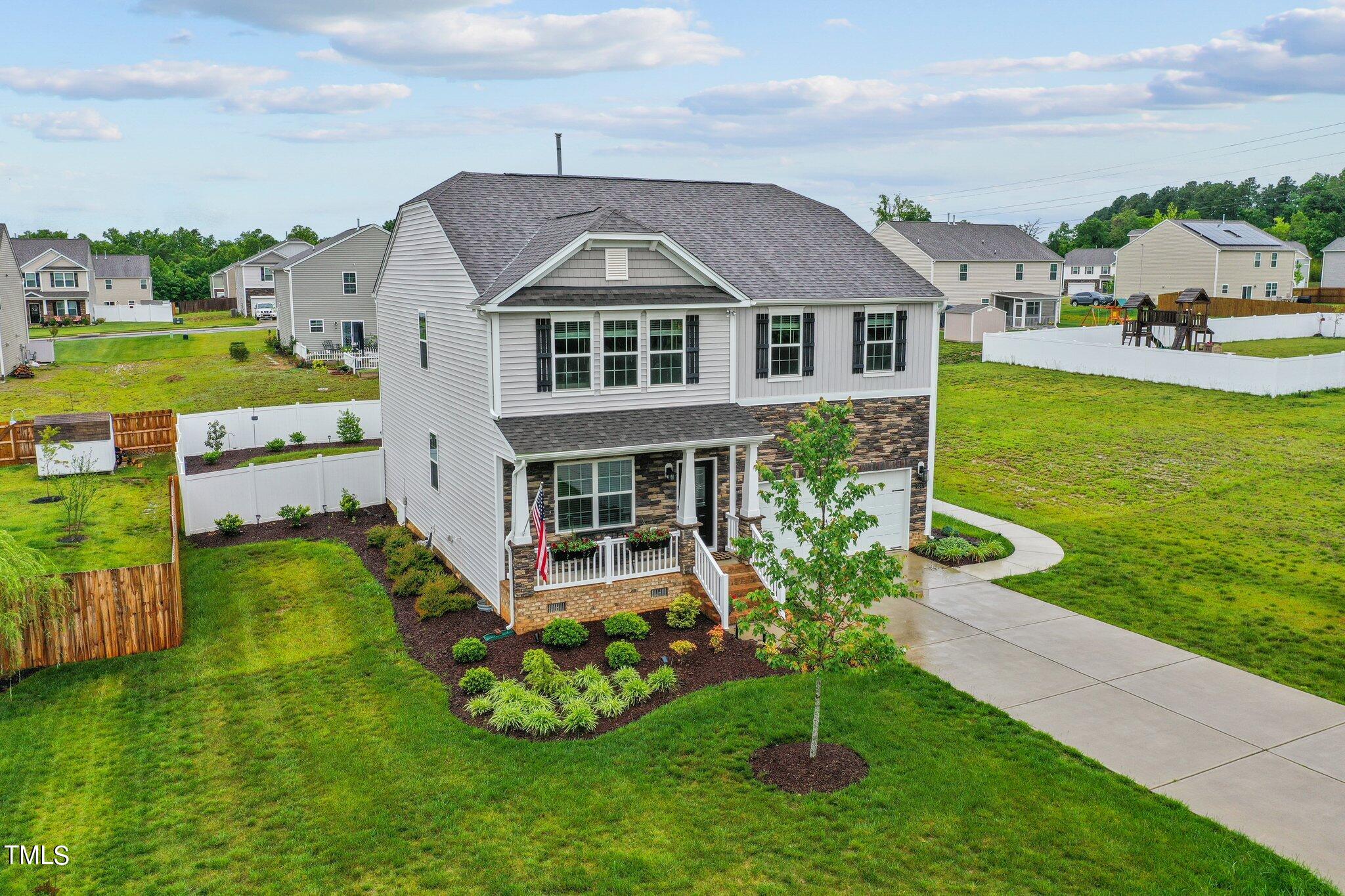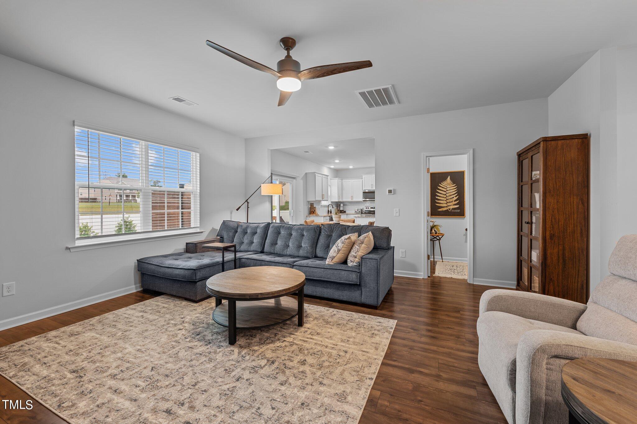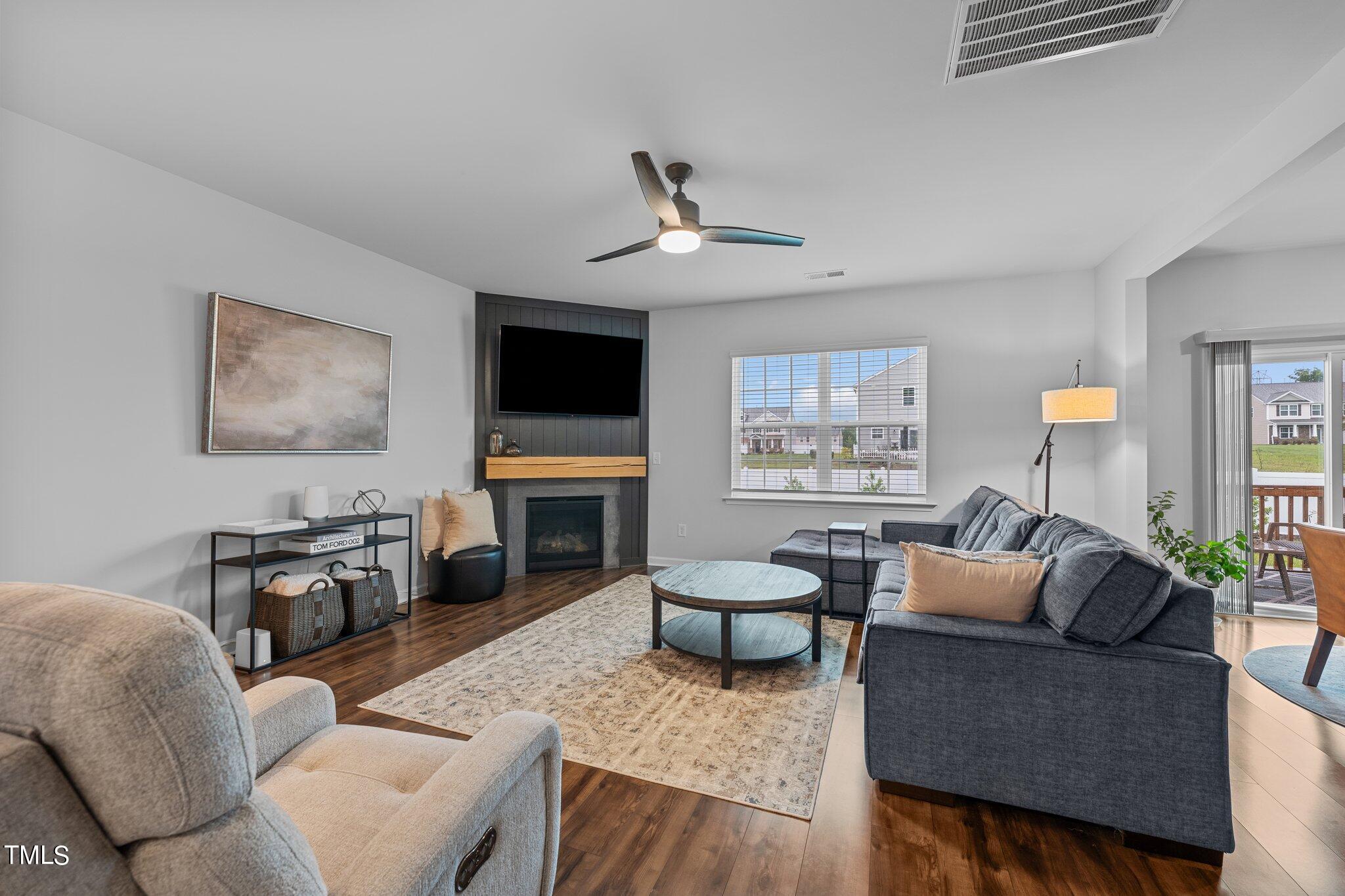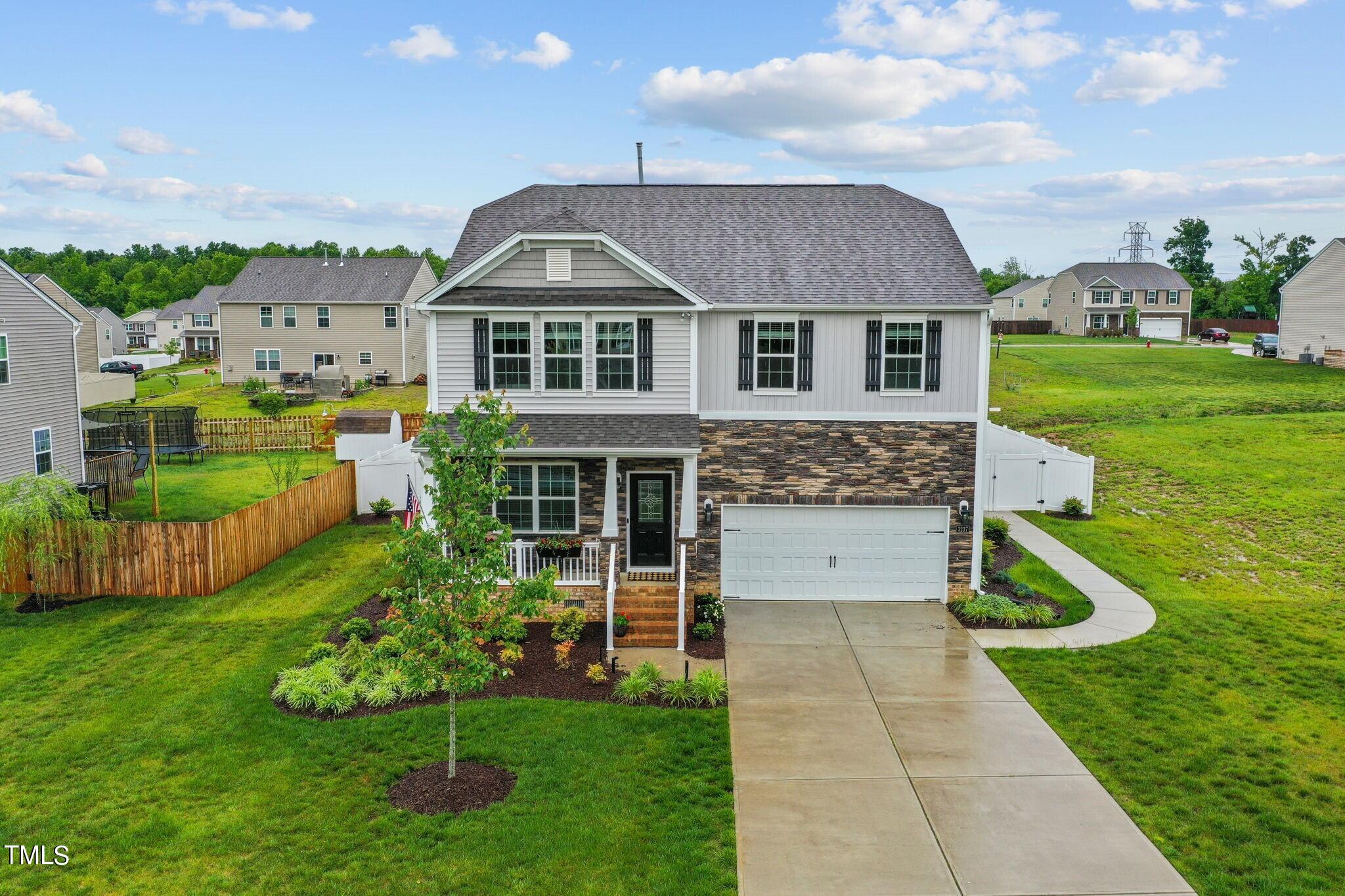 Step onto the charming covered front porch, where mornings greet you with a warm invitation to start your day. As you enter, the open-concept layout welcomes you, seamlessly blending the living room, dining room, and additional sitting room, creating a spacious yet cozy atmosphere. The focal point of the living room is the custom corner fireplace, perfect for cozying up on chilly evenings.
