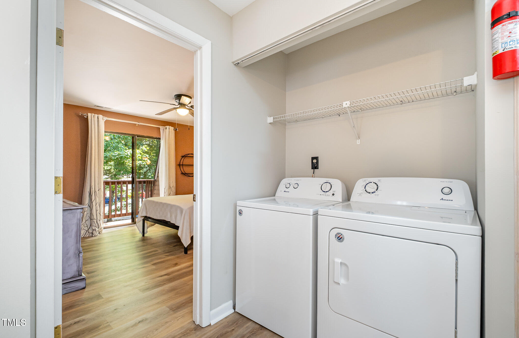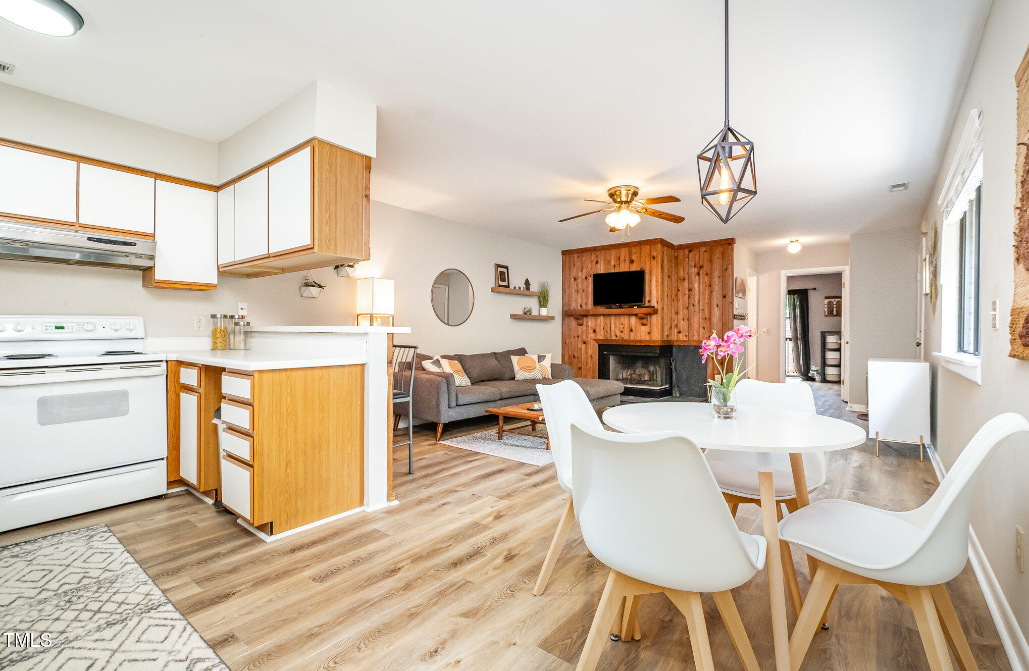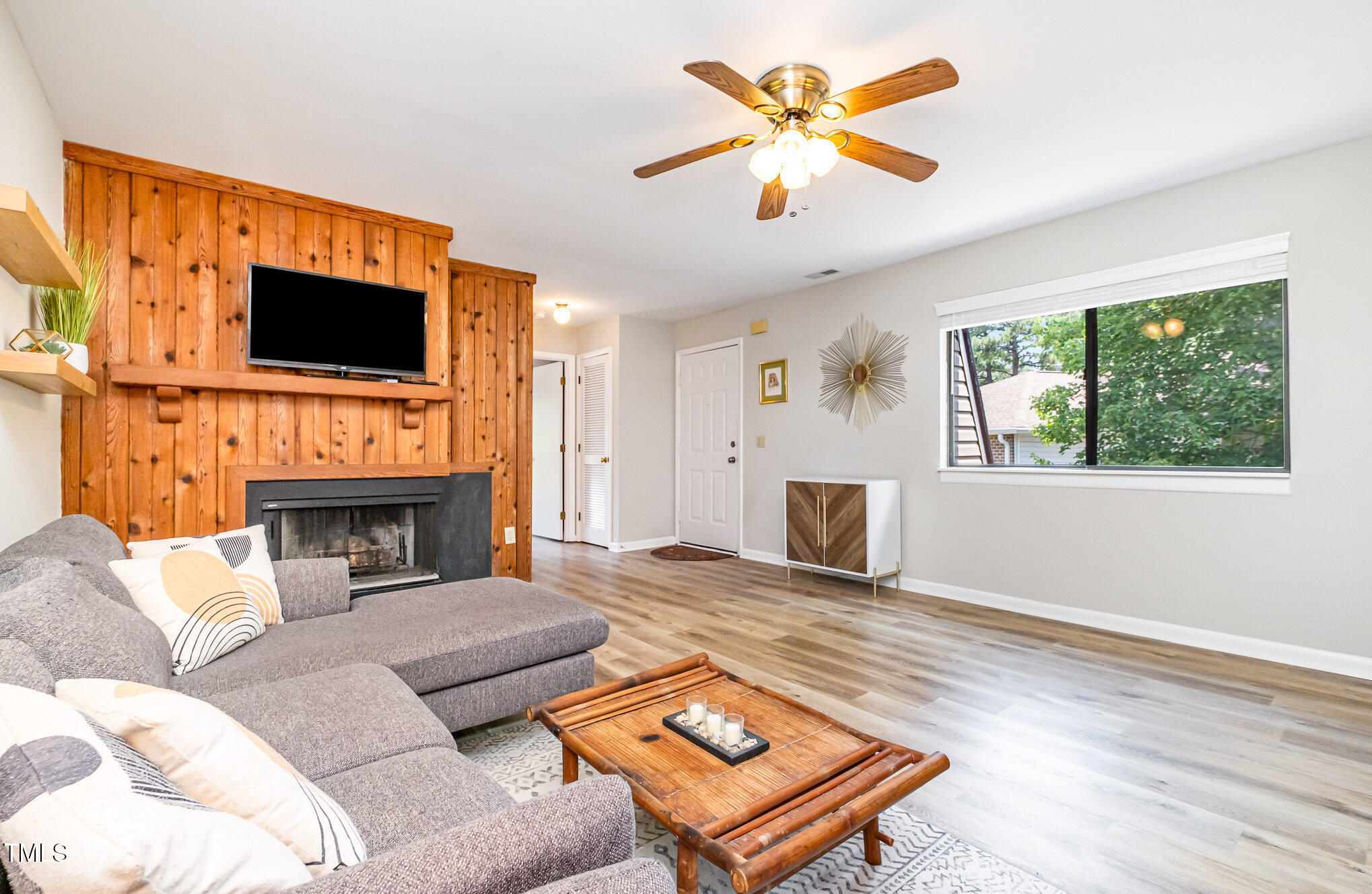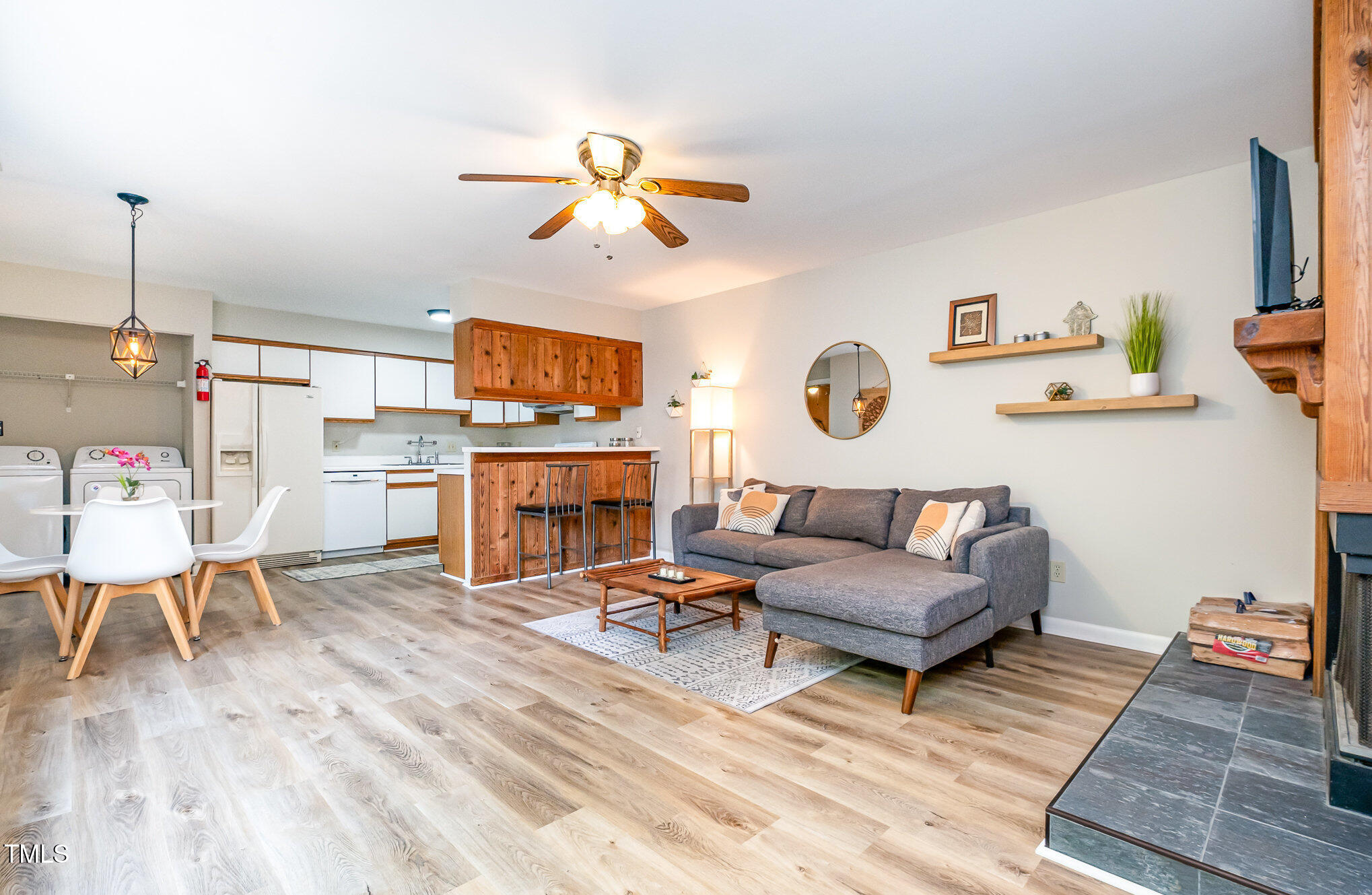 Prime Chapel Hill location with easy access to UNC, Duke, RTP, and beyond! This super clean and well-maintained end-unit condo is ideal as a primary residence or investment property! The open floor plan features 2 oversized bedrooms, 2 full baths, gorgeous LVP flooring, and a cozy wood-burning fireplace full of charm and character. Enjoy the spacious primary suite with its huge walk-in closet, and relax in your generous private outdoor space. Washer, dryer, and refrigerator included! Walk to the Friday Center Park & Ride or catch a buss for a quick commute to campus. Community amenities include a clubhouse, pool, tennis courts, and assigned parking. Low-maintenance living in the heart of everything Chapel Hill has to offer!