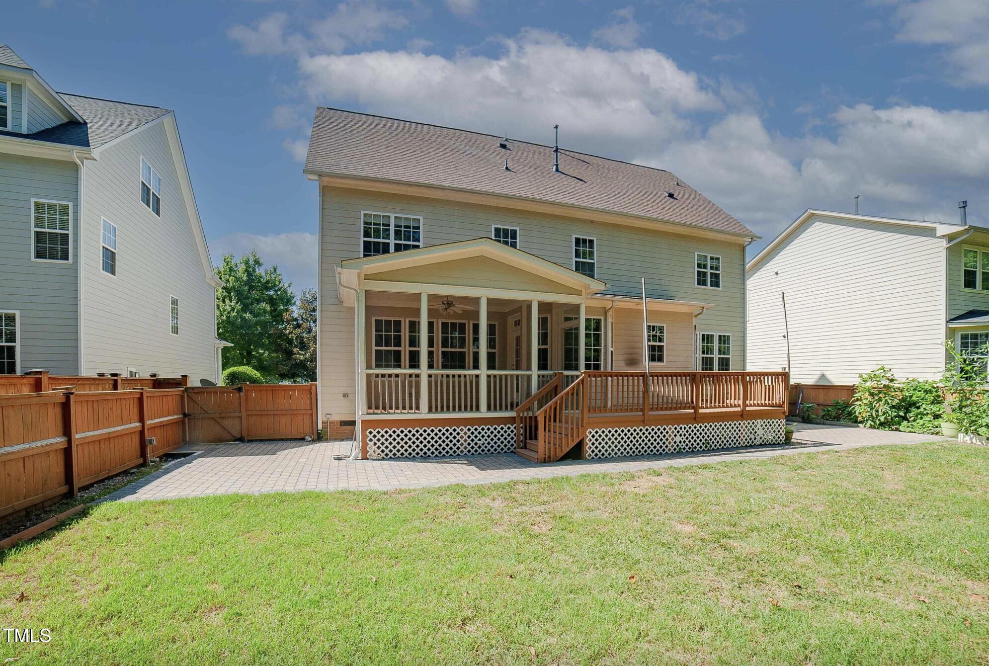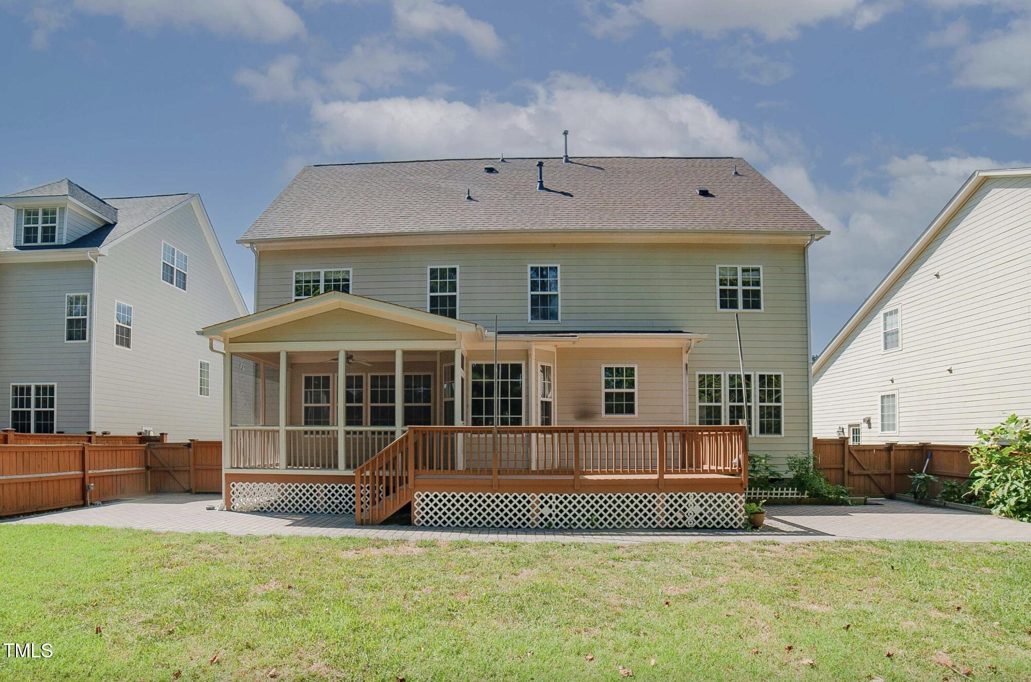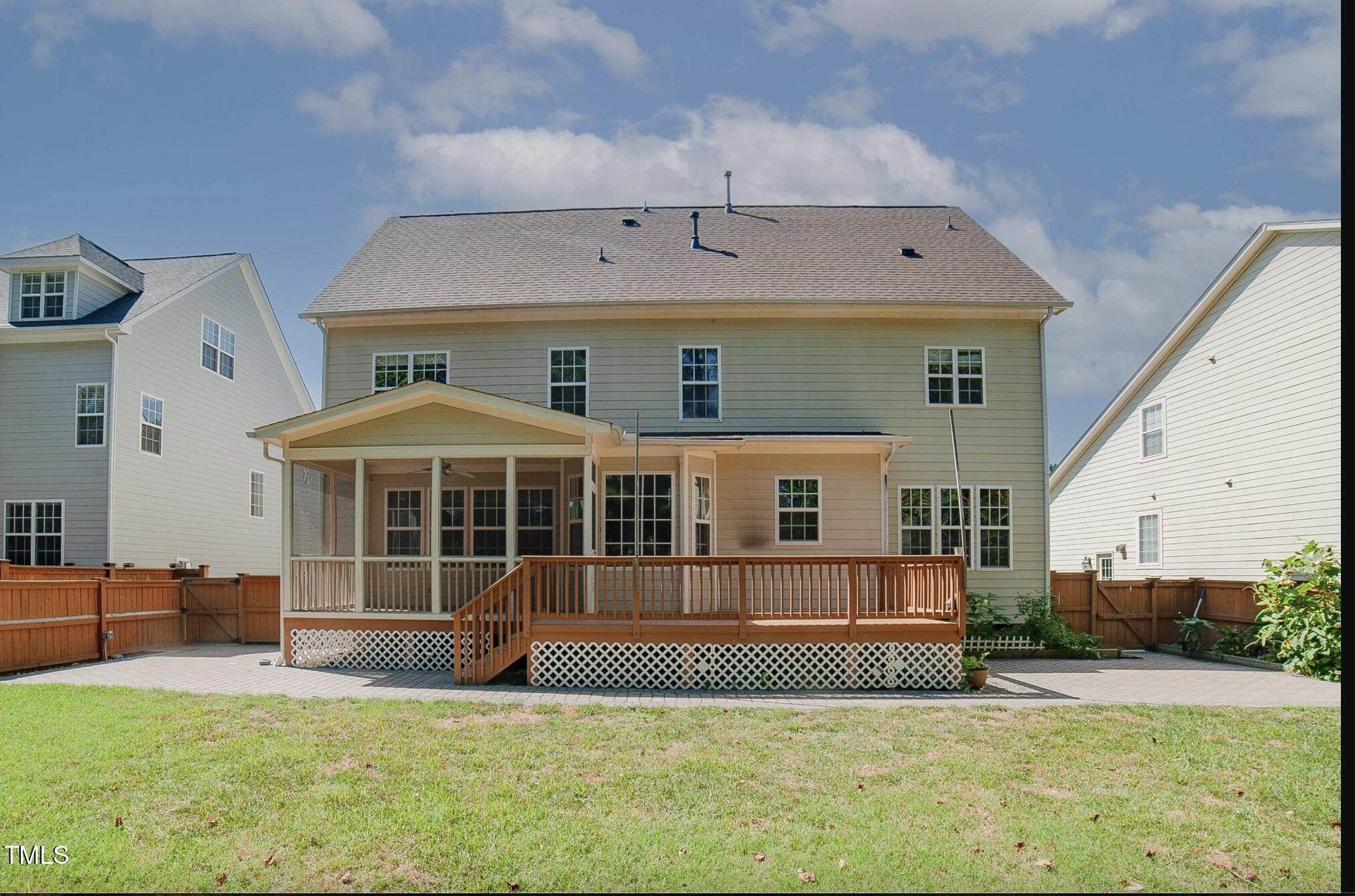 Excellent location! Ready to move in, this 5 bedroom, 3.5 bath home has a spacious open floor plan, formal area, extensive molding, and built-ins. Gourmet kitchen has a gas stove. Refrigerator, washer/dryer are included. Second-level, huge primary suite with garden tub. Bonus room on second floor is perfect for a movie theater. Enjoy outdoor entertaining in the large, level, fenced-in yard w/ screen porch, patio & deck. Roof was replaced in 2020. Seller has not lived in property for one year.Convenient to RTP, shopping, RDU Airport, restaurants/coffee and 4 minutes to Wegmans.
