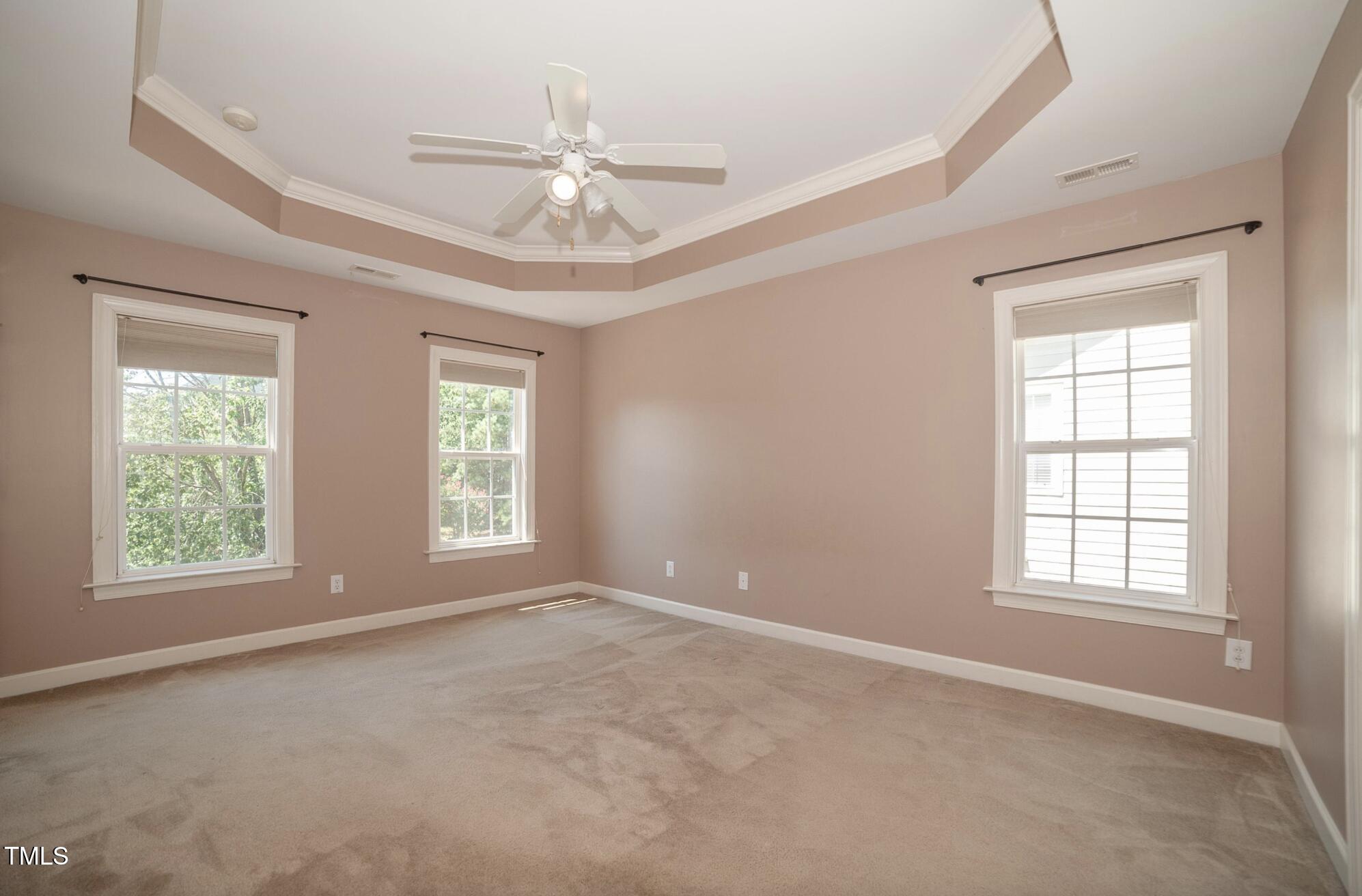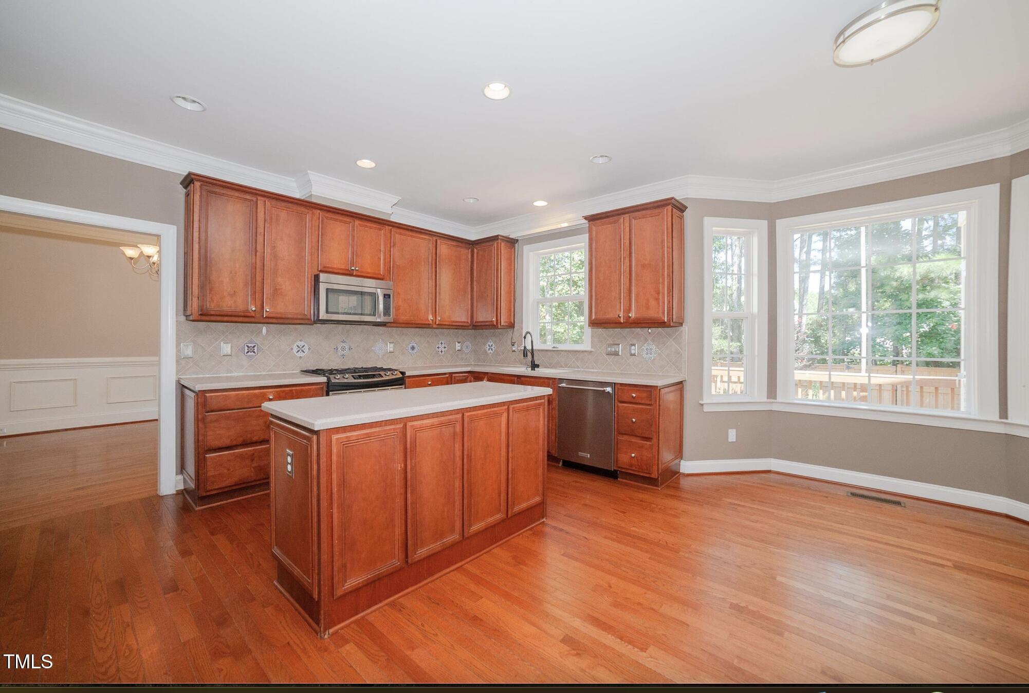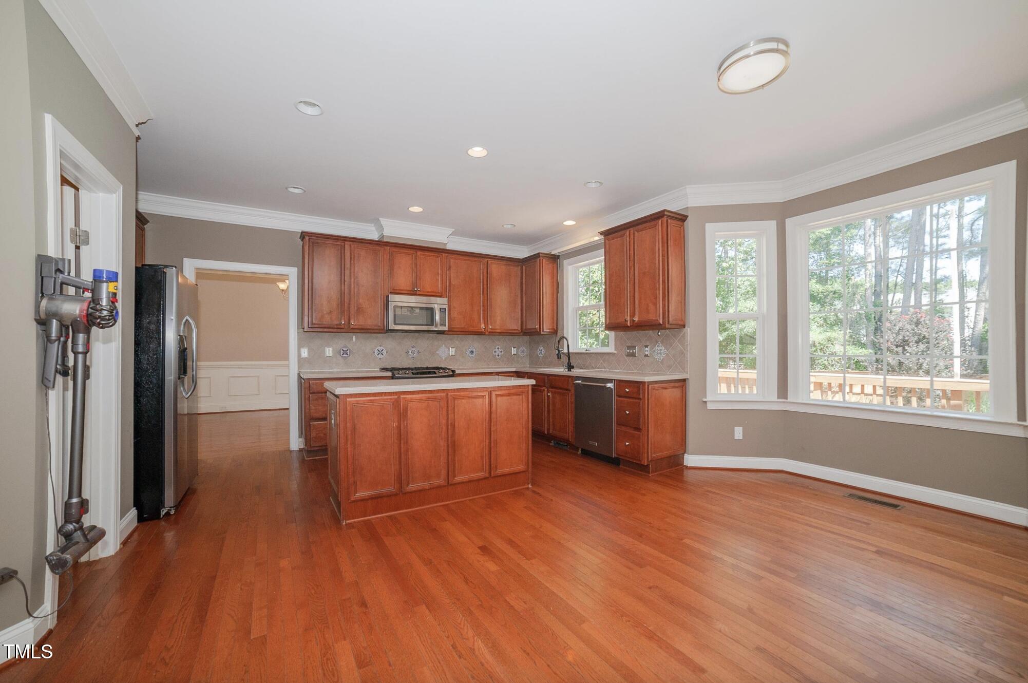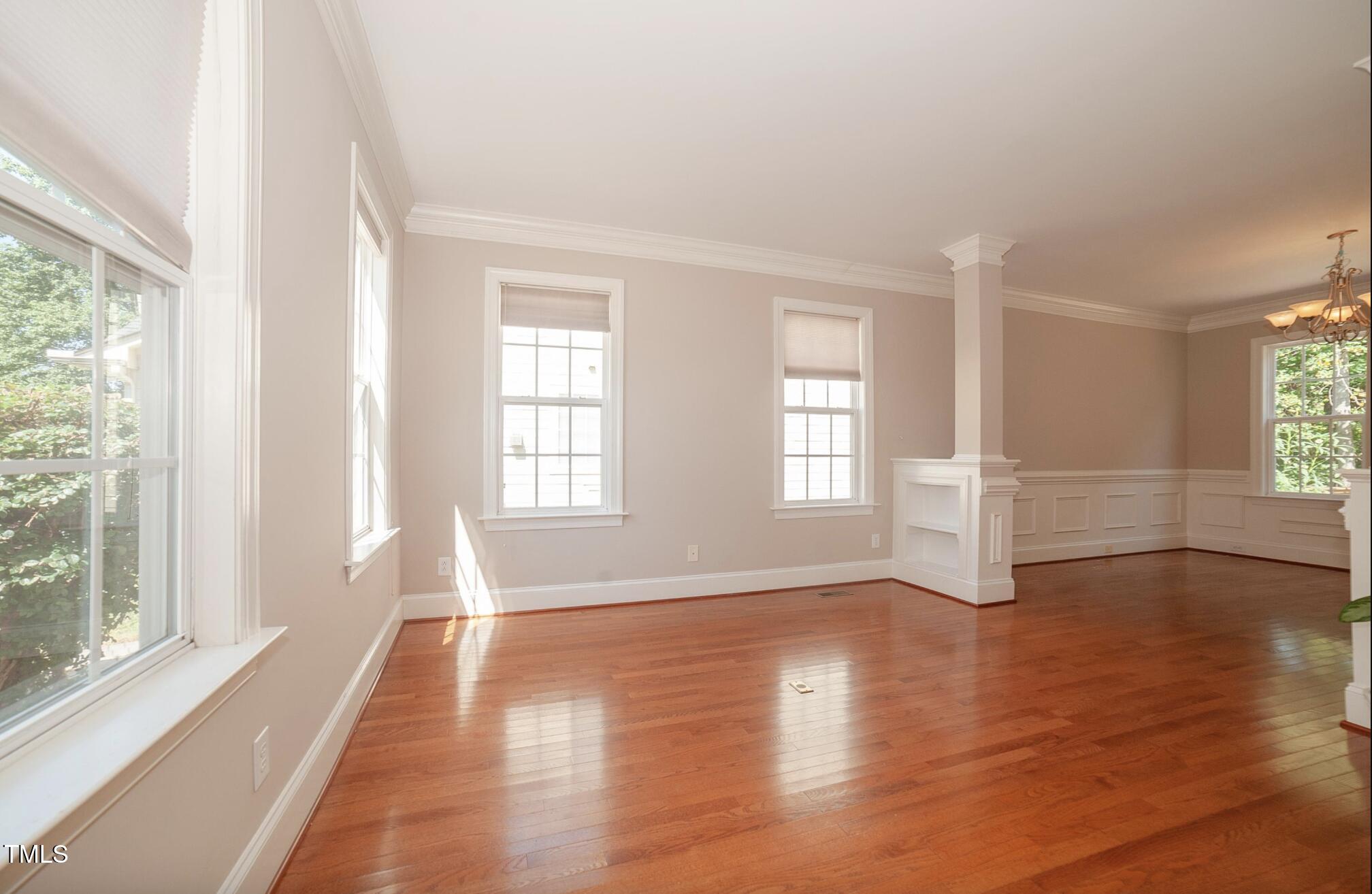 Excellent location! Ready to move in, this 5 bedroom, 3.5 bath home has a spacious open floor plan, formal area, extensive molding, and built-ins. Gourmet kitchen has a gas stove. Refrigerator, washer/dryer are included. Second-level, huge primary suite with garden tub. Bonus room on second floor is perfect for a movie theater. Enjoy outdoor entertaining in the large, level, fenced-in yard w/ screen porch, patio & deck. Roof was replaced in 2020. Seller has not lived in property for one year.Convenient to RTP, shopping, RDU Airport, restaurants/coffee and 4 minutes to Wegmans.