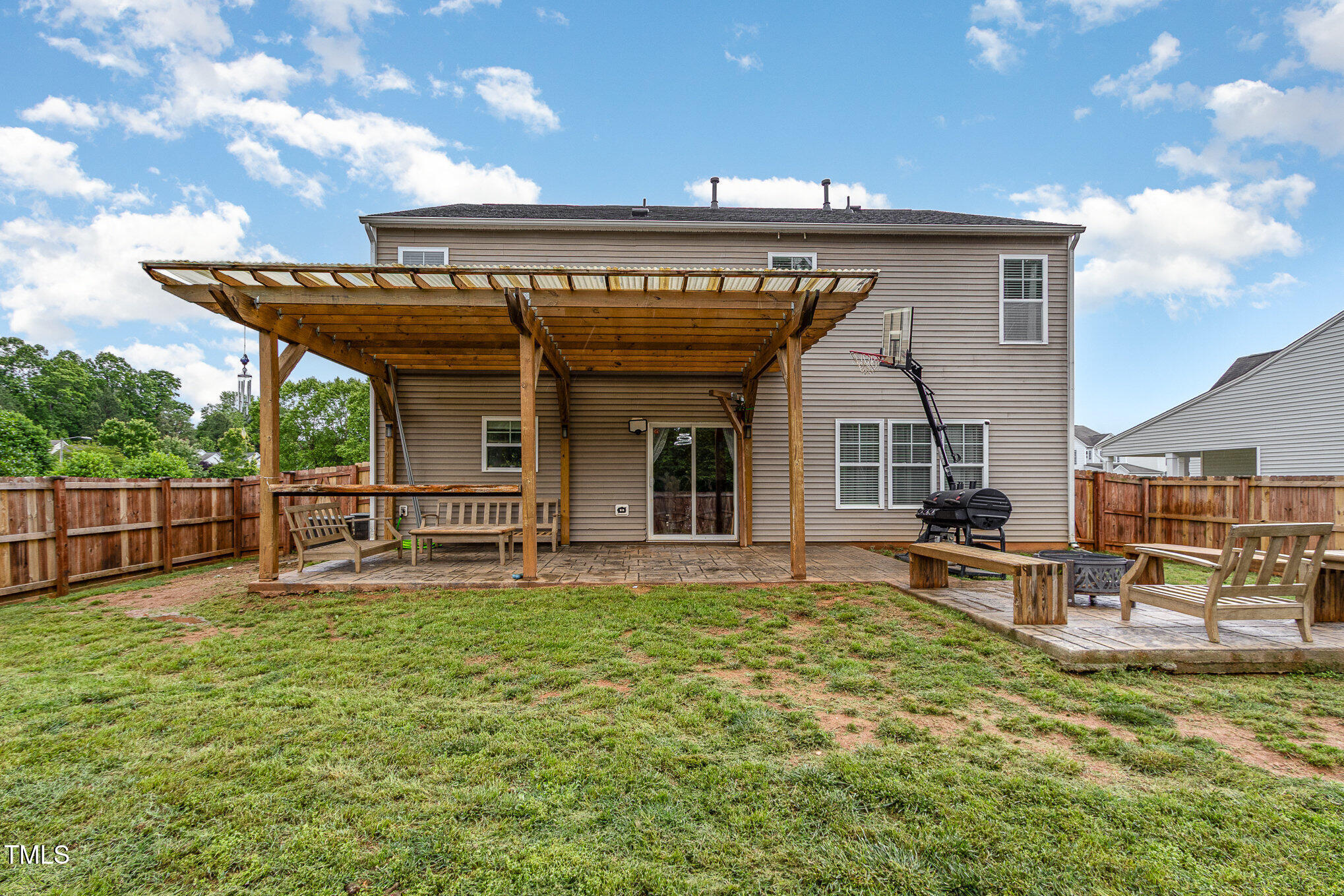 Outside, enjoy the serenity of a pergola-covered patio in your backyard--perfect for grilling, lounging, or late-night chats under the stars.