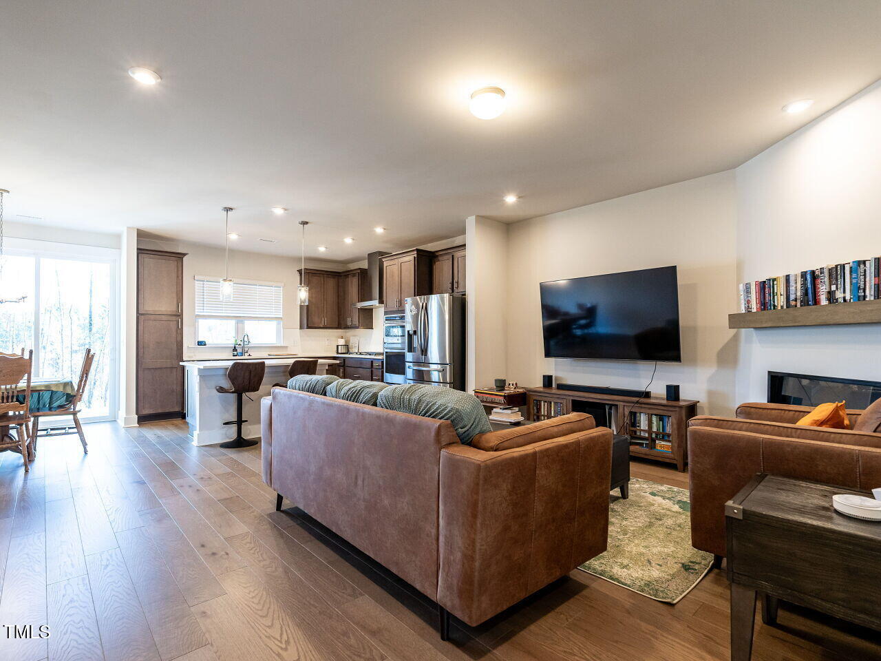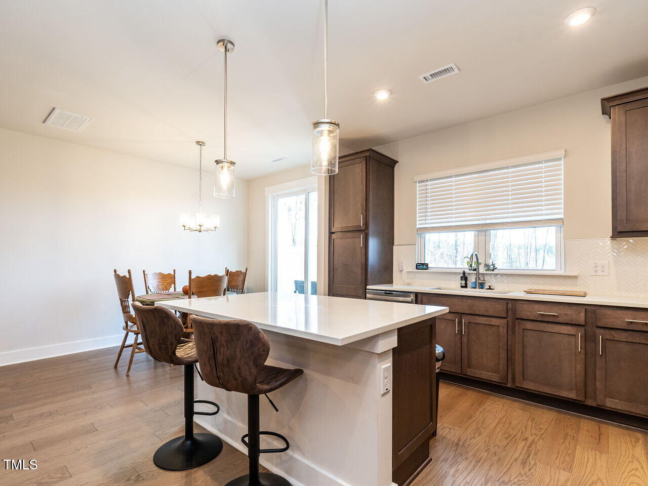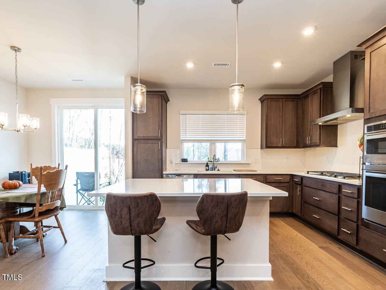This beautiful Chatham Park North townhome is nestled within the Vineyards and features an open floor plan with hardwood floors throughout the main level. The kitchen boasts solid surface countertops and stainless steel appliances. The spacious primary bedroom includes a large walk-in closet, a double vanity bathroom, and a walk-in tiled shower. The back patio offers stunning views of a natural area. Enjoy all the amenities Chatham Park has to offer, including swimming, pickleball, dog parks, playgrounds, extensive trails, restaurants, and more. This home is move-in ready and shows like new!