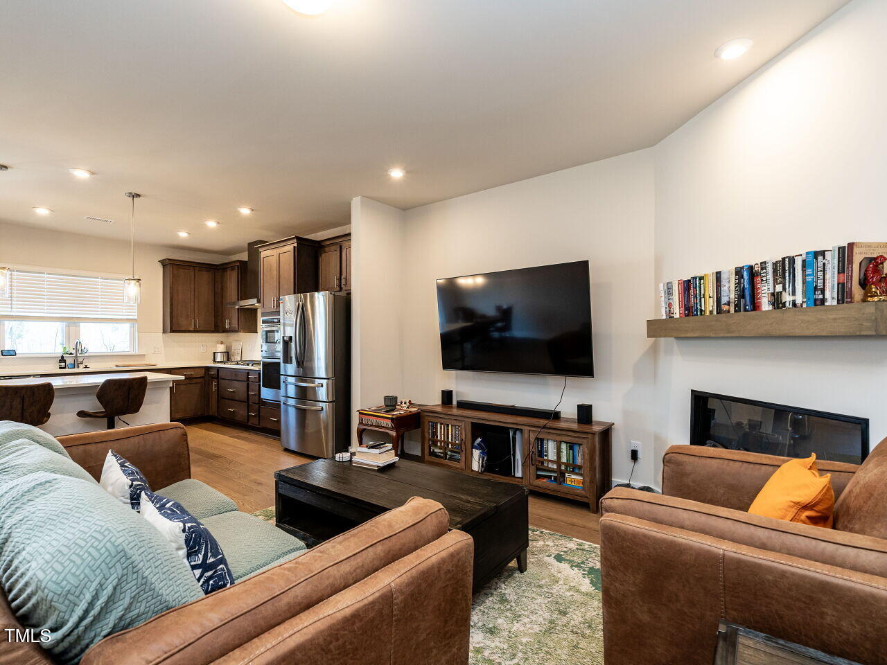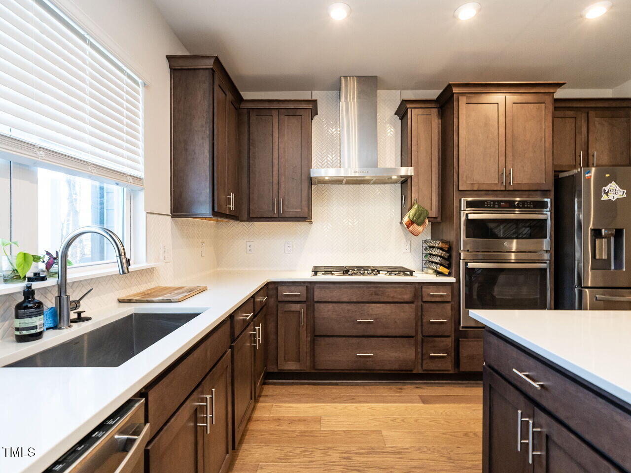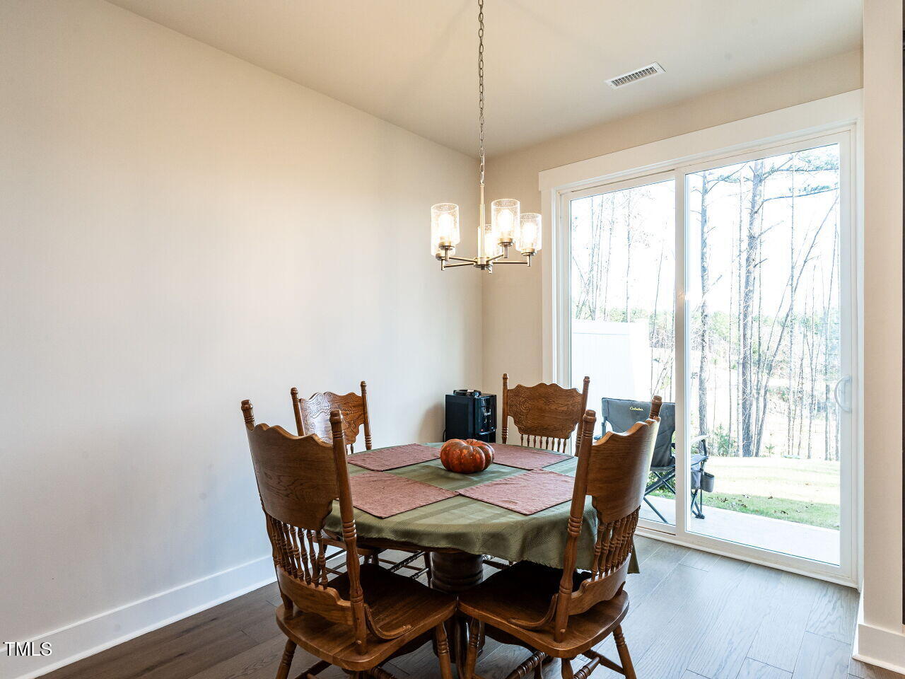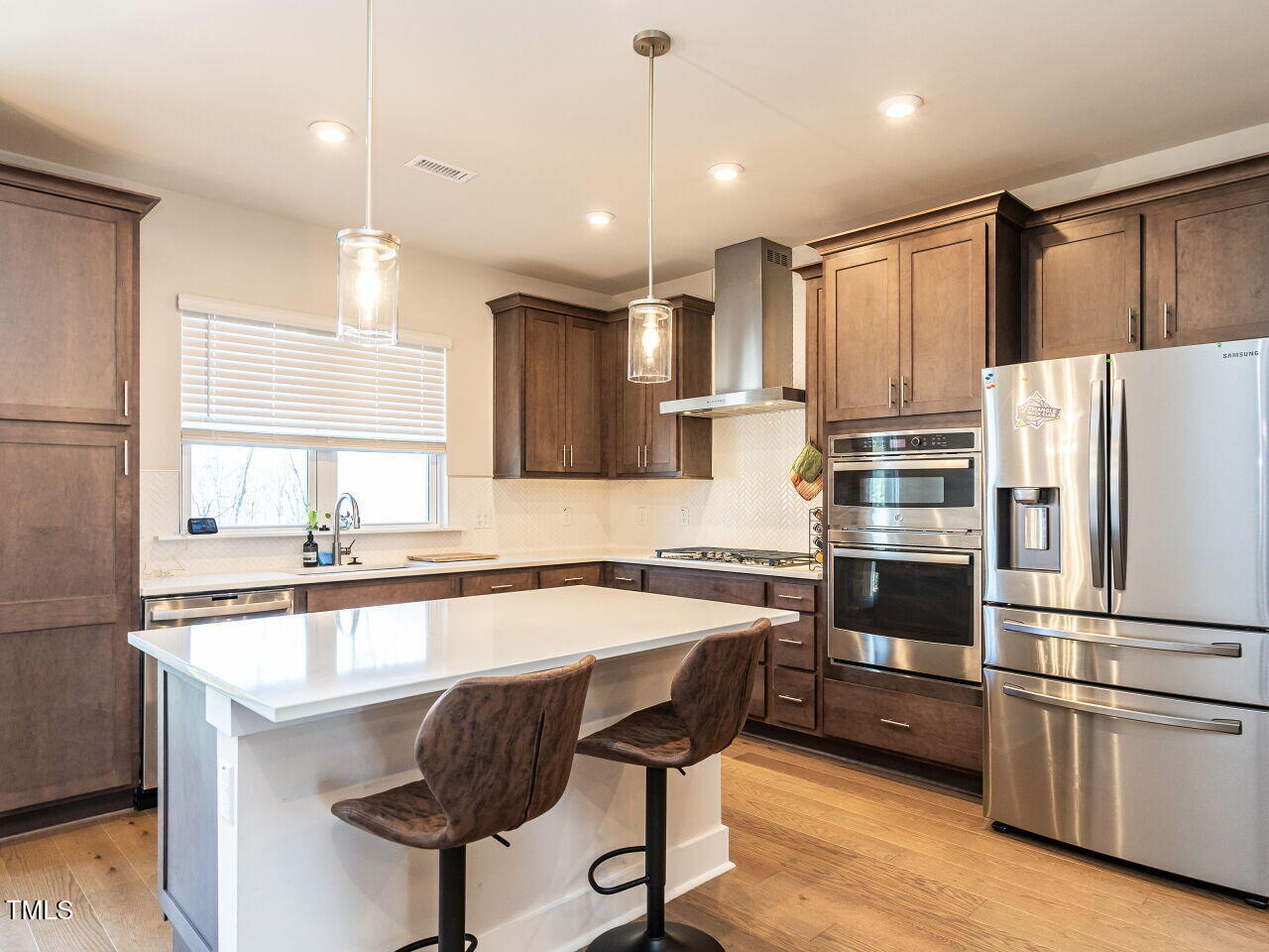 This beautiful Chatham Park North townhome is nestled within the Vineyards and features an open floor plan with hardwood floors throughout the main level. The kitchen boasts solid surface countertops and stainless steel appliances. The spacious primary bedroom includes a large walk-in closet, a double vanity bathroom, and a walk-in tiled shower. The back patio offers stunning views of a natural area. Enjoy all the amenities Chatham Park has to offer, including swimming, pickleball, dog parks, playgrounds, extensive trails, restaurants, and more. This home is move-in ready and shows like new!