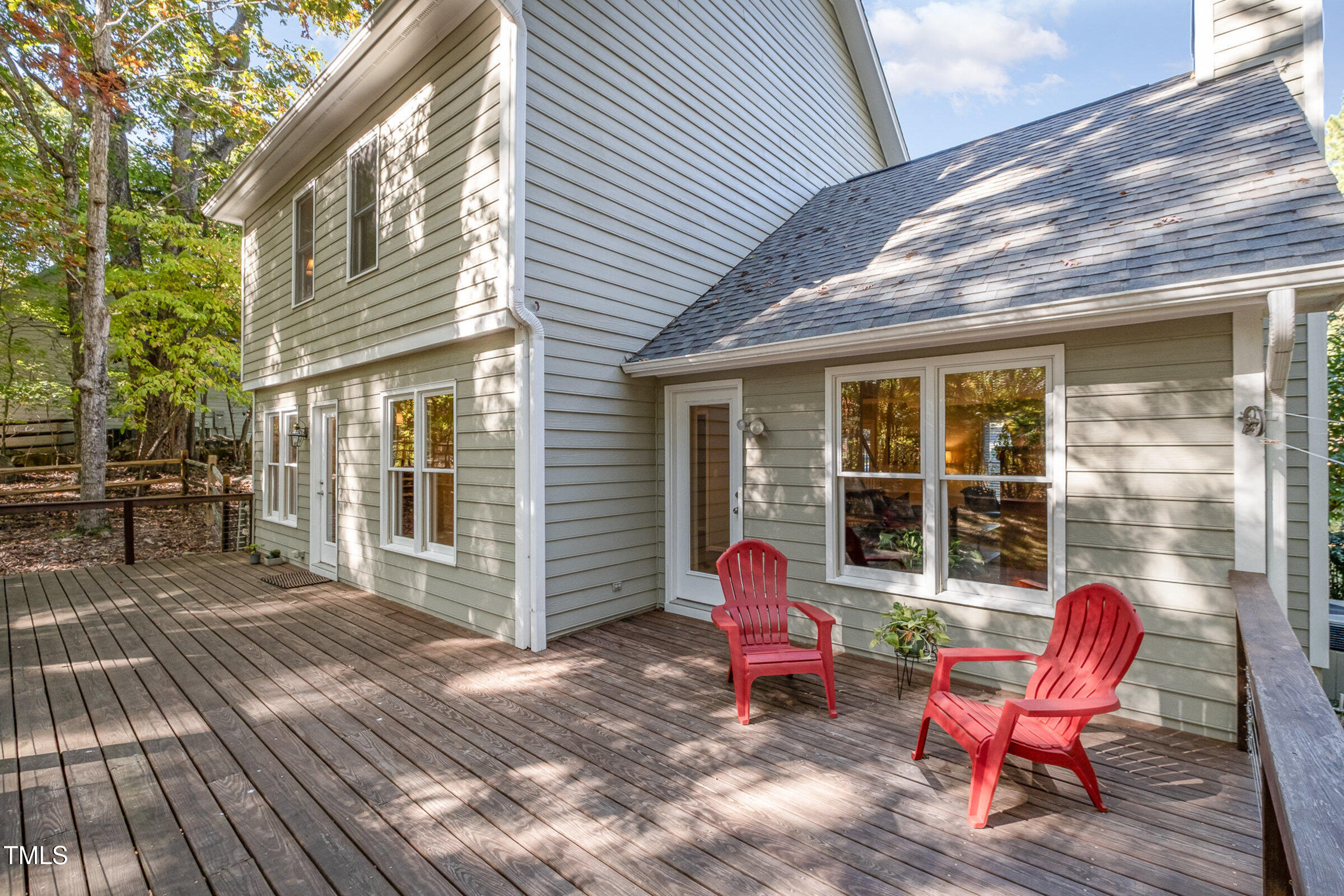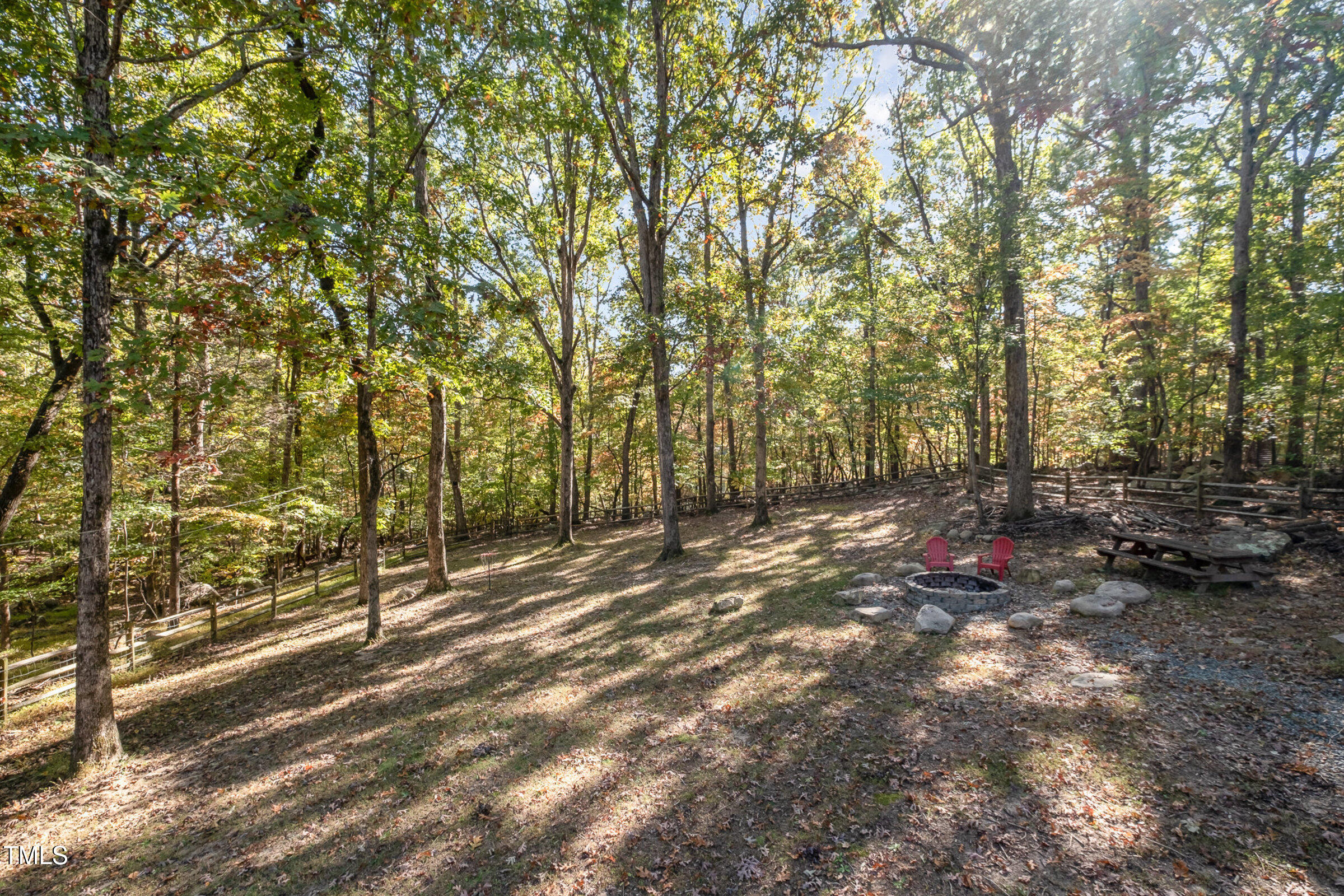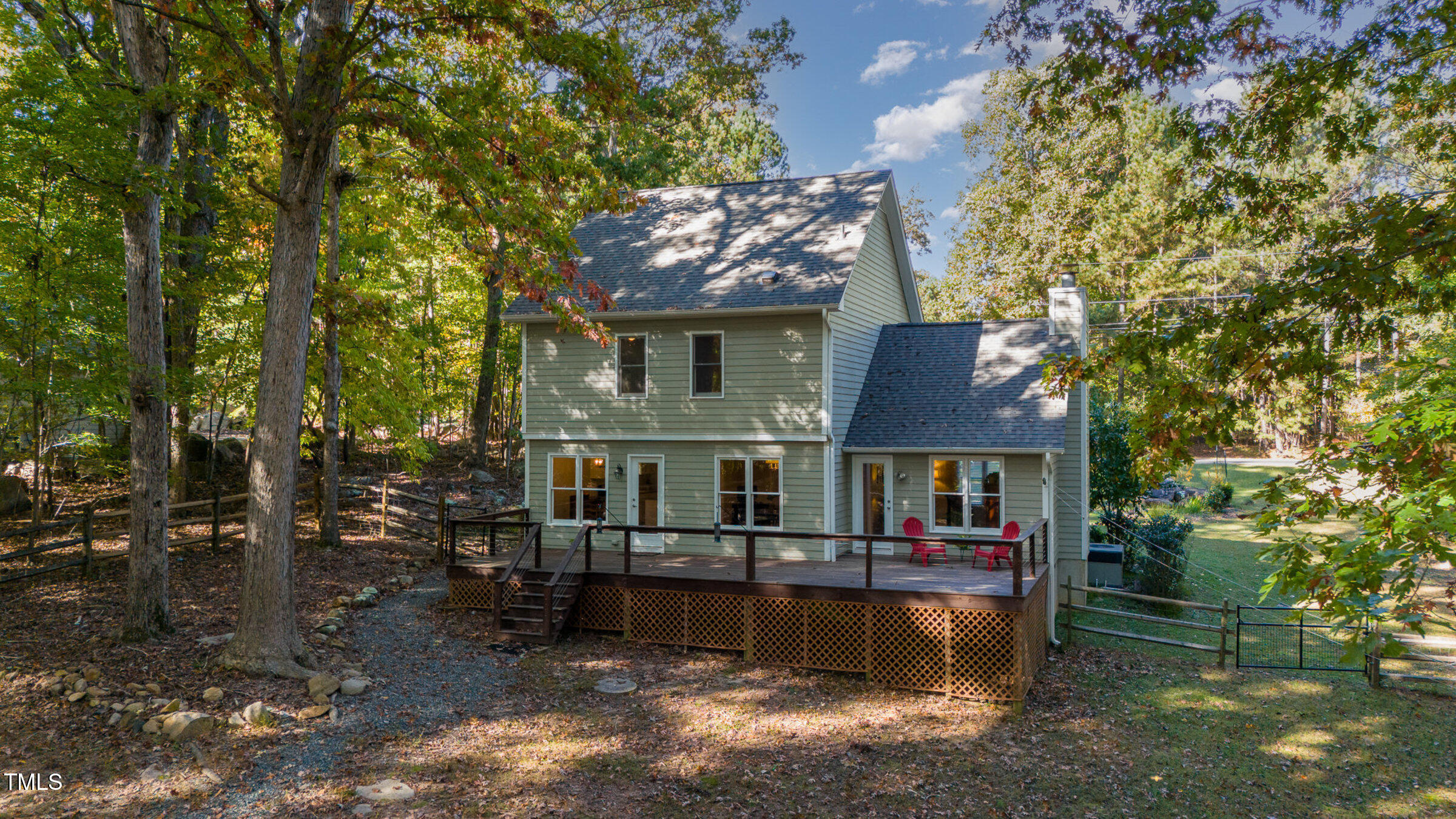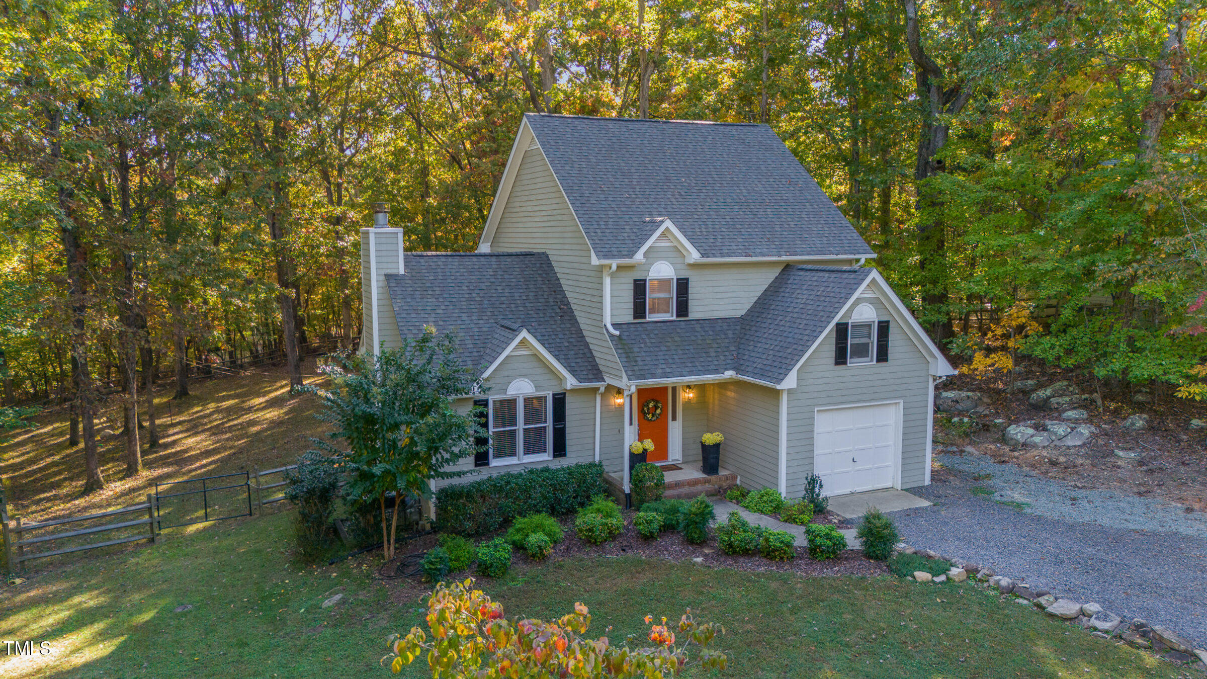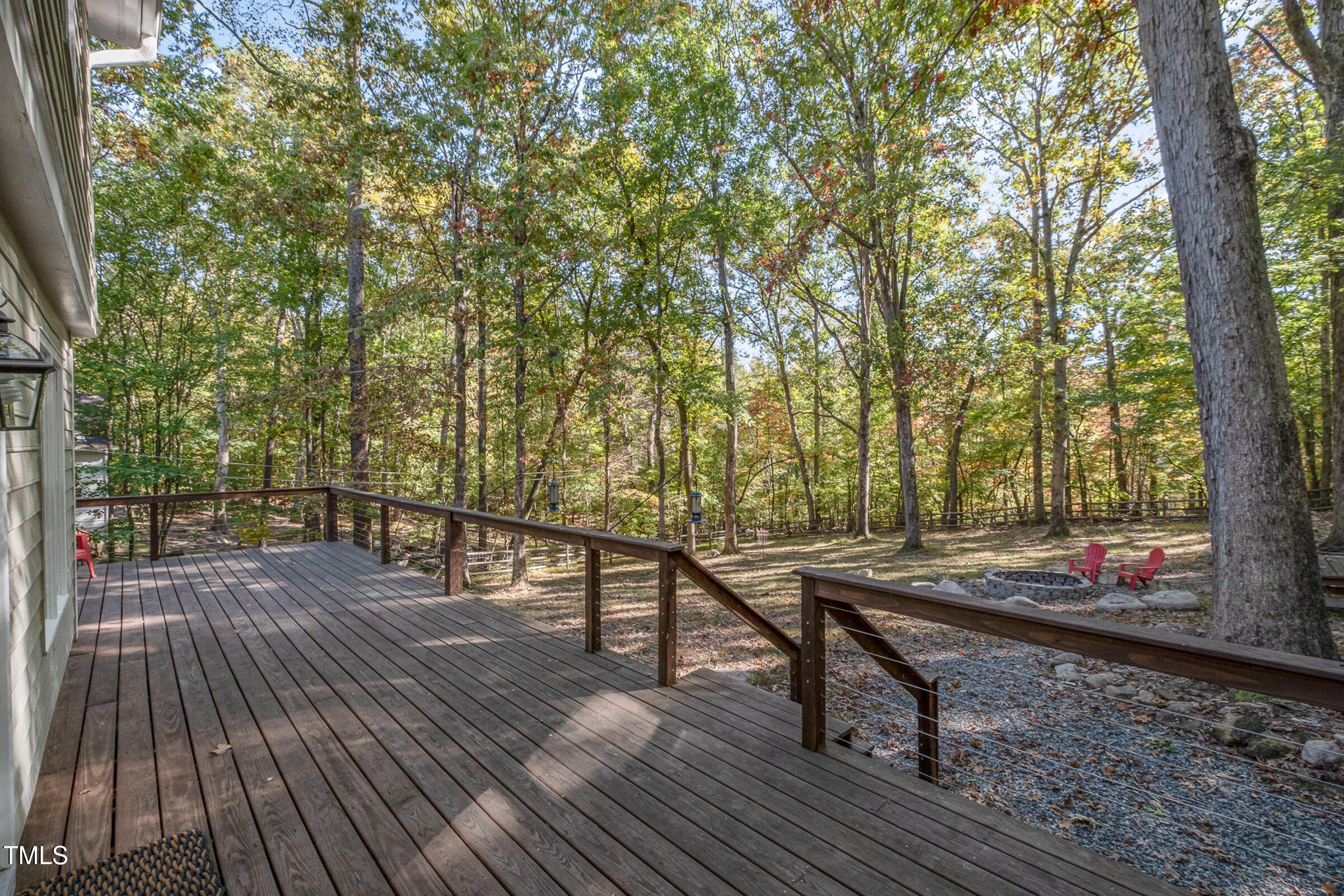 Nestled in the sought-after Highland Forest neighborhood, this updated home offers modern amenities on a spacious .92-acre lot. The open, flowing floor plan is ideal for entertaining or unwinding. The kitchen features newer cabinets, granite countertops, a large center island, updated lighting, flooring, and backsplash--tailored for today's living. Recent upgrades extend to both bathrooms, an HVAC system, and smooth ceilings. Added bonuses include a newer roof and hot water heater creating a home that feels fresh with a contemporary atmosphere while enjoying low maintenance. The outdoors host a large deck with a fire pit invites serene evenings, and landscaping enhancements add to the curb appeal, with an open yard providing excellent privacy, no city taxes, no HOA fees, and a conversion to natural gas for added efficiency. Located in a top-tier school district and near UNC, Falls Lake, and shopping, this property offers the perfect blend of seclusion and convenience.