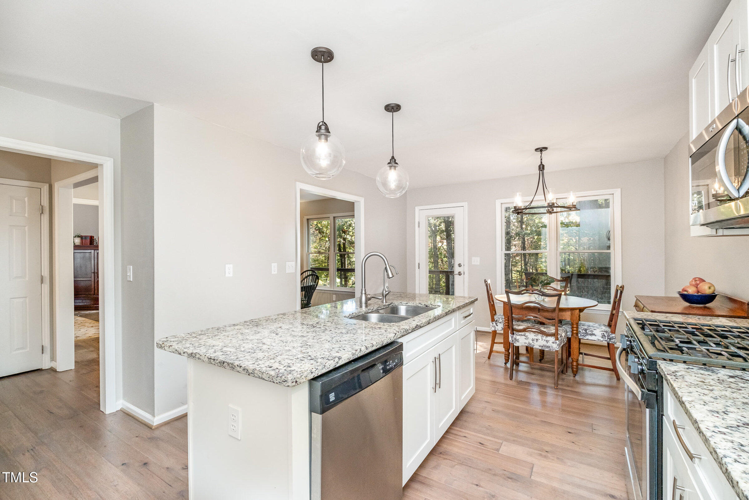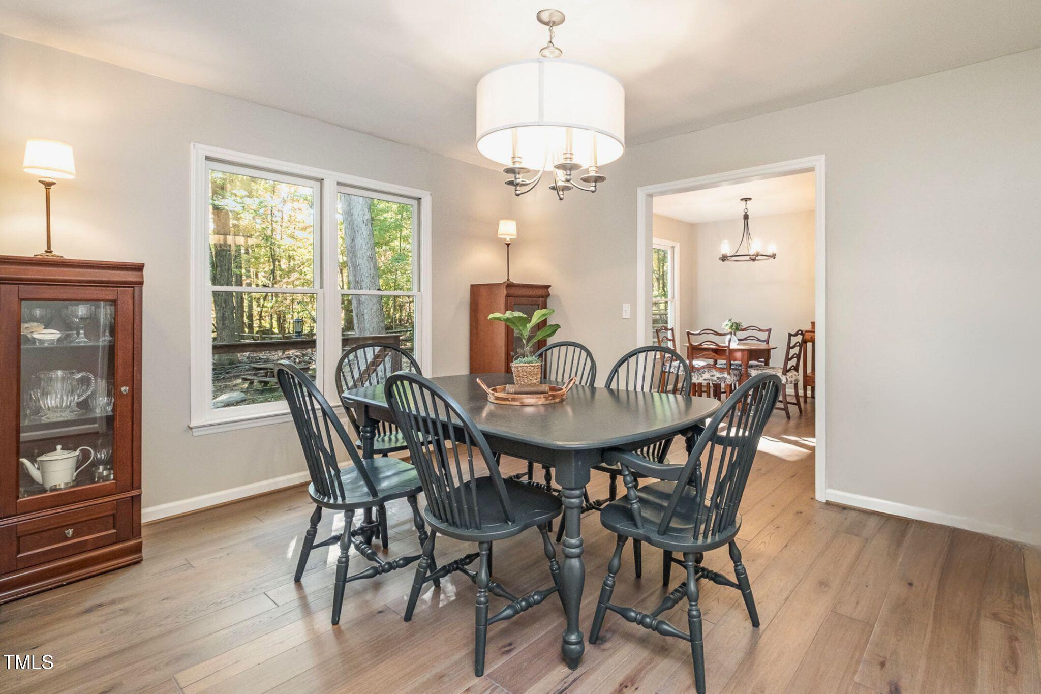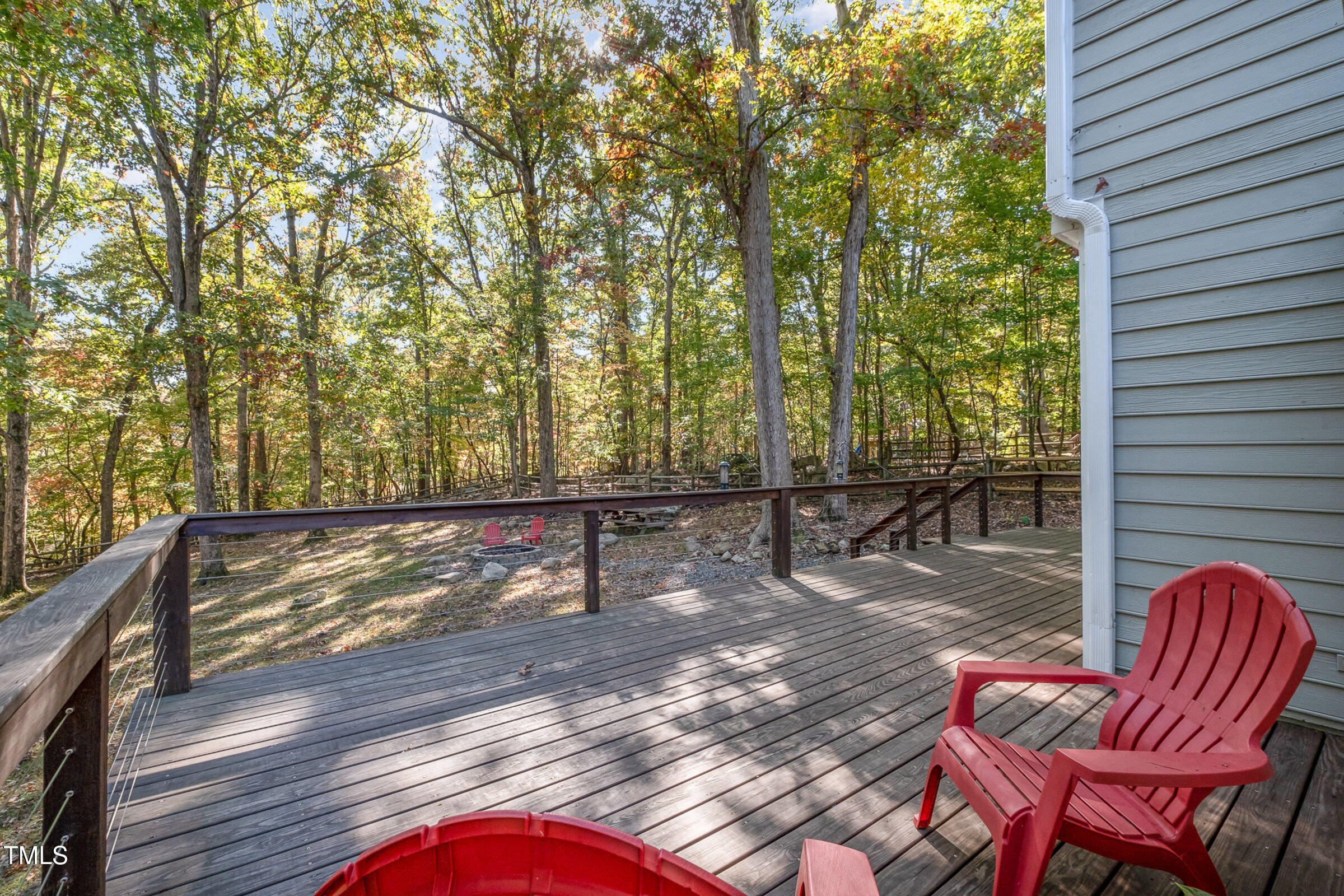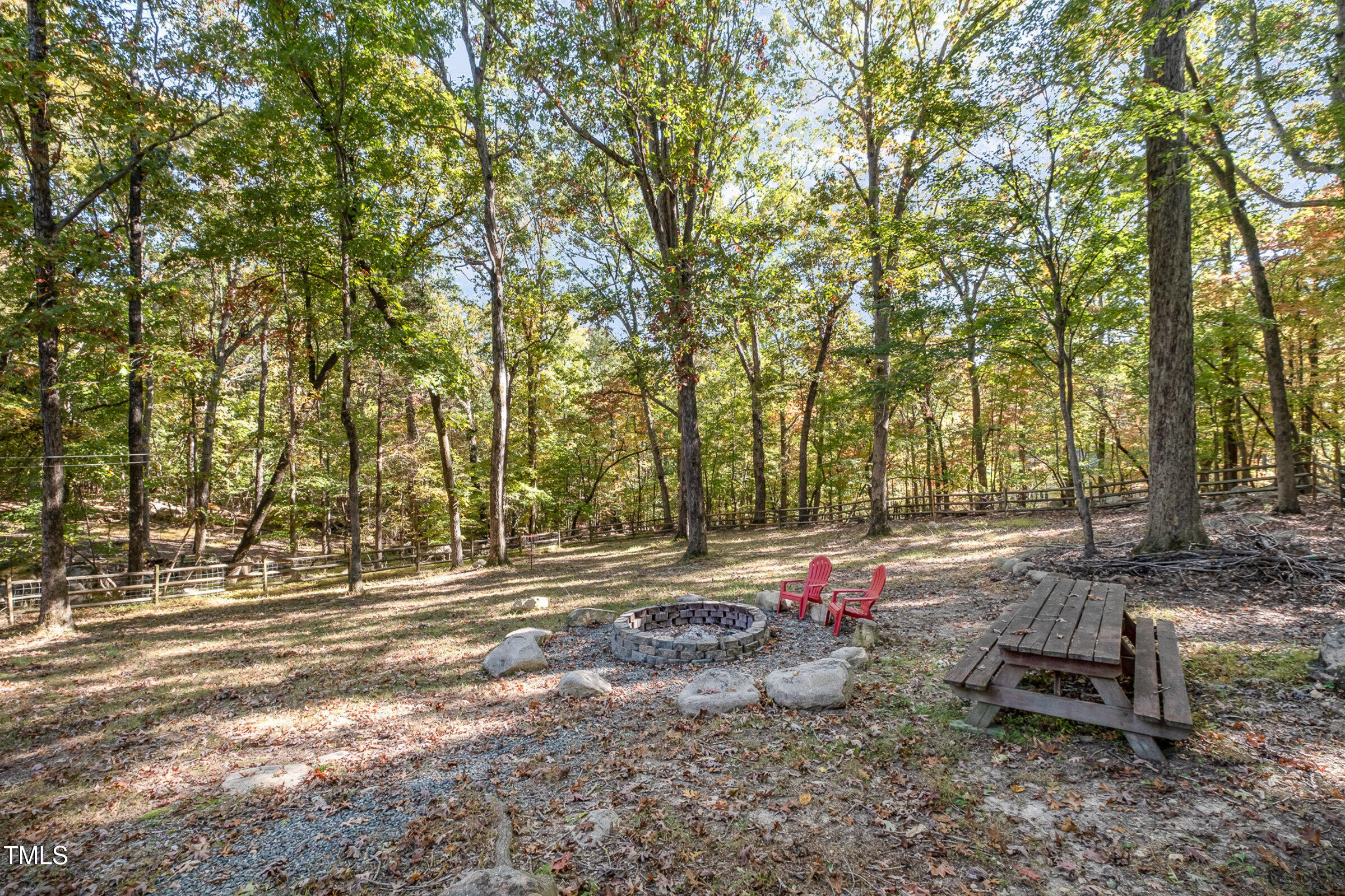 Nestled in the sought-after Highland Forest neighborhood, this updated home offers modern amenities on a spacious .92-acre lot. The open, flowing floor plan is ideal for entertaining or unwinding. The kitchen features newer cabinets, granite countertops, a large center island, updated lighting, flooring, and backsplash--tailored for today's living. Recent upgrades extend to both bathrooms, an HVAC system, and smooth ceilings. Added bonuses include a newer roof and hot water heater creating a home that feels fresh with a contemporary atmosphere while enjoying low maintenance. The outdoors host a large deck with a fire pit invites serene evenings, and landscaping enhancements add to the curb appeal, with an open yard providing excellent privacy, no city taxes, no HOA fees, and a conversion to natural gas for added efficiency. Located in a top-tier school district and near UNC, Falls Lake, and shopping, this property offers the perfect blend of seclusion and convenience.
