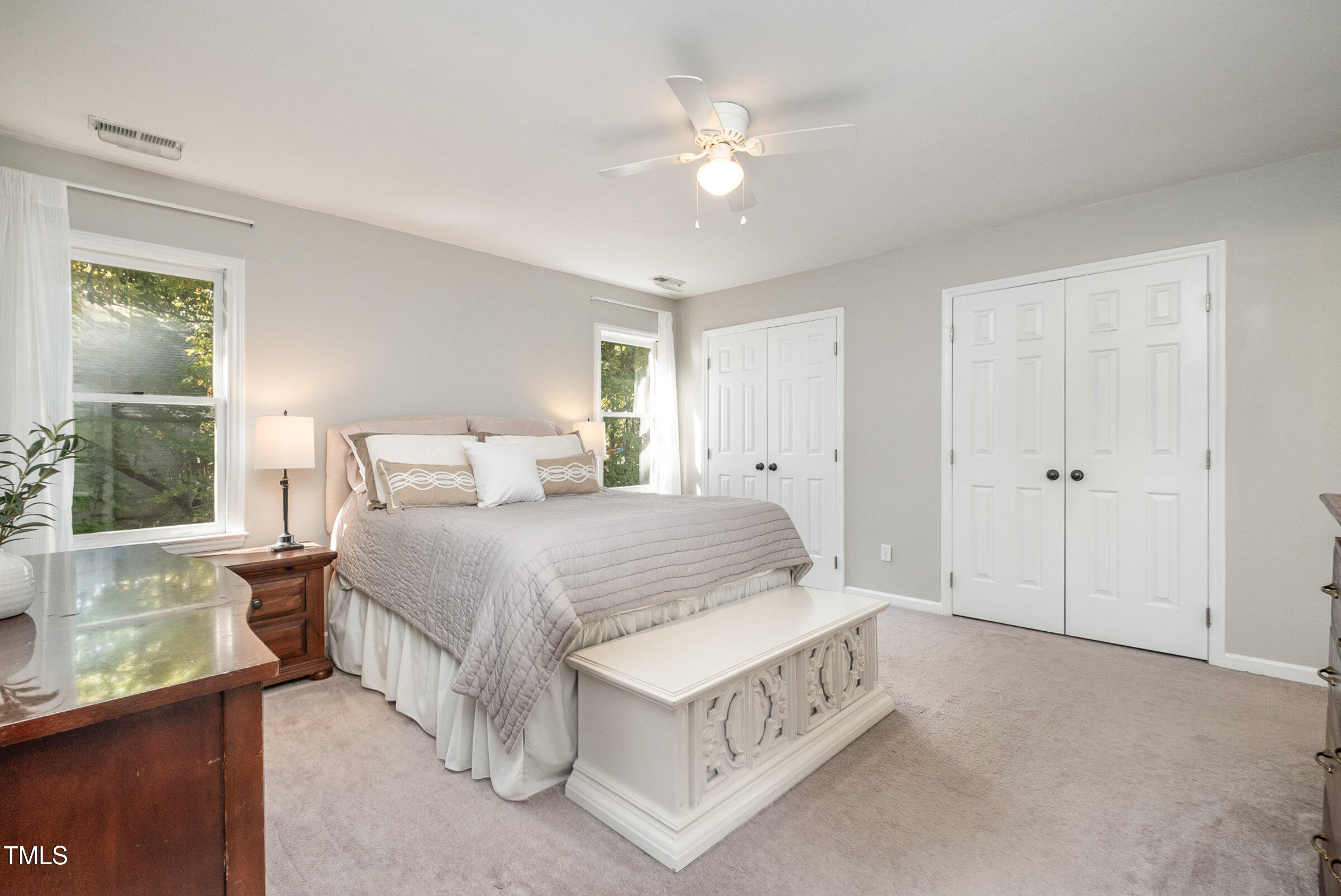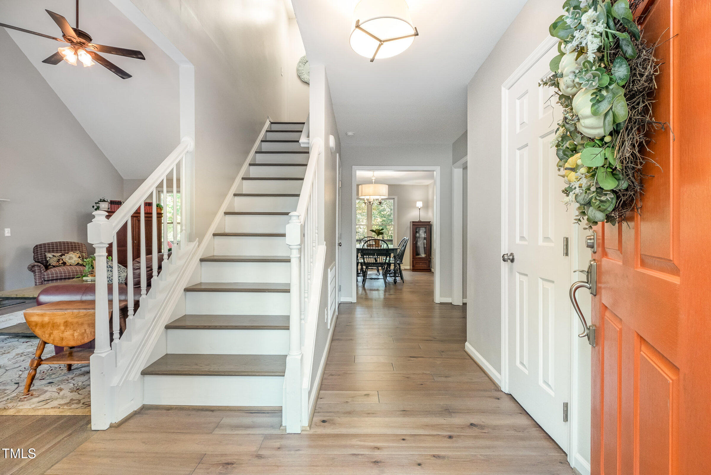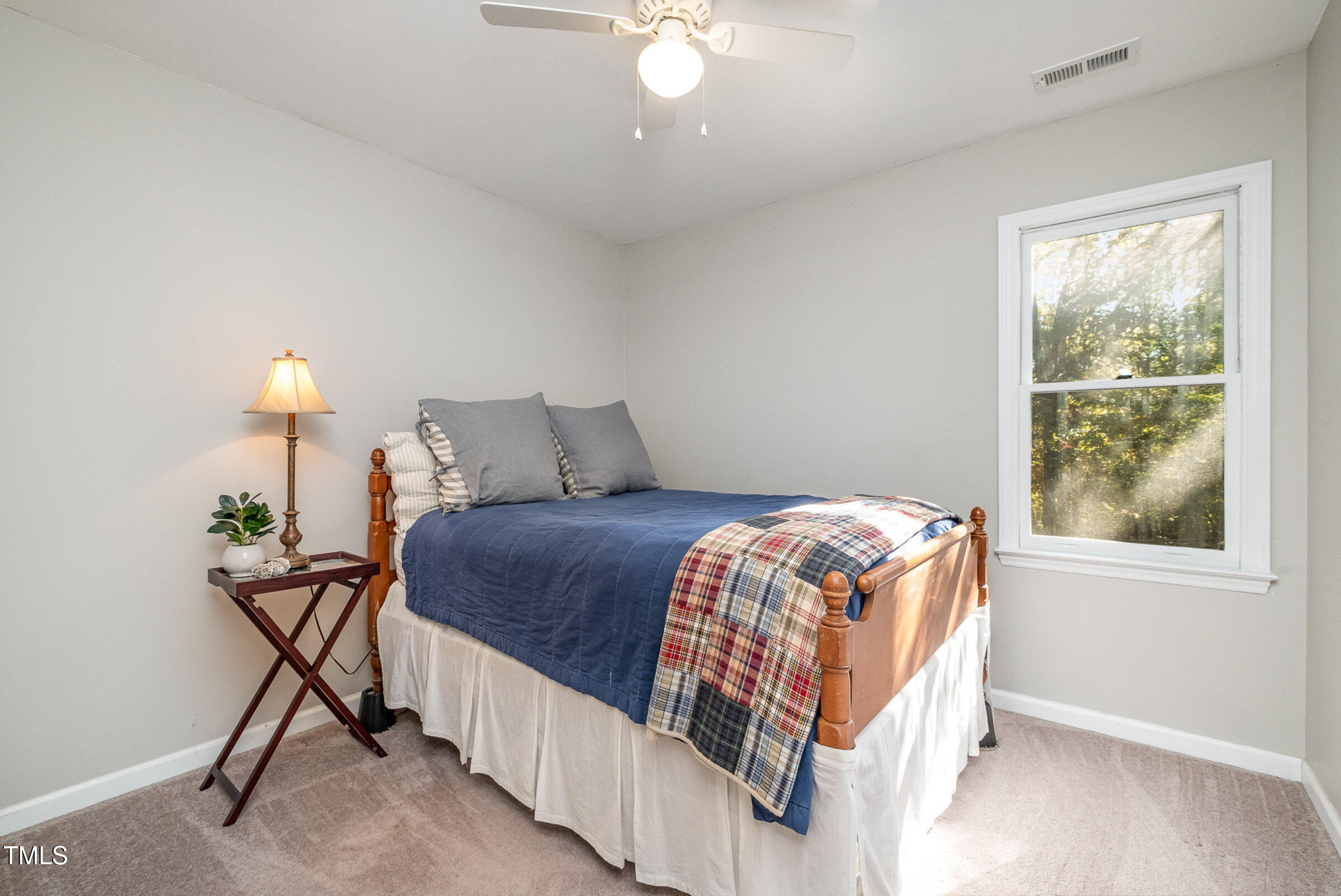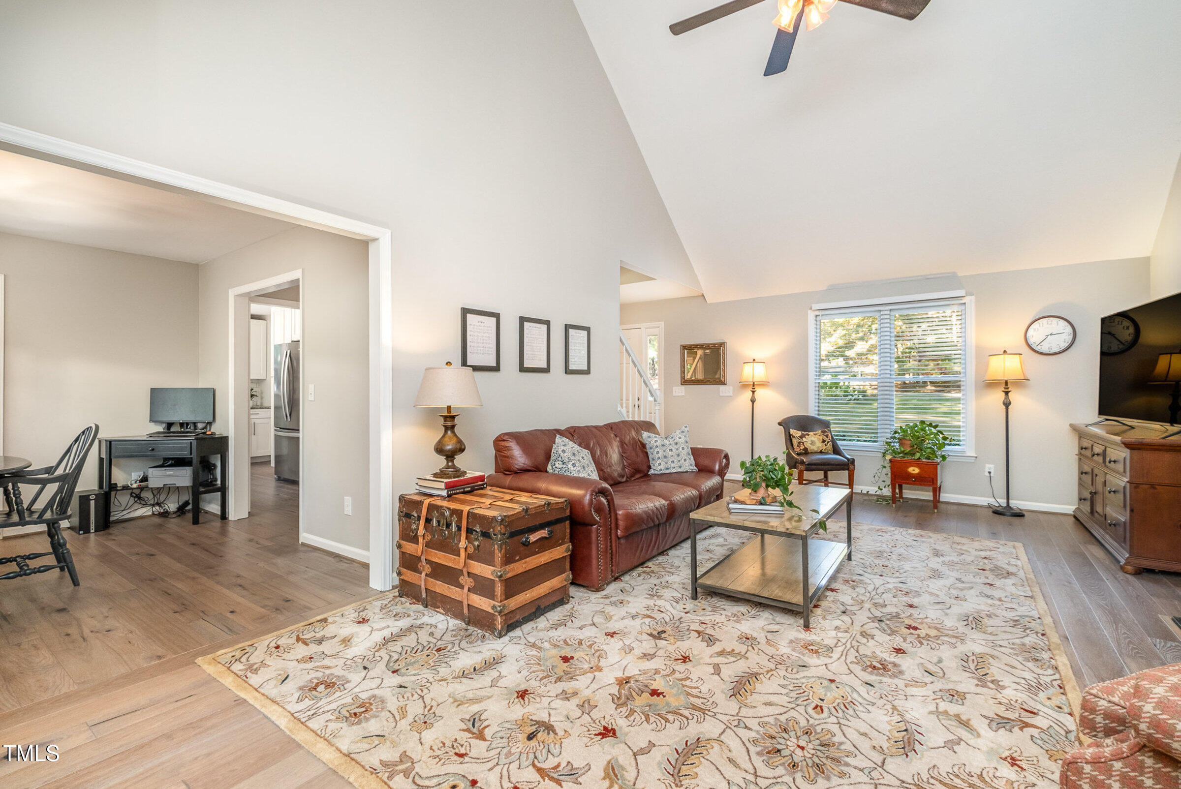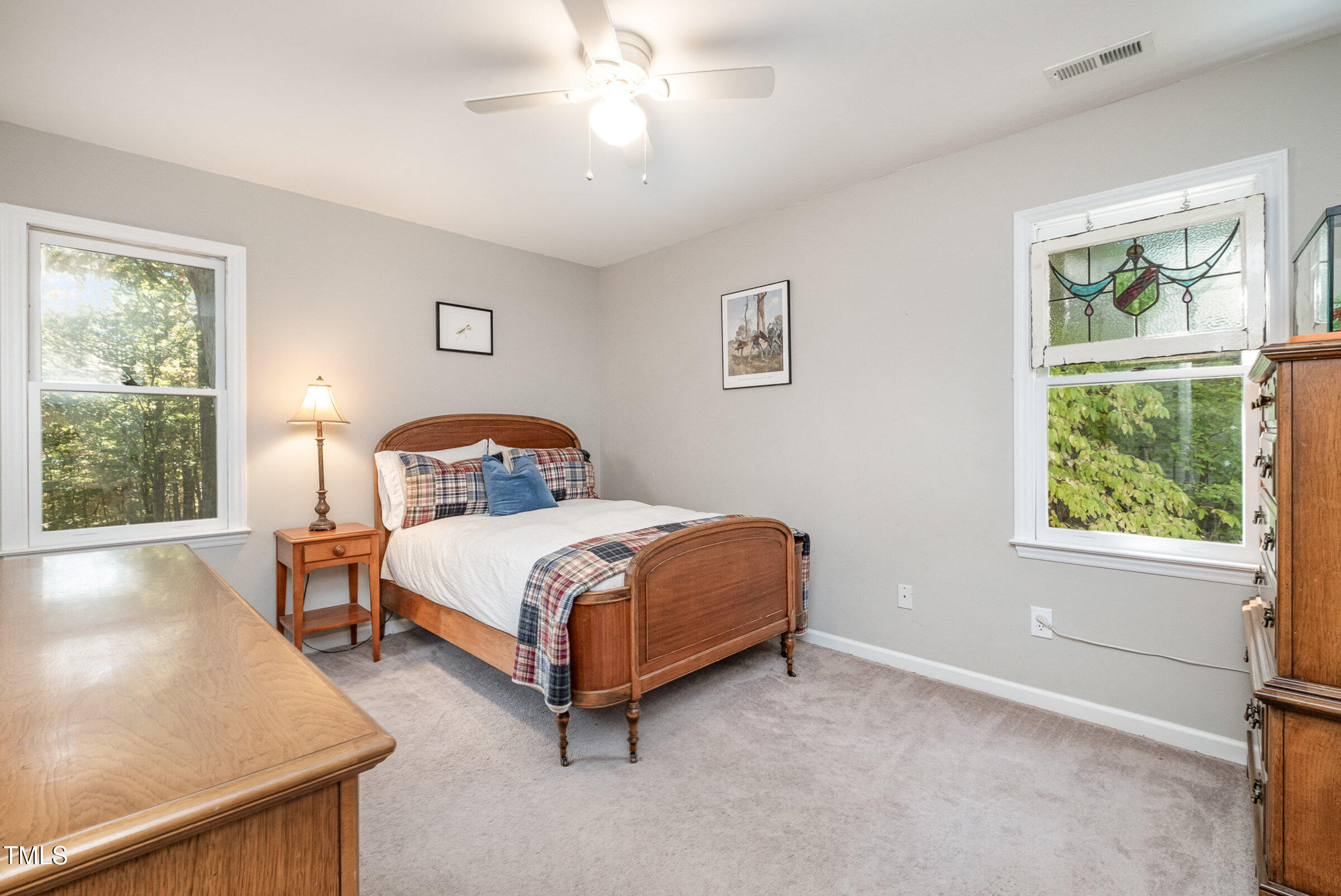 Nestled in the sought-after Highland Forest neighborhood, this updated home offers modern amenities on a spacious .92-acre lot. The open, flowing floor plan is ideal for entertaining or unwinding. The kitchen features newer cabinets, granite countertops, a large center island, updated lighting, flooring, and backsplash--tailored for today's living. Recent upgrades extend to both bathrooms, an HVAC system, and smooth ceilings. Added bonuses include a newer roof and hot water heater creating a home that feels fresh with a contemporary atmosphere while enjoying low maintenance. The outdoors host a large deck with a fire pit invites serene evenings, and landscaping enhancements add to the curb appeal, with an open yard providing excellent privacy, no city taxes, no HOA fees, and a conversion to natural gas for added efficiency. Located in a top-tier school district and near UNC, Falls Lake, and shopping, this property offers the perfect blend of seclusion and convenience.