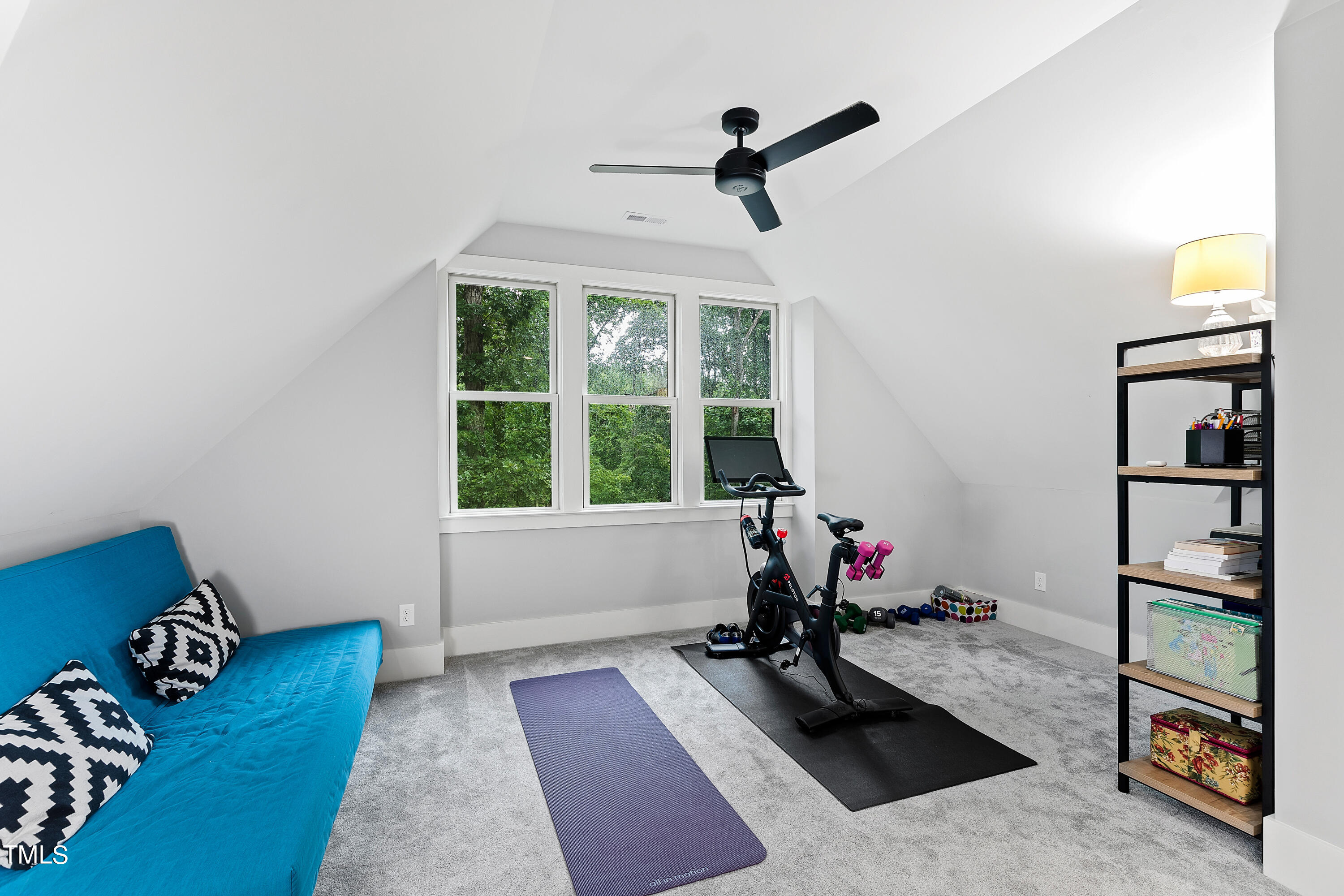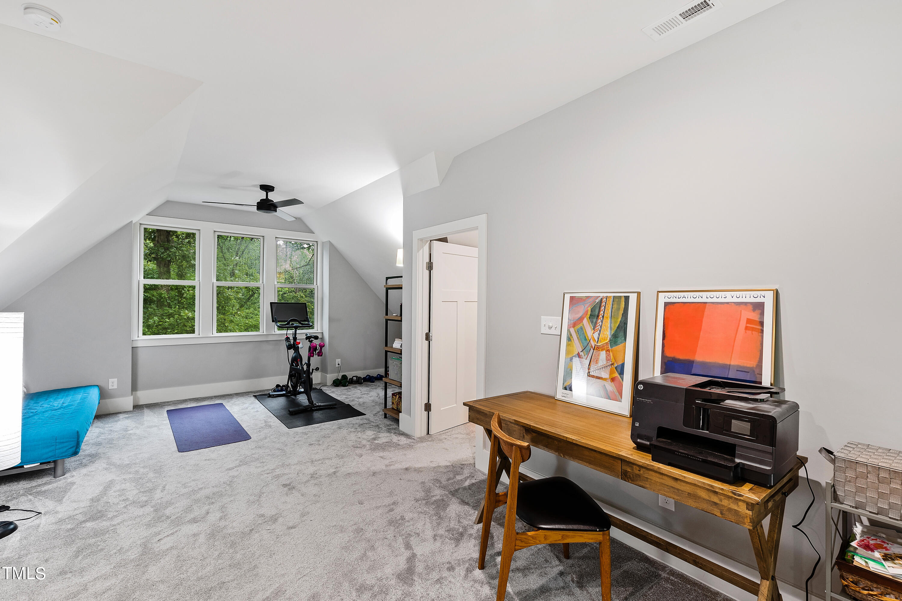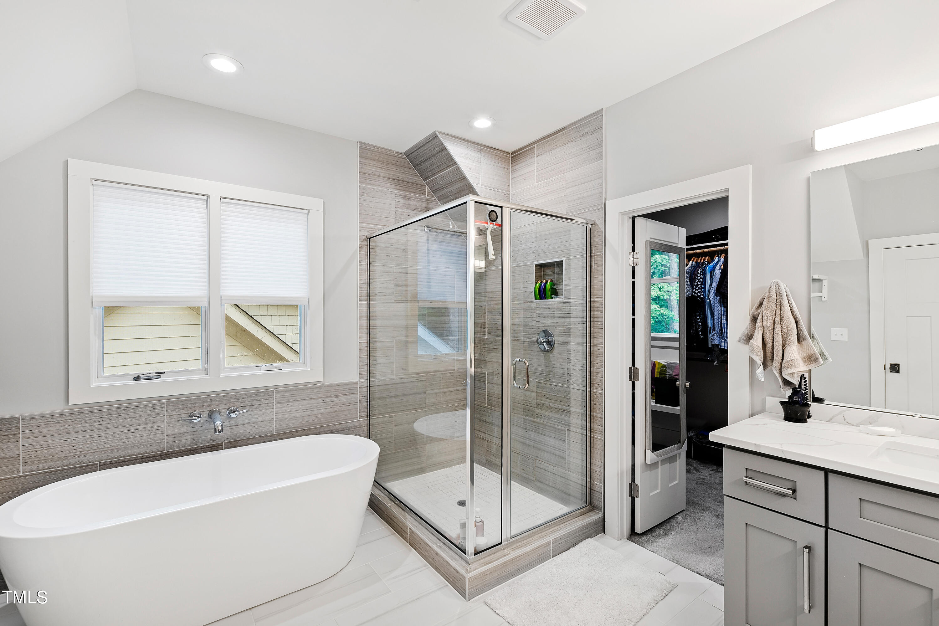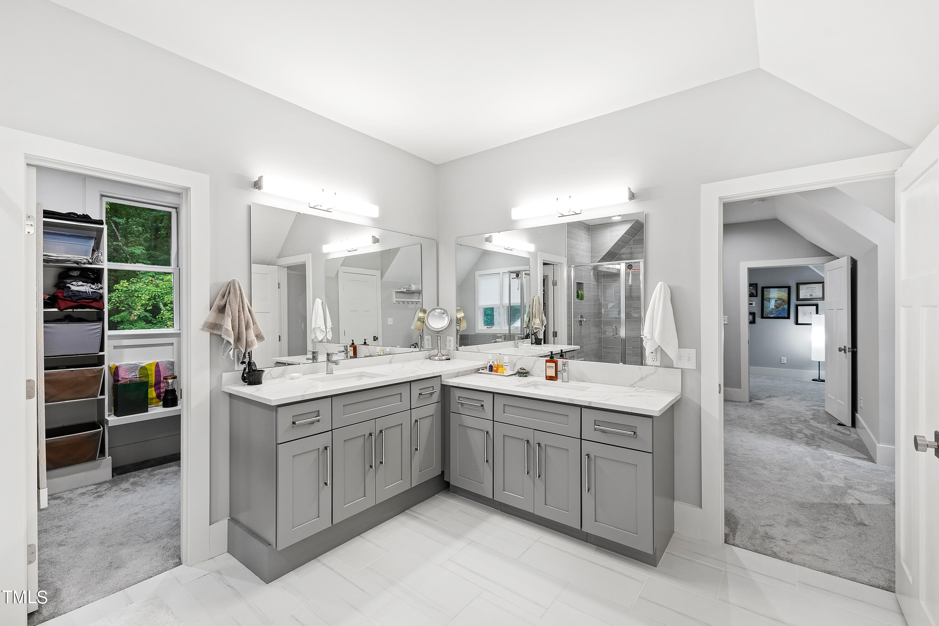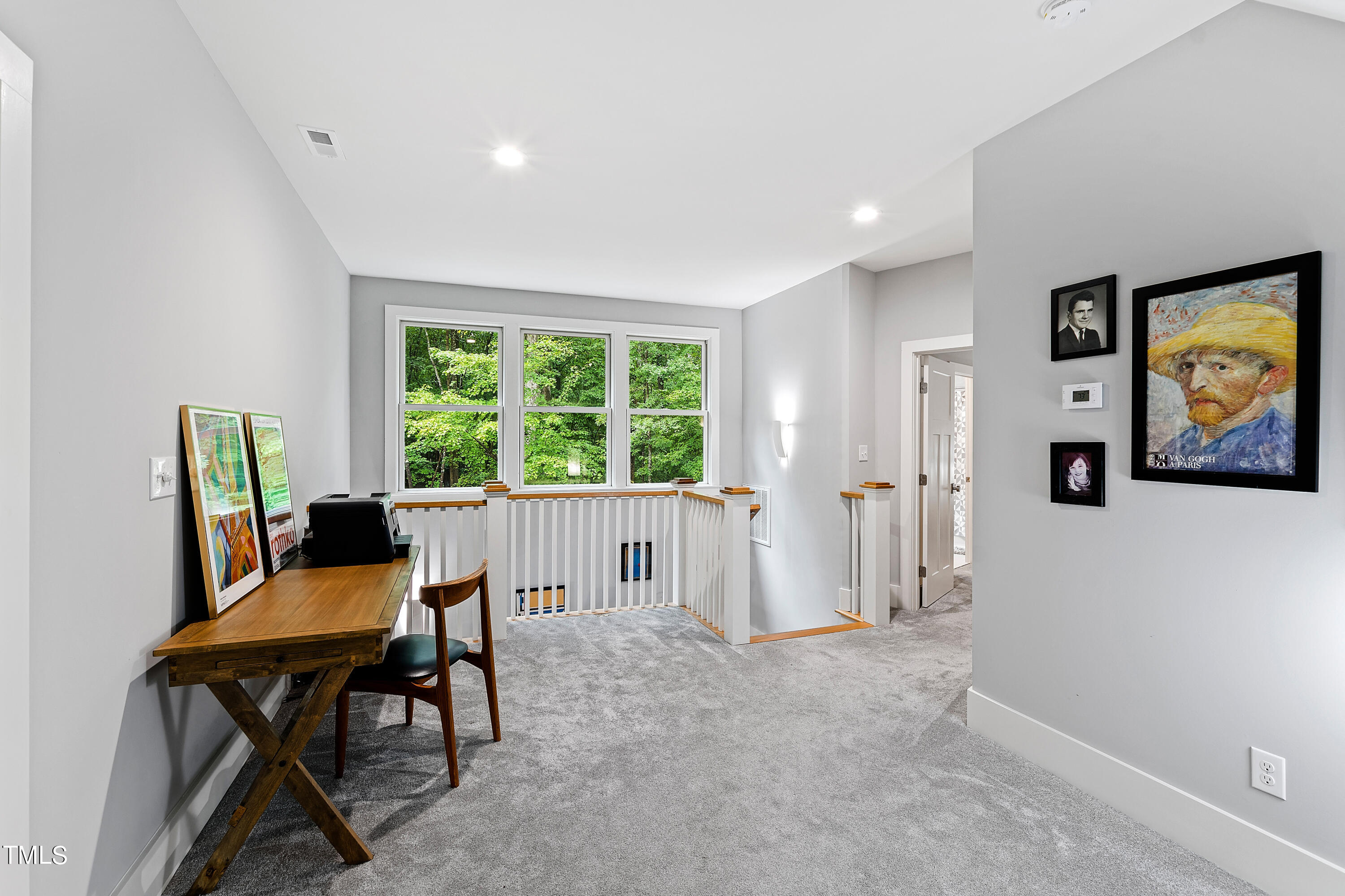 Discover your own secluded retreat in the heart of Chapel Hill. Nestled on a picturesque hillside, this charming home is surrounded by lush, towering trees that offer a serene mountain-like atmosphere right in your backyard. The views from the front porch feel like you're in your own private treehouse, overlooking the breathtaking landscape. This home was carefully constructed to flow effortlessly and ensure you have a view from each angle. The heart of the home is grand and sleek. The first-floor guest suite is ideal for guests or for a home office! Upstairs features a spacious loft, another guest suite, and your primary. The primary is charming as to be expected with views of the lush green backdrop. The primary suite is lovely with tiered countertops, a soaking garden tub, and a walk-in tiled shower. Step out to your stone-back patio and take in the private views while enjoying the sounds of the waterfall. The unfinished storage above the garage is great for storage or easily finished to use as a bonus space! This is the perfect sanctuary for those seeking tranquility and a connection to nature, while still being just minutes away from all the amenities Chapel Hill has to offer. Welcome to your mountain oasis in the heart of Chapel Hill. WHOLE HOME WATER FILTRATION SYSTEM AND WHOLE HOME GENERATOR!
