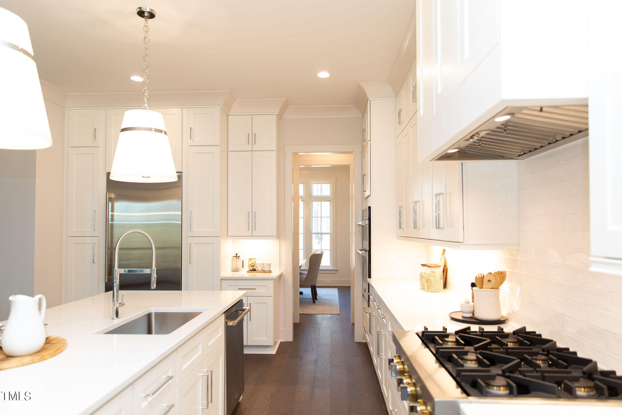 Award Winning Finished Home by Raleigh Custom Homes! Main Level Guest Suite! Hardwoods Throughout Main Floor! Kit: Cstm White Shaker Cbnts to Ceiling w/Soft Close, Large Quartz Island w/Pendant Lights, Recessed Lighting, SS Appls Incl Commerical Style Cooktop, Wall Oven & Sep MW, Built in SS Fridge, Tile Backsplash & Under Cbnt Lighting! Open to Breakfast Room w/Trip Window & Access to Rear Screened Porch! Primary Suite: w/HWDs, Chandelier & Recessed Lights! Primary Bath: Dual Vanity w/Quartz, Tile Srrnd Shower, Freestanding Tub & WIC w/Built ins, Dressing Mirror & Laundry Room Access! Fam Rm: Cstm Srrnd Gas Log Fireplace w/Built ins & Floating Shelves & Large Sliders to Tiled Screened Porch! 3rd Floor Walk up Attic!